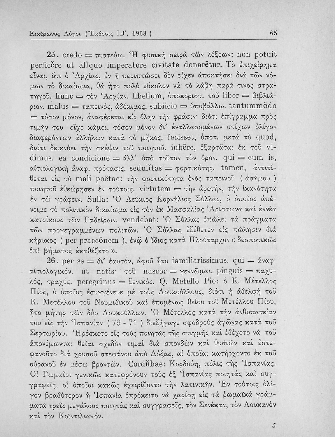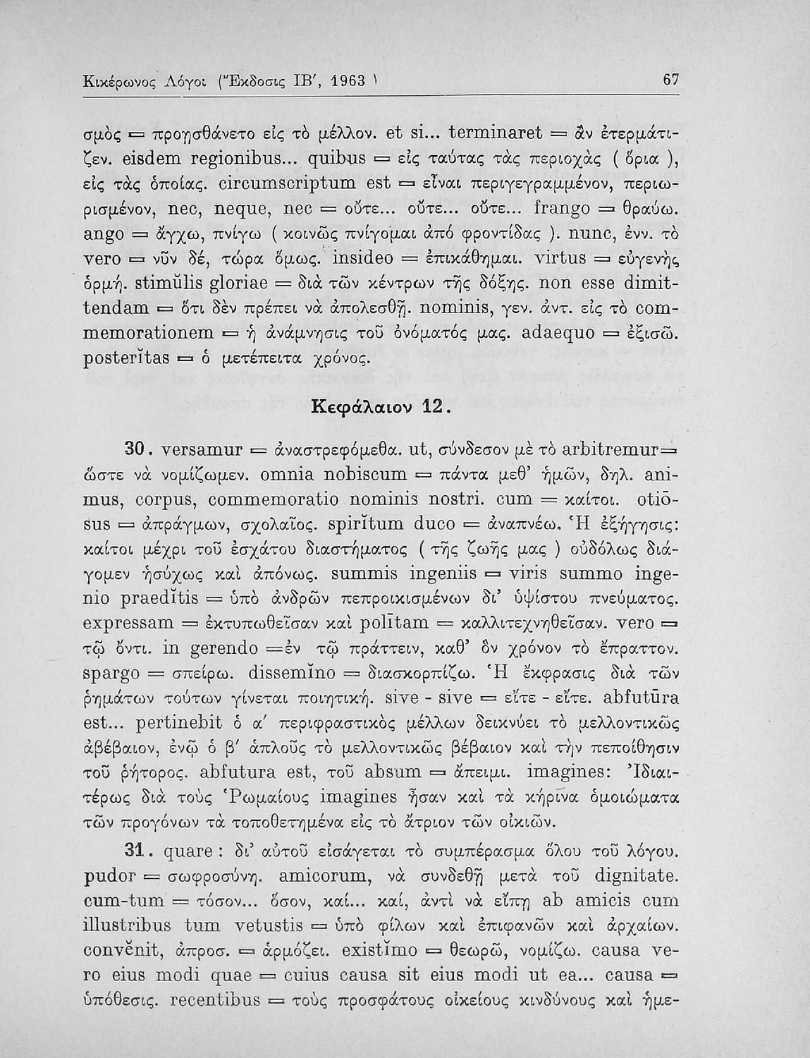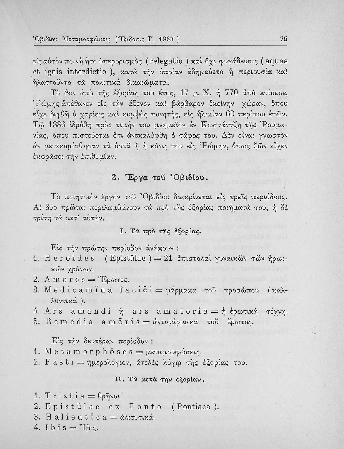 Σχολικό εγχειρίδιο Λατινικών για την Ε΄ Γυμνασίου παλαιού τύπου και την ΣΤ΄ Γυμνασίου νέου τύπου ου περιέχει βιογραφικό σημείωμα των Κικέρωνα και Οβίδιου, εισαγωγικά σχόλια, κείμενο και ερμηνευτικές σημειώσεις.