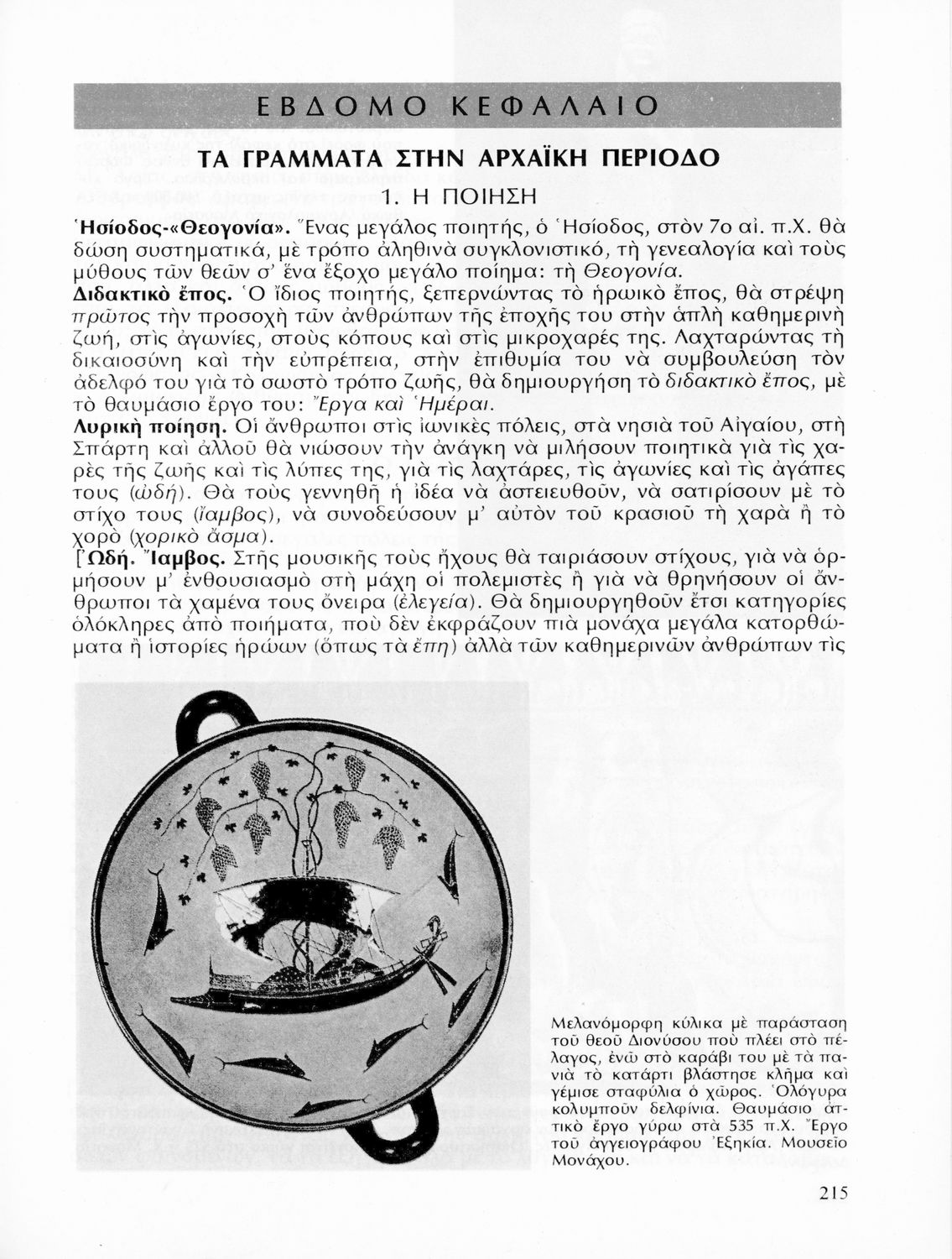 Βαθμίδα εκπαίδευσης: Δευτεροβάθμια Τάξη: Α' Γυμνασίου / Δ' Γυμνασίου Μάθημα: Ιστορία Γλώσσα: Δημοτική Παρουσίαση περιεχομένου: Σχολικό εγχειρίδιο Ιστορίας Α΄ και Δ΄ Γυμνασίου που καλύπτει την περίοδο από την περίοδο από την εμφάνιση των πρώτων πολιτισμών μέχρι τους Καρχηδονικούς Πολέμους. Περιλαμβάνει χρονολόγιο και γλωσσάριο με επεξήγηση ορισμών. |
