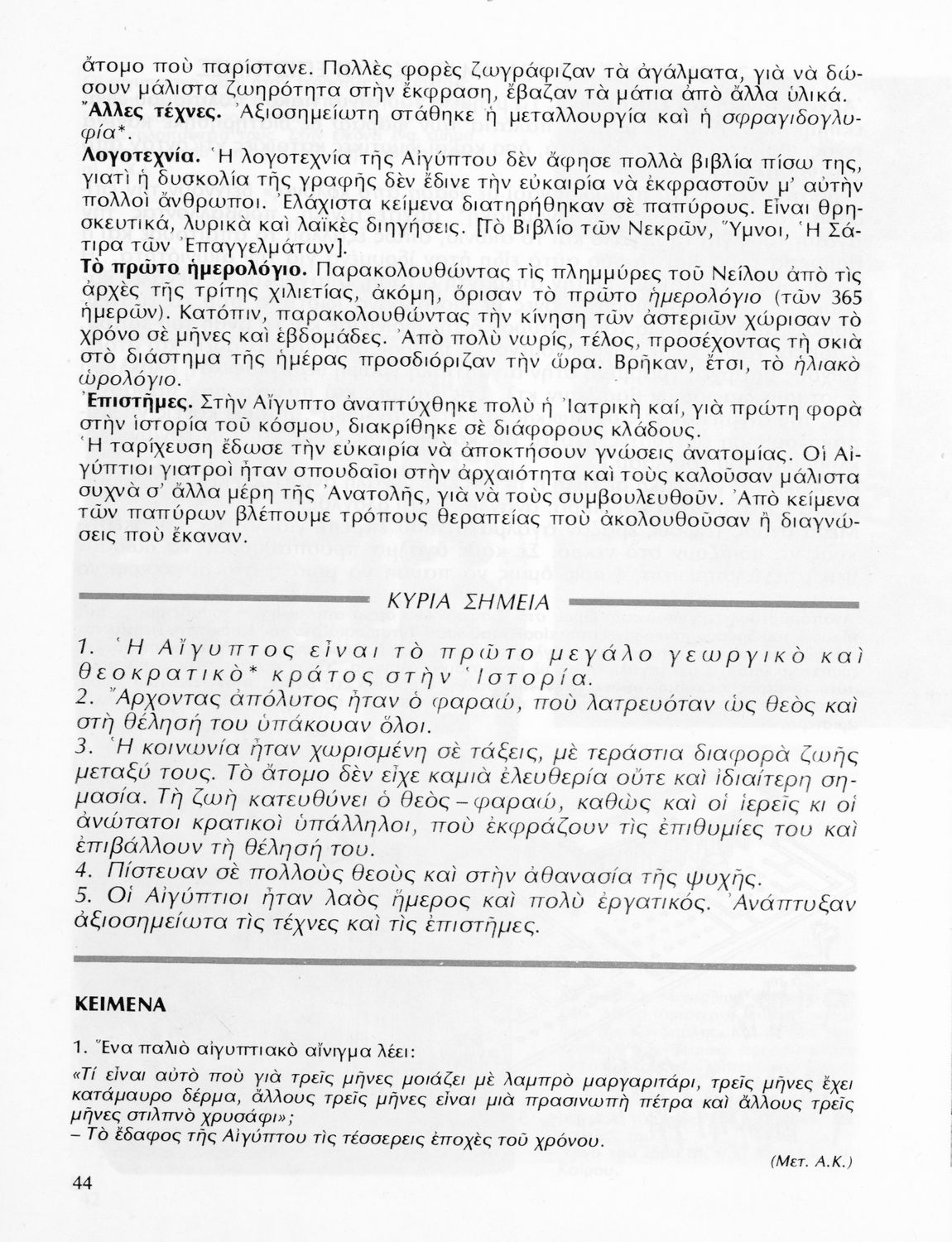 Βαθμίδα εκπαίδευσης: Δευτεροβάθμια Τάξη: Α' Γυμνασίου / Δ' Γυμνασίου Μάθημα: Ιστορία Γλώσσα: Δημοτική Παρουσίαση περιεχομένου: Σχολικό εγχειρίδιο Ιστορίας Α΄ και Δ΄ Γυμνασίου που καλύπτει την περίοδο από την περίοδο από την εμφάνιση των πρώτων πολιτισμών μέχρι τους Καρχηδονικούς Πολέμους. Περιλαμβάνει χρονολόγιο και γλωσσάριο με επεξήγηση ορισμών. |