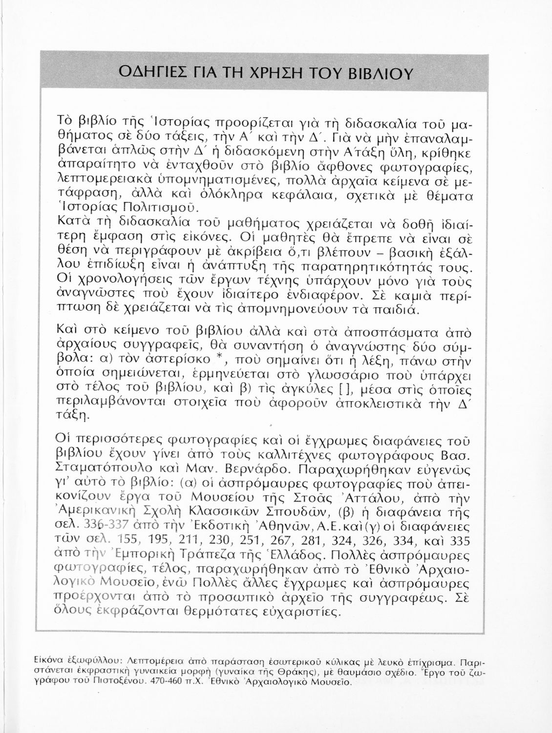 Μέγεθος και υπόστρωμα: Σχολικό εγχειρίδιο, μαλακό εξώφυλλο, 400 σελίδες. Σκίτσα, εικόνες και χάρτες (ασπρόμαυρα και έγχρωμα).
