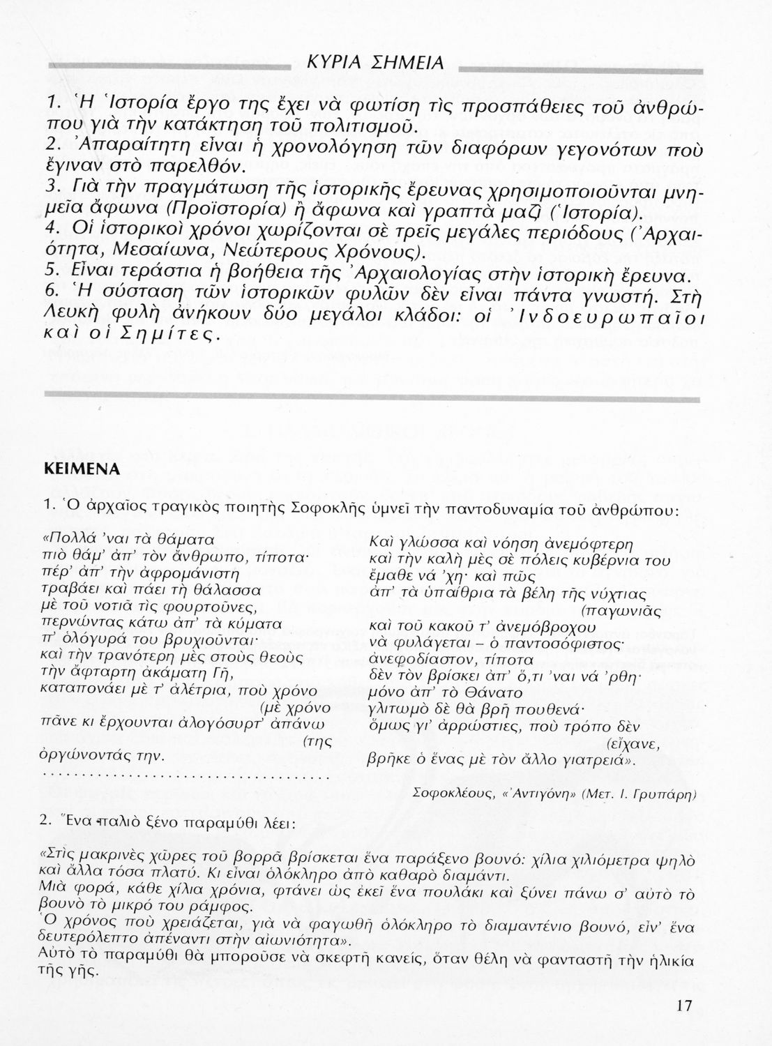 Σχολικό εγχειρίδιο Ιστορίας Α΄ και Δ΄ Γυμνασίου που καλύπτει την περίοδο από την περίοδο από την εμφάνιση των πρώτων πολιτισμών μέχρι τους Καρχηδονικούς Πολέμους. Περιλαμβάνει χρονολόγιο και γλωσσάριο με επεξήγηση ορισμών.