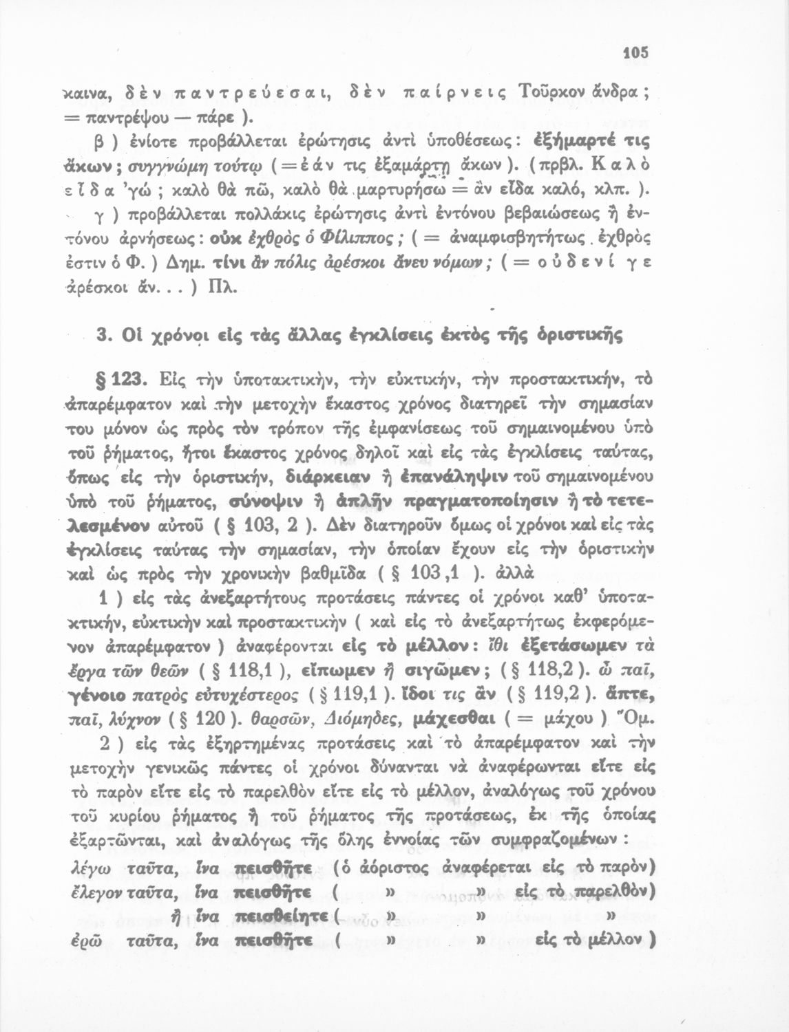 Βαθμίδα εκπαίδευσης: Δευτεροβάθμια Τάξη: Δ' Γυμνασίου / Ε' Γυμνασίου Μάθημα: Αρχαία Ελληνικά Γλώσσα: Καθαρεύουσα Παρουσίαση περιεχομένου: Σχολικό εγχειρίδιο Αρχαίων Ελληνικών Δ΄ και Ε΄ Γυμνασίου που εξετάζει τα μέρη του λόγου και την σύνταξή τους. |