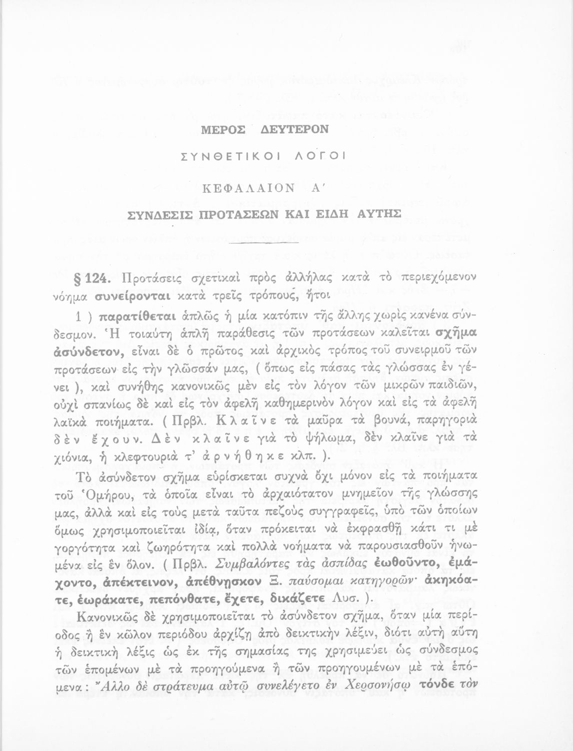 Σχολικό εγχειρίδιο Αρχαίων Ελληνικών Δ΄ και Ε΄ Γυμνασίου που εξετάζει τα μέρη του λόγου και την σύνταξή τους.