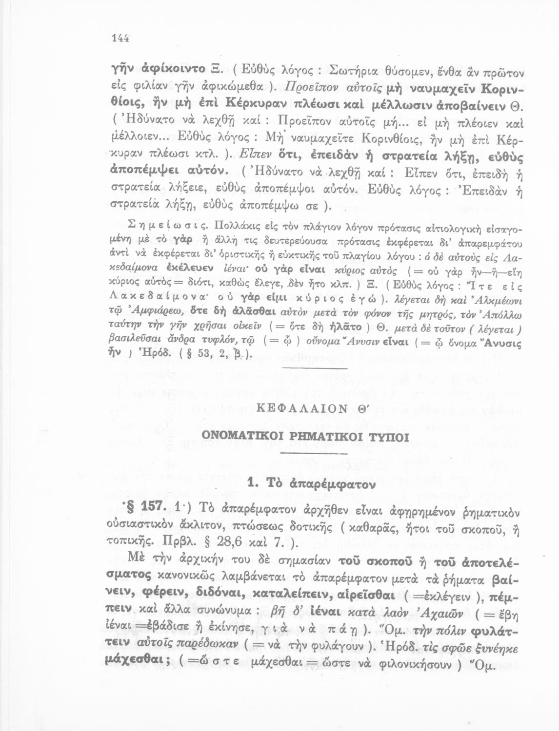 Σχολικό εγχειρίδιο Αρχαίων Ελληνικών Γυμνασίου που εξετάζει τα μέρη του λόγου και την σύνταξή τους.