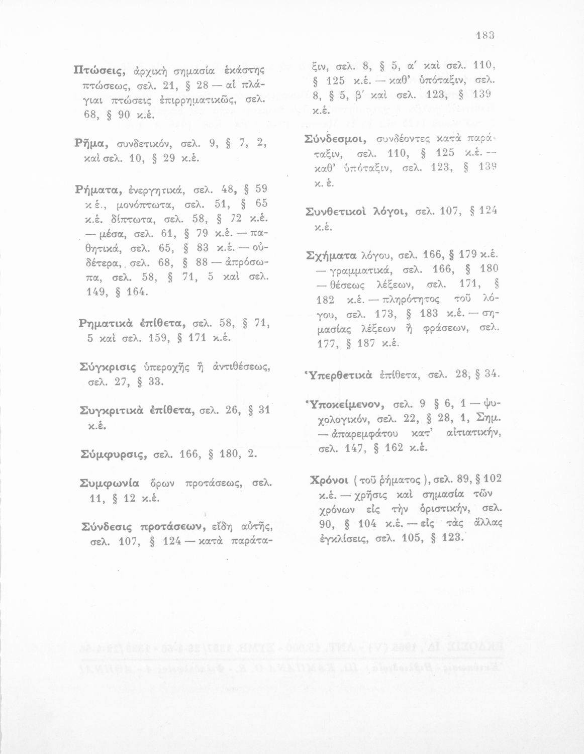 Κωδικός αναγνώρισης: 01-46069 Τίτλος: Συντακτικό της αρχαίας ελληνικής γλώσσης δια την τετάρτην και πέμπτην τάξιν των Γυμνασίων Συγγραφέας: Αχιλλέας Α. Τζάρτζανος Μέγεθος και υπόστρωμα: Σχολικό εγχειρίδιο, 20εκ., σκληρό εξώφυλλο, 184 σελίδες. |