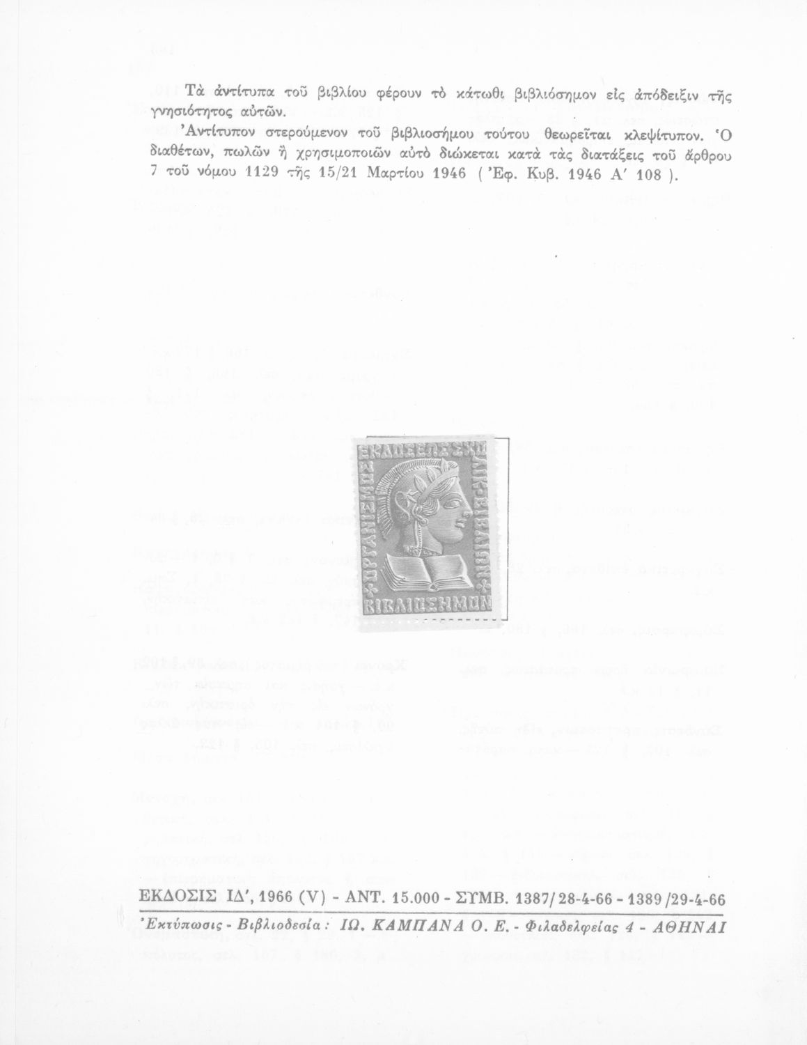 Εκδότης: Οργανισμός Εκδόσεως Διδακτικών Βιβλίων Έτος έκδοσης: 1966 Τόπος έκδοσης: Αθήνα Έκδοση: 14η Υπουργική απόφαση / Σύμβαση: 1387/ 28-4-1966, 1389/ 29-4-1966 Έτος έγκρισης: 1966 |