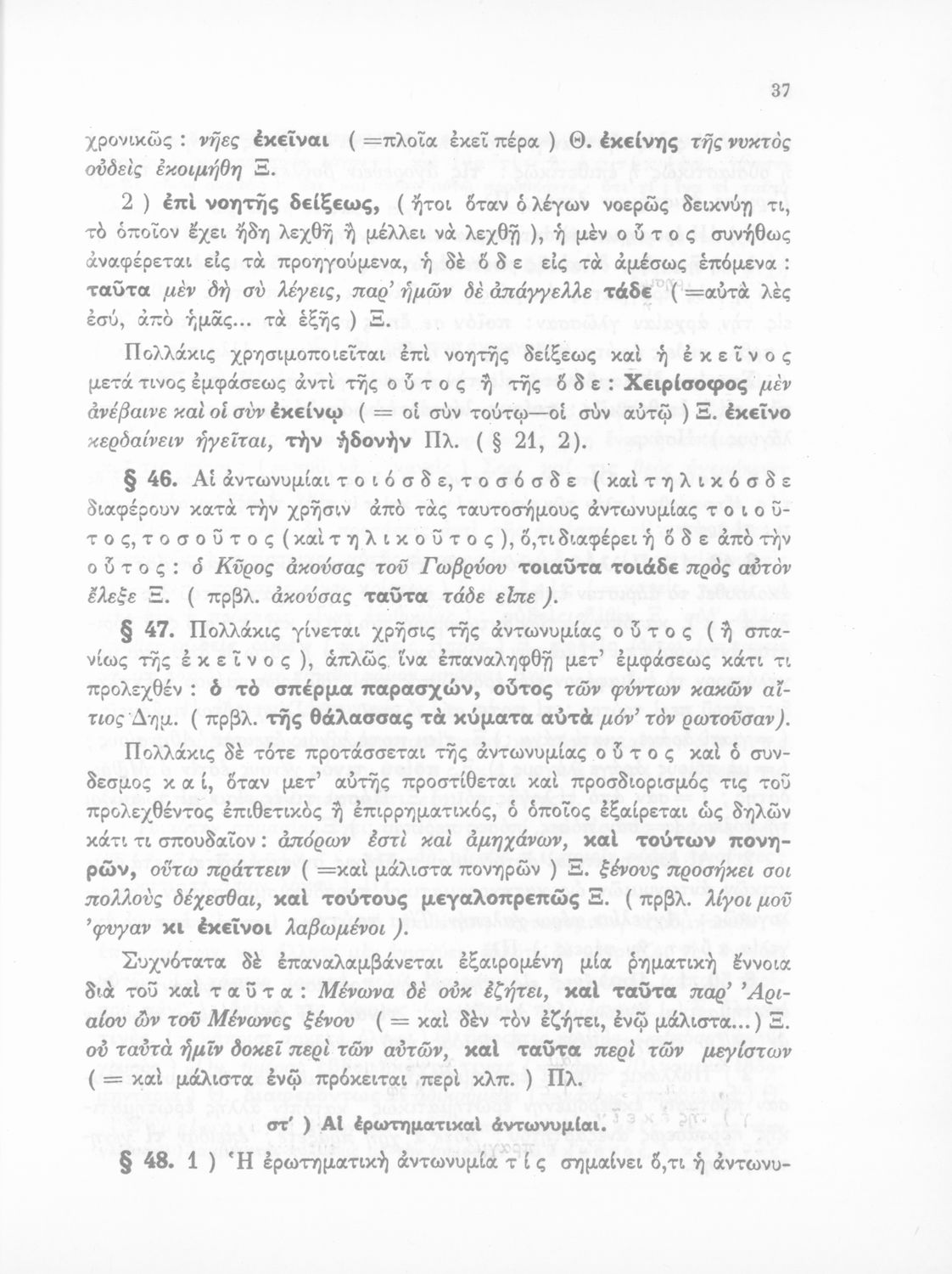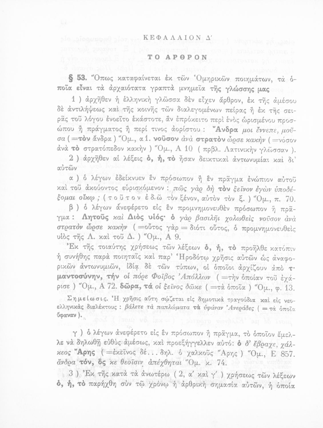 Σχολικό εγχειρίδιο Αρχαίων Ελληνικών Γυμνασίου που εξετάζει τα μέρη του λόγου και την σύνταξή τους.