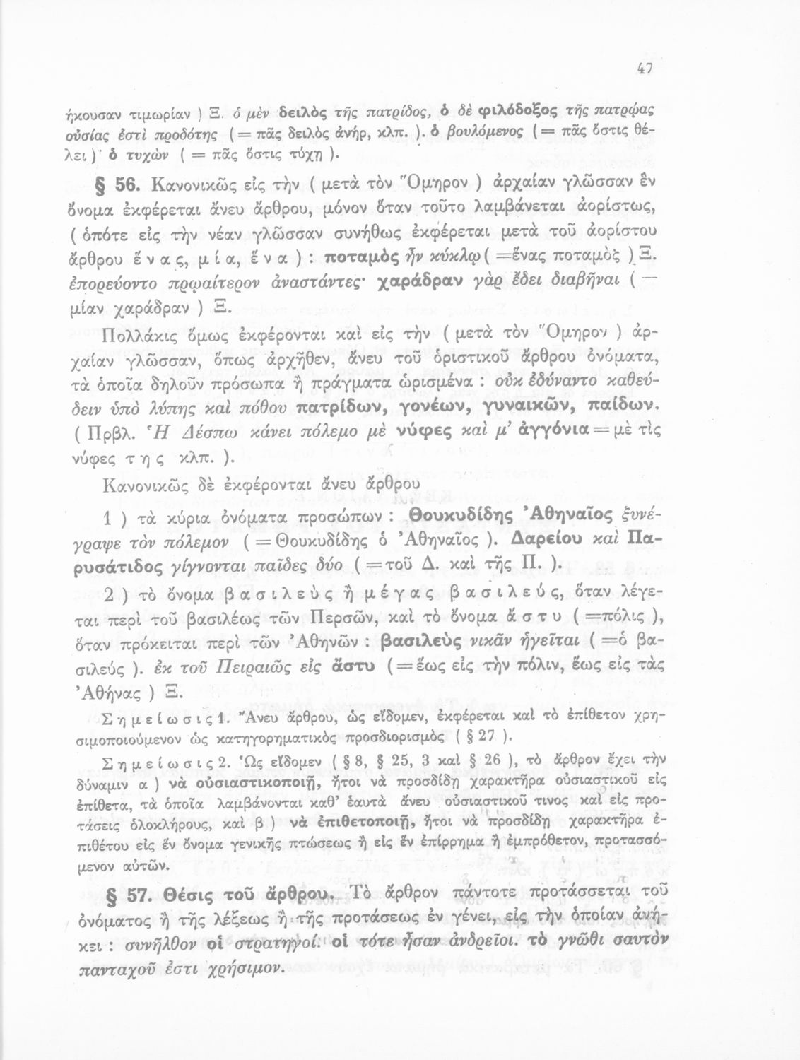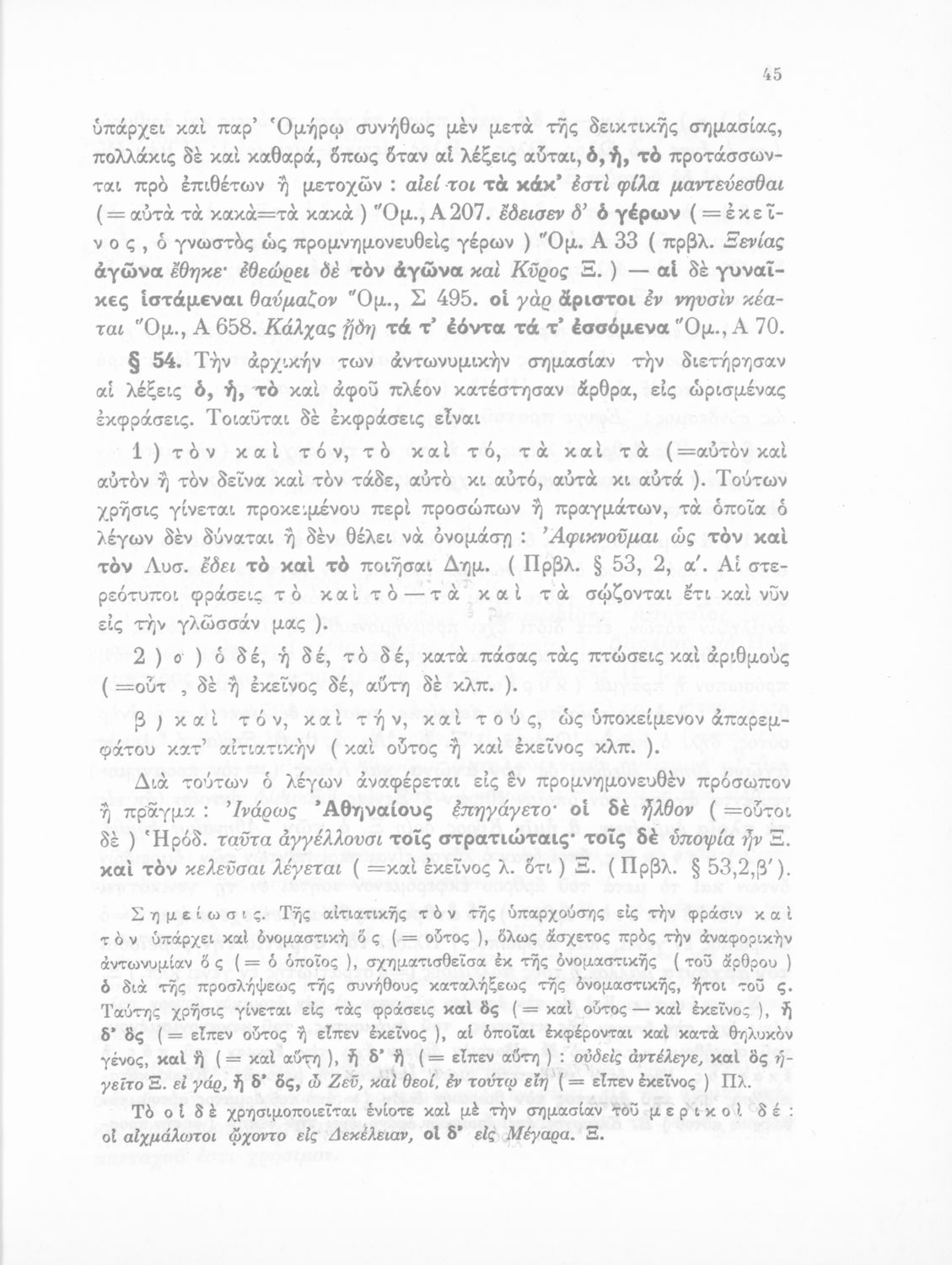 Σχολικό εγχειρίδιο Αρχαίων Ελληνικών Δ΄ και Ε΄ Γυμνασίου που εξετάζει τα μέρη του λόγου και την σύνταξή τους.