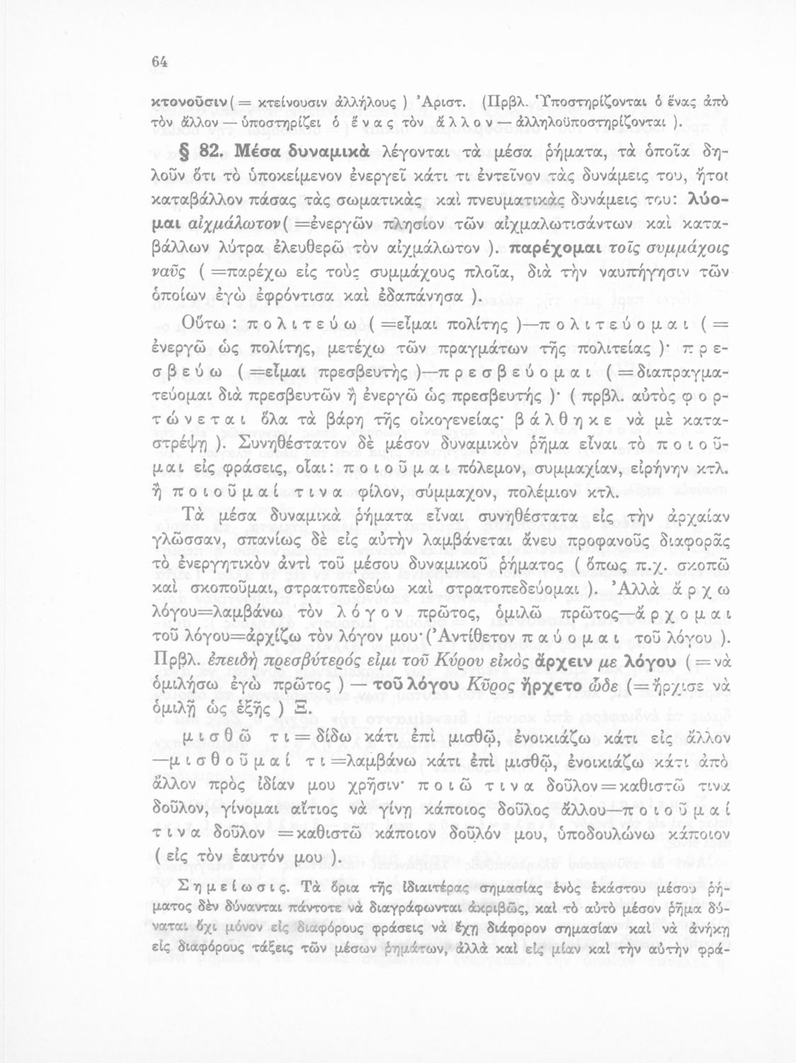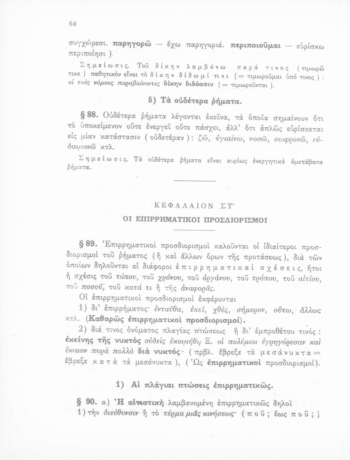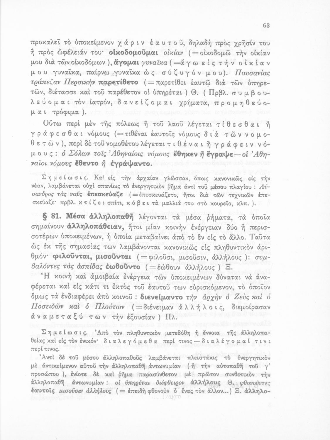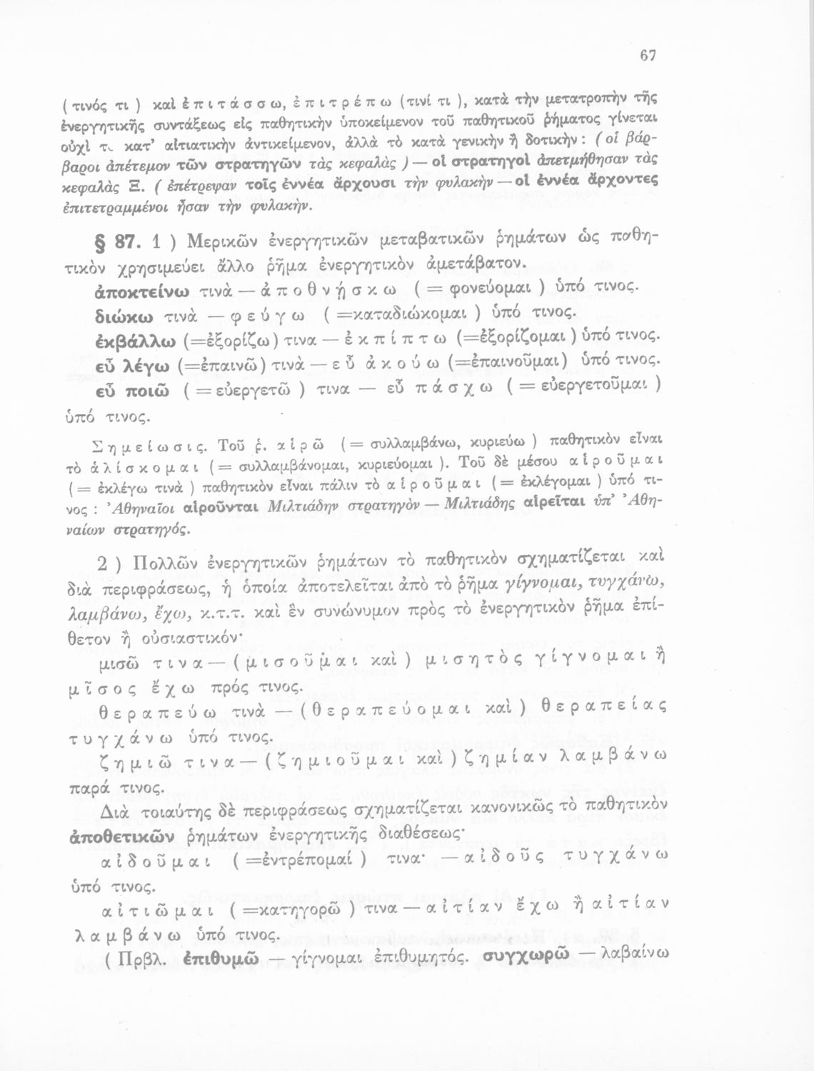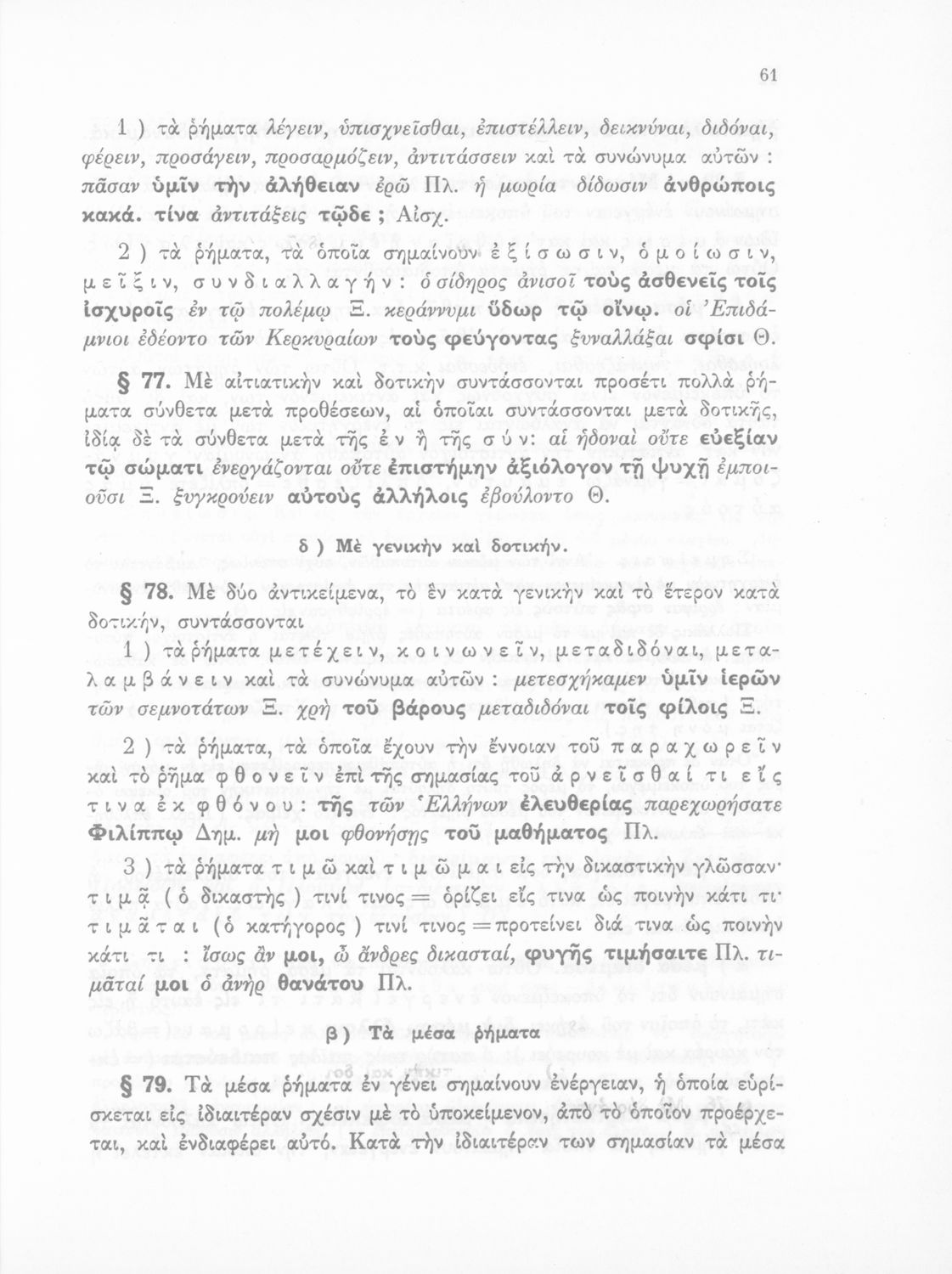 Σχολικό εγχειρίδιο Αρχαίων Ελληνικών Γυμνασίου που εξετάζει τα μέρη του λόγου και την σύνταξή τους.