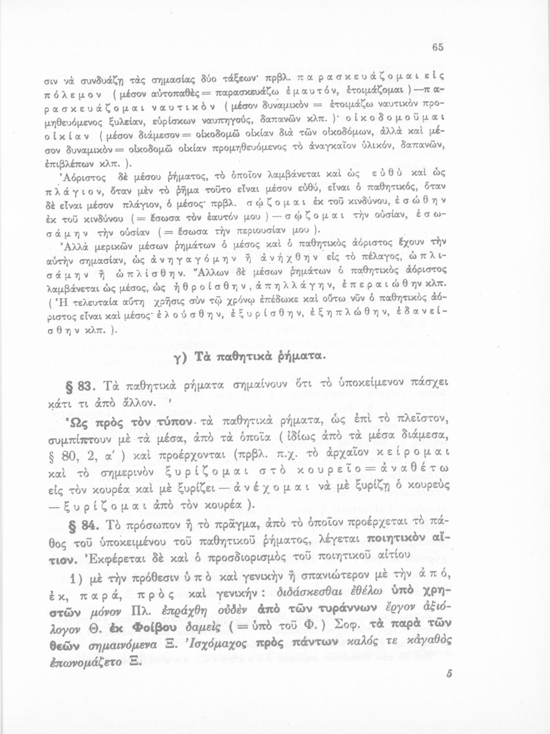 Σχολικό εγχειρίδιο Αρχαίων Ελληνικών Δ΄ και Ε΄΄ Γυμνασίου που εξετάζει τα μέρη του λόγου και την σύνταξή τους.