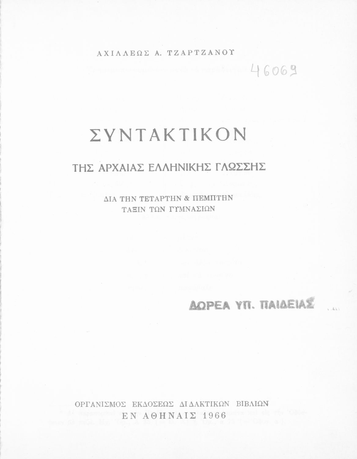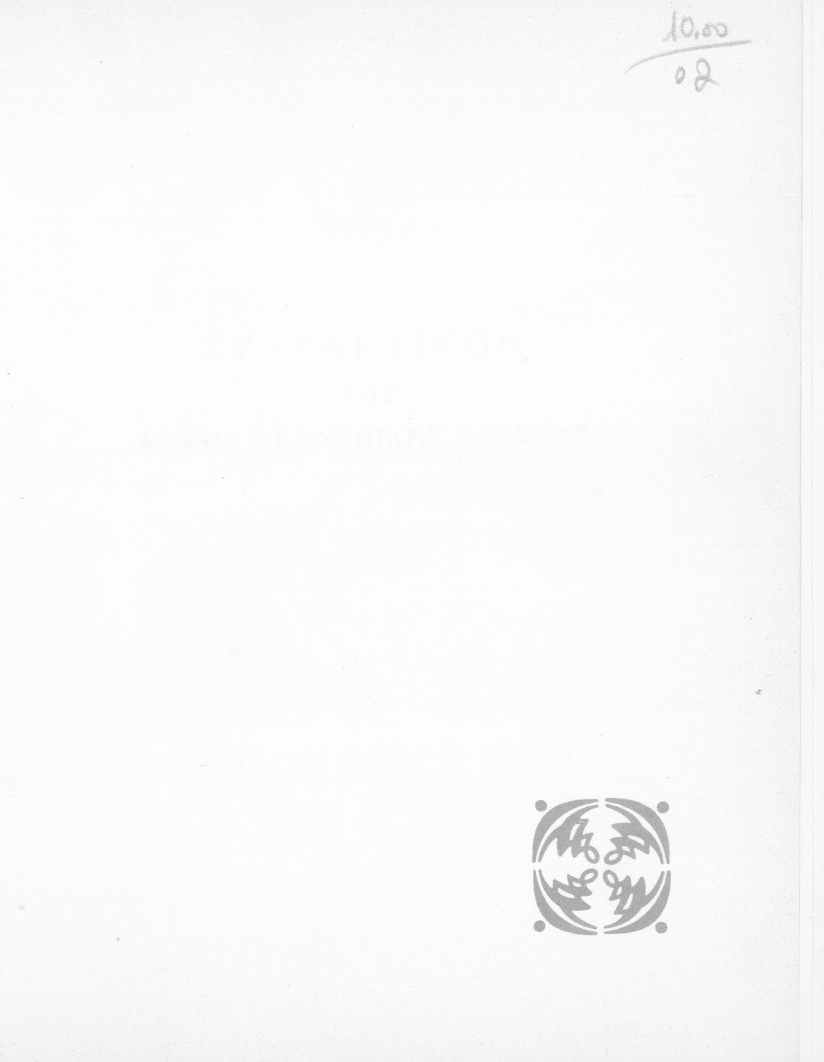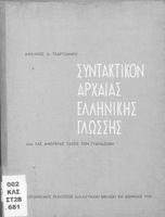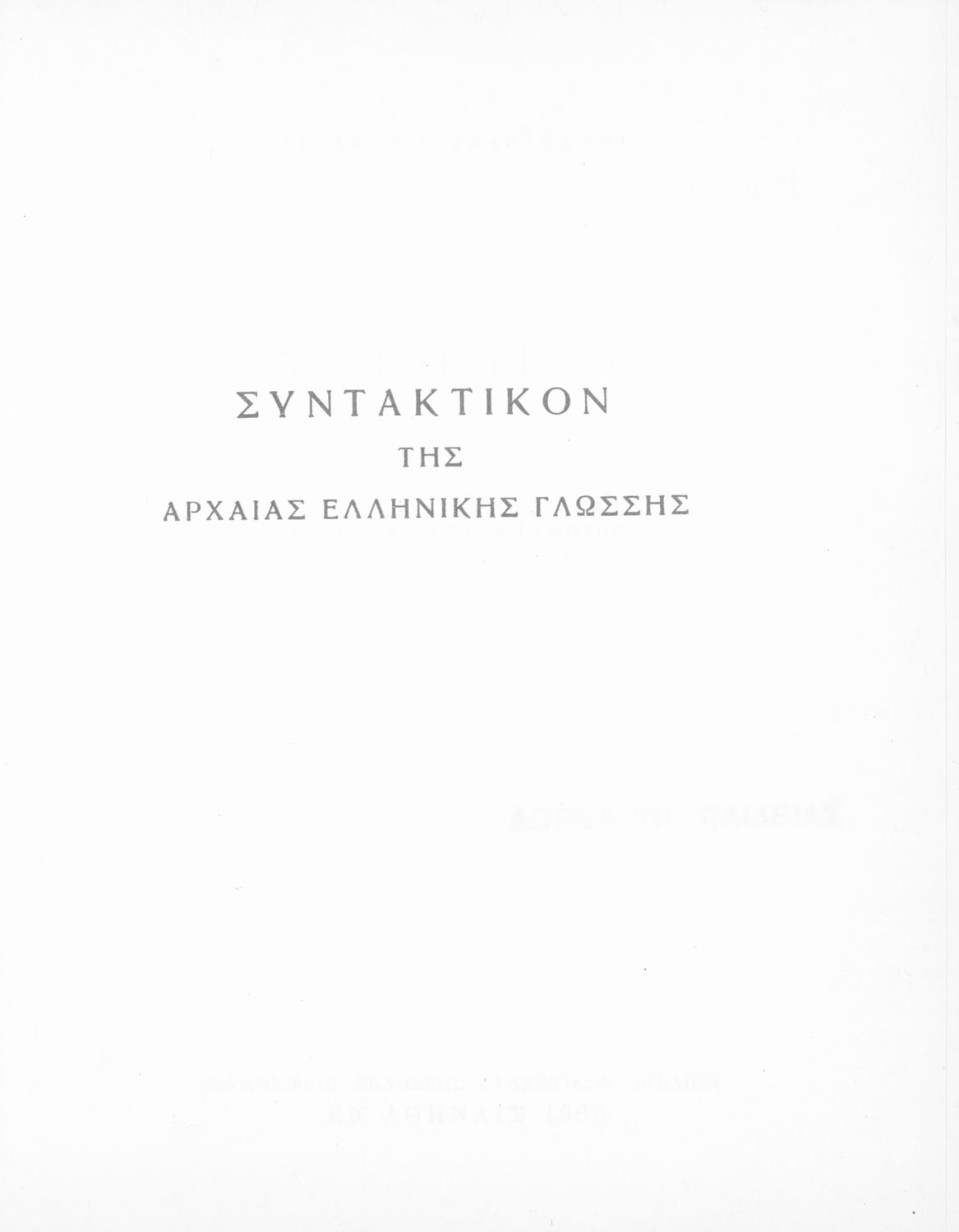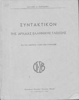Τίτλος: Συντακτικό της αρχαίας ελληνικής γλώσσης δια την τετάρτην και πέμπτην τάξιν των Γυμνασίων