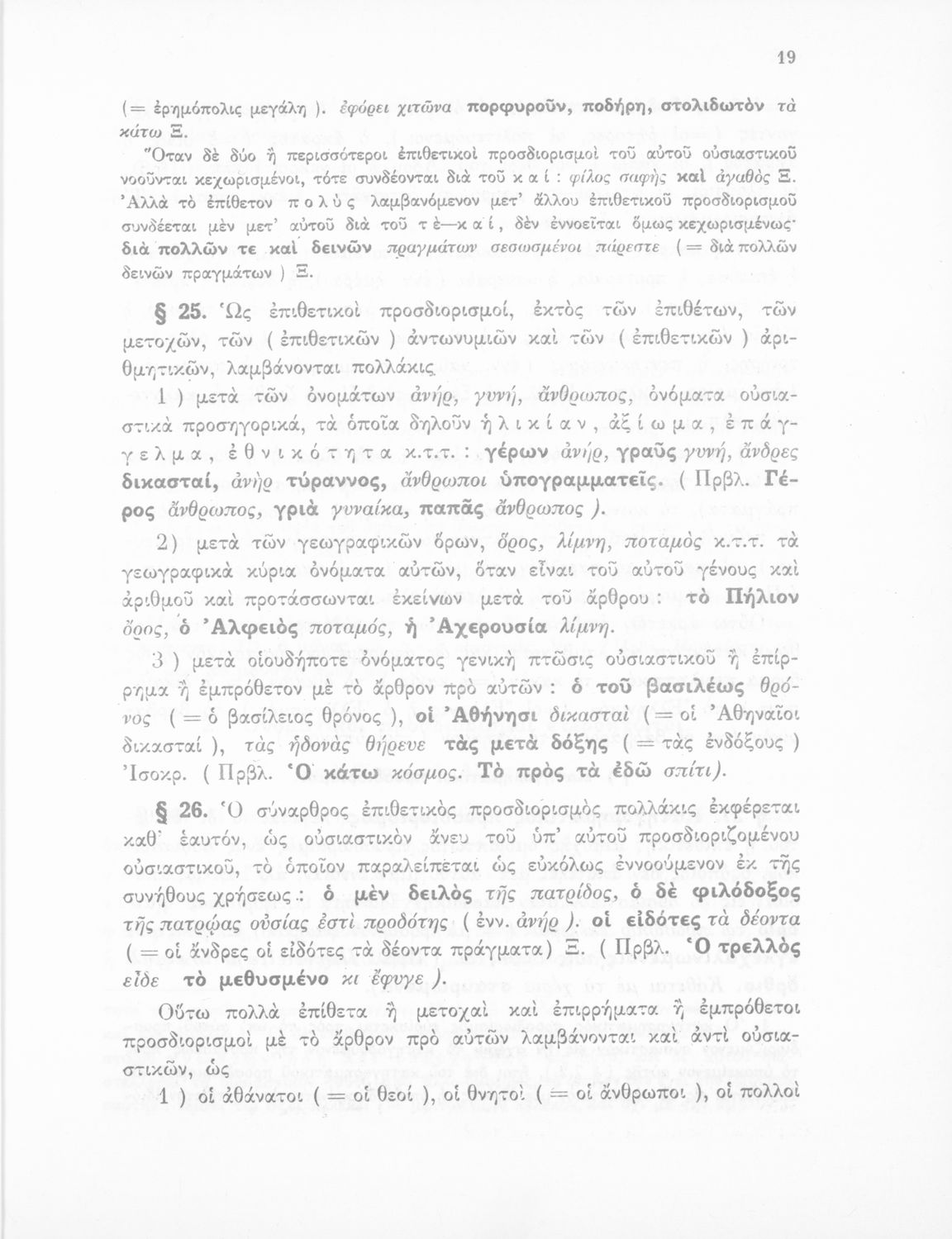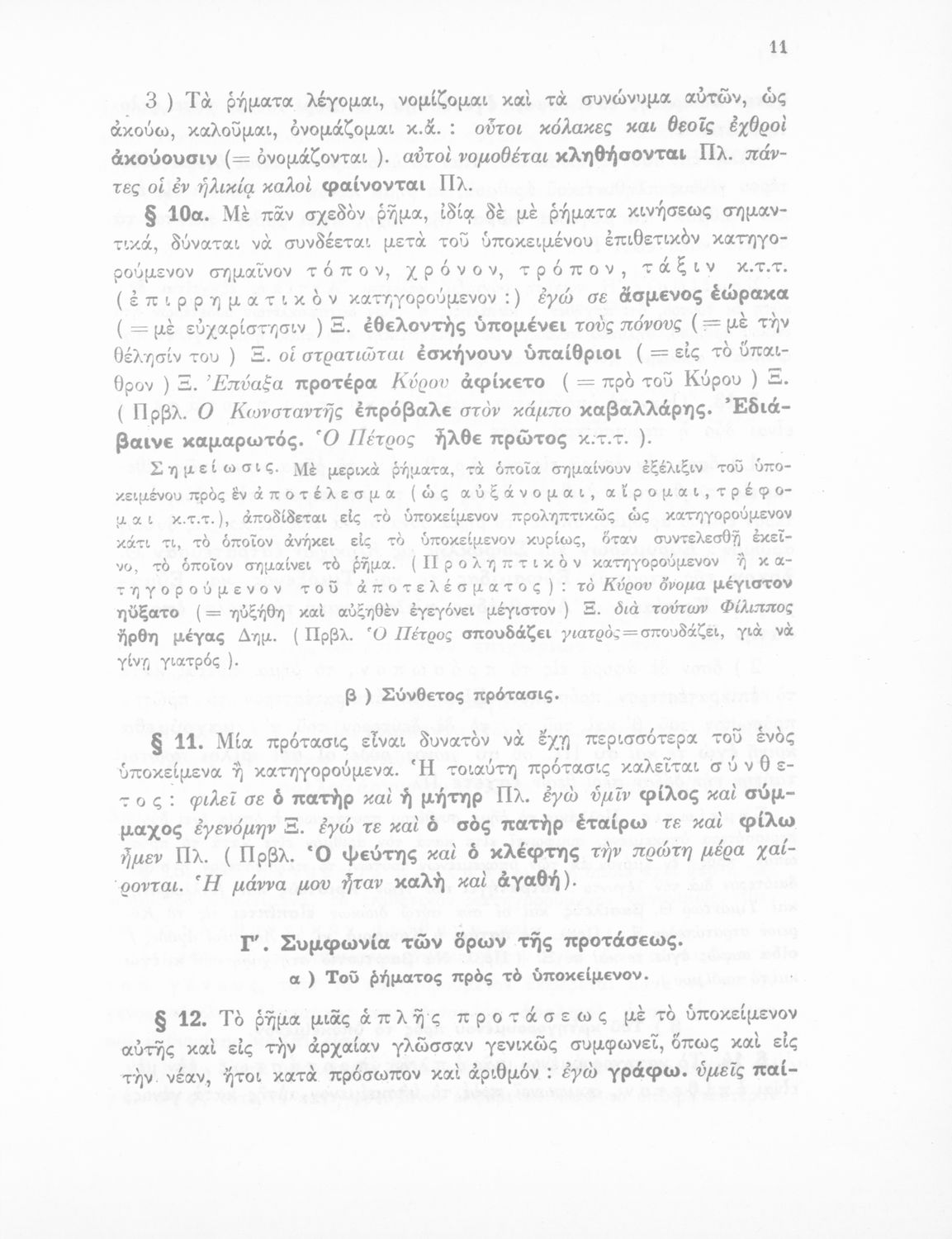 Σχολικό εγχειρίδιο Αρχαίων Ελληνικών Γυμνασίου που εξετάζει τα μέρη του λόγου και την σύνταξή τους.