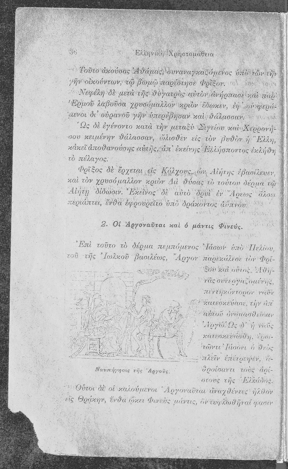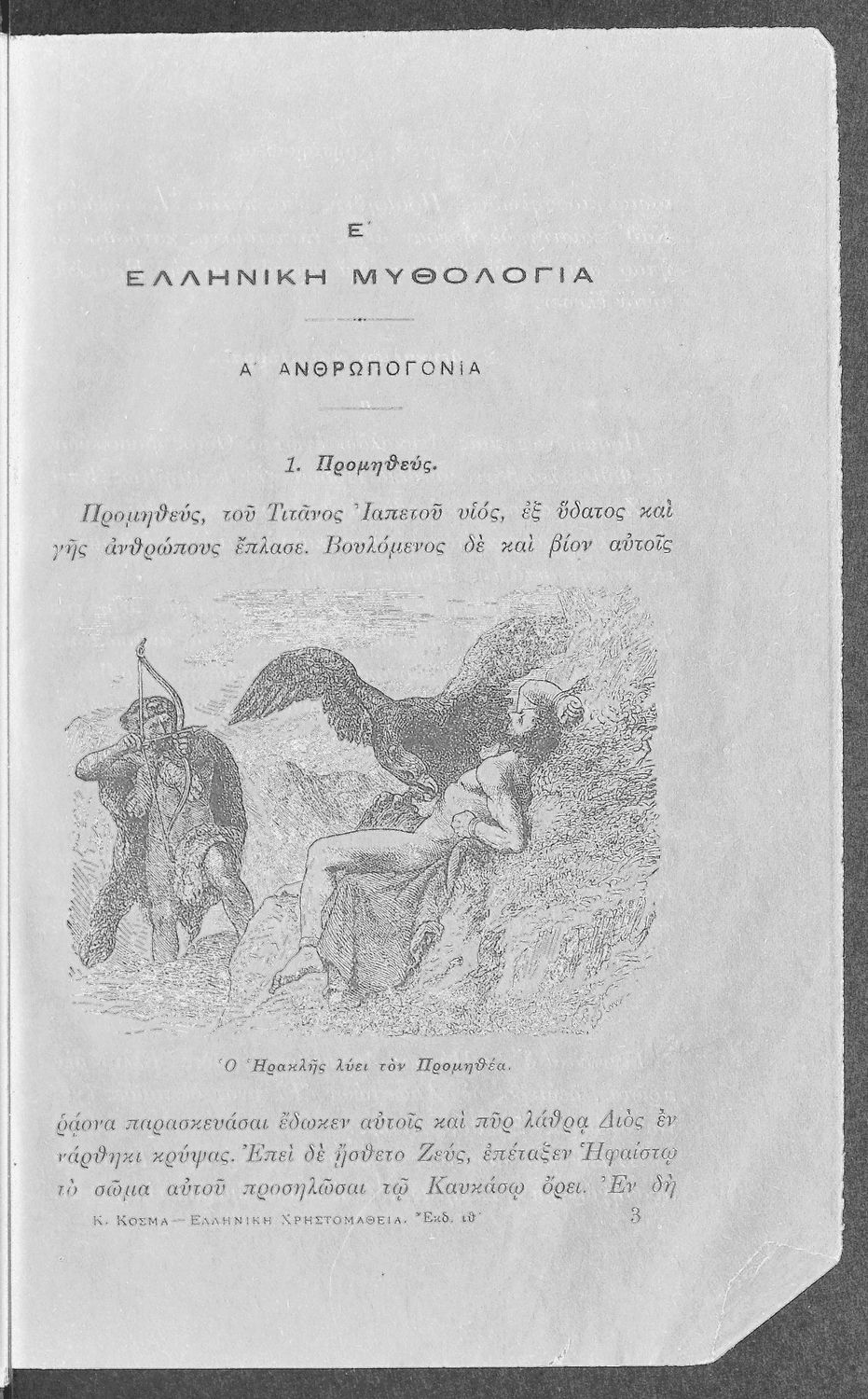 Σχολικό εγχειρίδιο Αρχαίων Ελληνικών για τις Α' Ελληνικού Σχολείου και Παρθεναγωγείου και την Ε΄ Δημοτικού που περιέχει κείμενα στην αρχαία ελληνική εμπνευσμένα από την ελληνική μυθολογία, και γραμματικές, ...