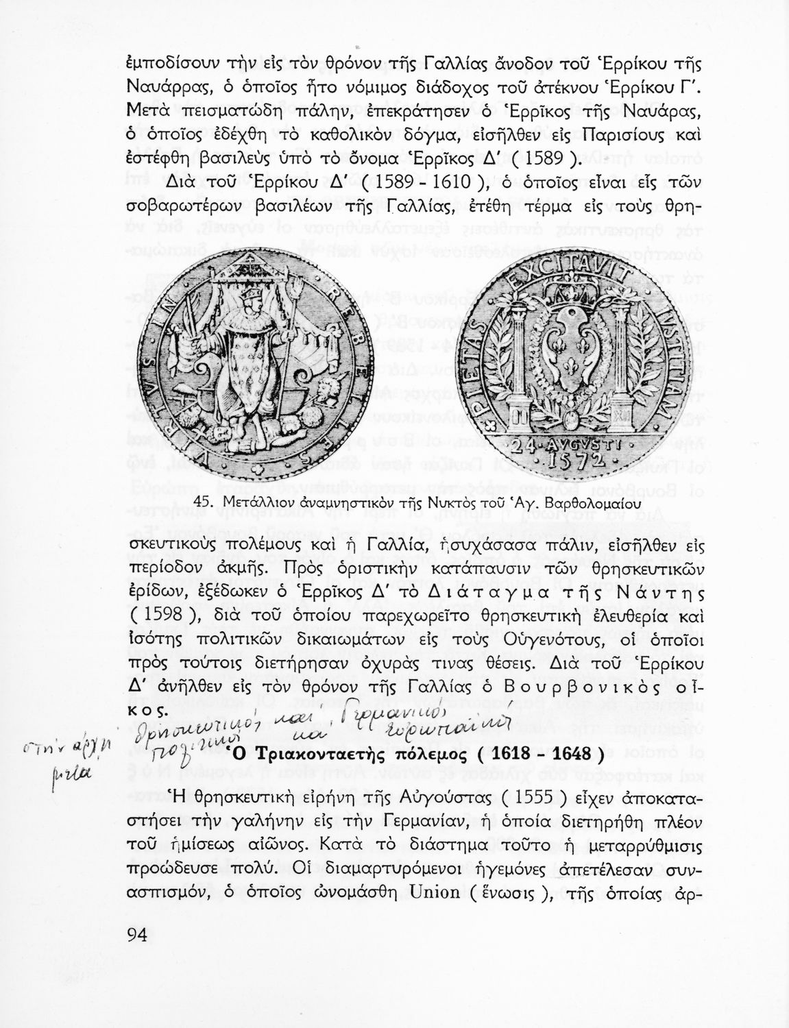 LDR 01420 2200229 4500 035 ## _a01-46075 040 ## _aΙνστιτούτο Εκπαιδευτικής Πολιτικής 041 ## _ael 100 ## _aΑ. Λαζάρου _aΑ. Διάφας 110 ## _a46075 245 0# _aΙστορία των Νέων Χρόνων από της ανακαλύψεως της Αμερικής μέχρι της Ελληνικής Επαναστάσεως Β΄ Λυκείου 250 ## _a8η Έκδοση 260 ## _aΑθήνα _bΟργανισμός Εκδόσεως Διδακτικών Βιβλίων _c1967 300 ## _a350 _bΣκίτσα, χάρτης, εικόνες (ασπρόμαυρα) 520 ## _aΣχολικό εγχειρίδιο Ιστορίας Β΄ Λυκείου που καλύπτει την περίοδο της Αναγέννησης και του Διαφωτισμού στην Ευρώπη και την προετοιμασία της Ελληνικής Επανάστασης. 521 ## _aΒ' Λυκείου 522 ## _aΕλλάδα 546 ## _aΑπλή καθαρεύουσα 563 ## _aΣκληρό Εξώφυλλο 583 ## _a1497/21-3-1967 _c1967 650 #4 _aΑνακαλύψεις _aΓαλλική Επανάσταση _aΕλληνική Επανάσταση _aΘρησκευτική μεταρρύθμιση _aΚατσώνης _aΝαπολέοντας 700 ## _aΦωφώ Ανδρέου