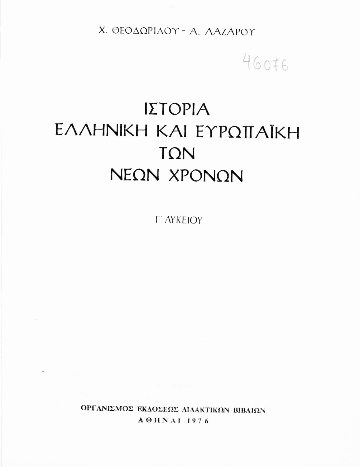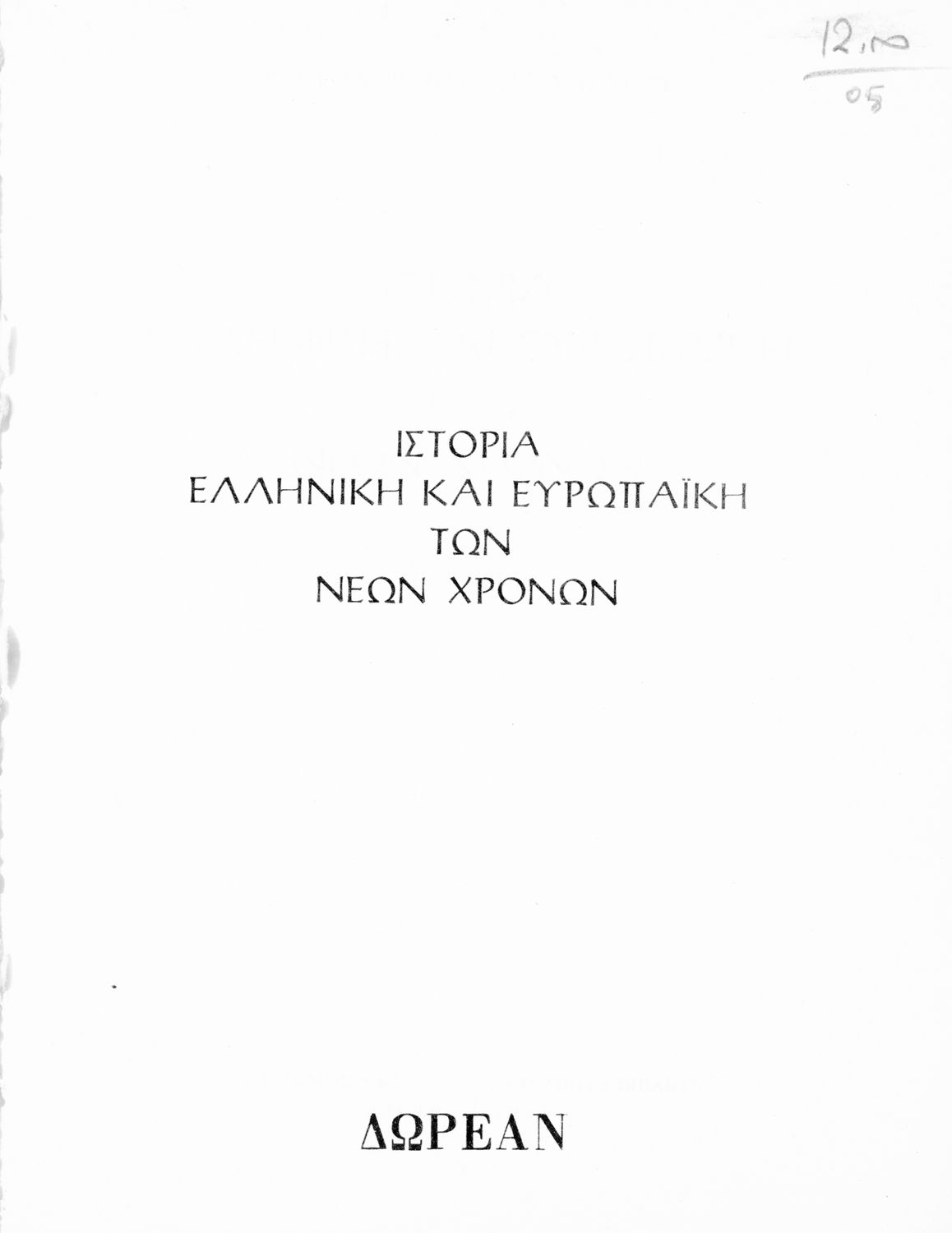 Τίτλος: Ιστορία Ελληνική και Ευρωπαϊκή των νεότερων χρόνων Γ΄ Λυκείου