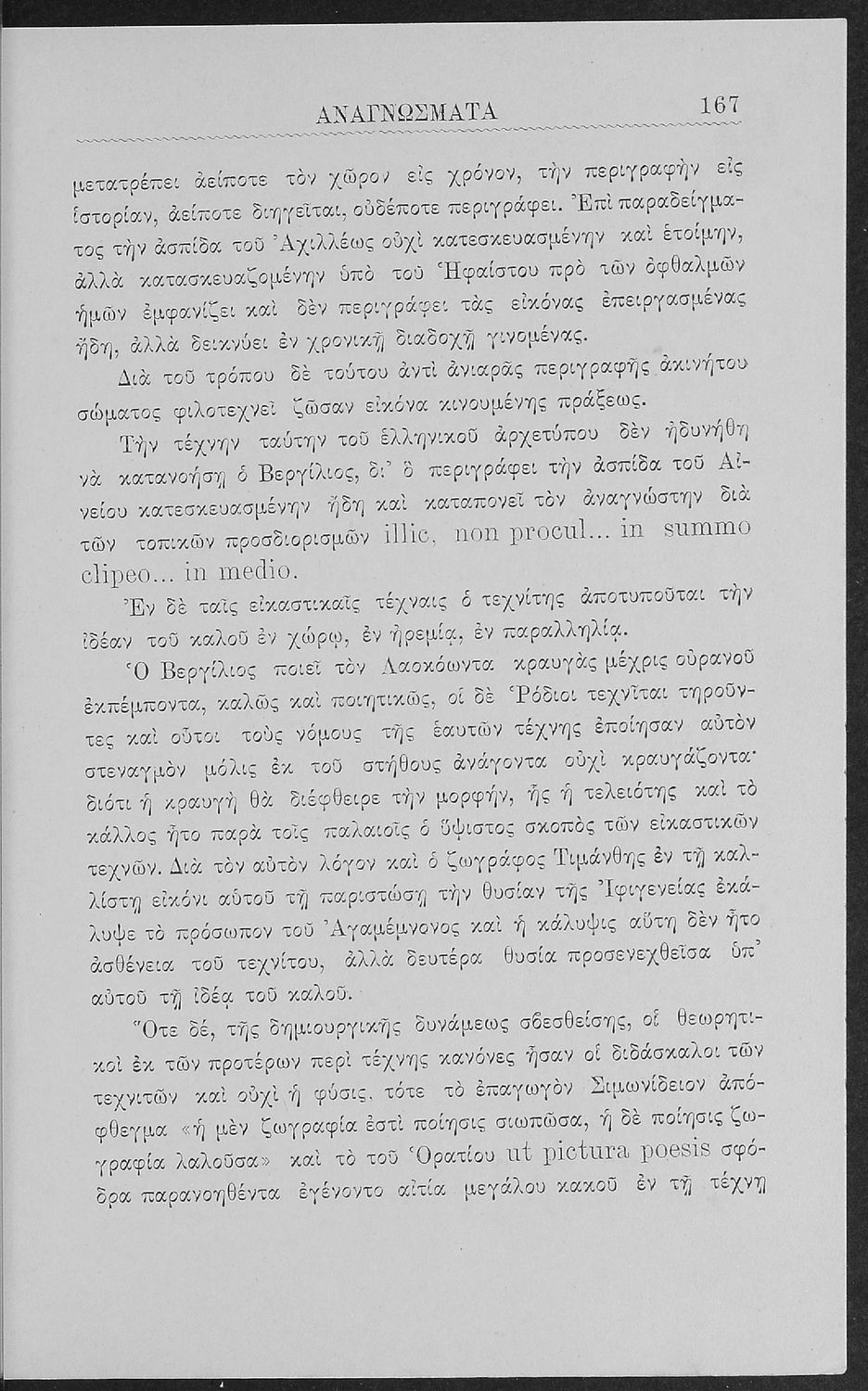 Παρουσίαση περιεχομένου: Σχολικό εγχειρίδιο Νέων Ελληνικών για όλες τις τάξεις του Γυμνασίου με πεζά και ποιήματα Ελλήνων λογοτεχνών και ποιητών. Η θεματολογία του από την αρχαιότητα και την ιστορική ζωή του τόπου. Το βιβλίο είχε εγκριθεί για μια τετραετία από το 1909-1913.