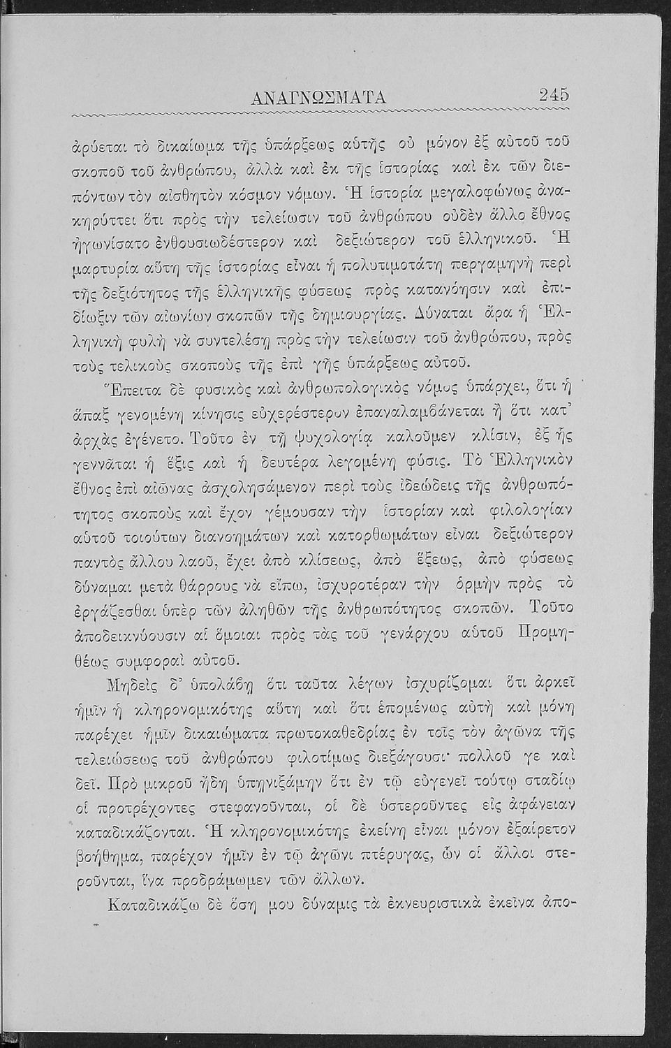 Παρουσίαση περιεχομένου: Σχολικό εγχειρίδιο Νέων Ελληνικών για όλες τις τάξεις του Γυμνασίου με πεζά και ποιήματα Ελλήνων λογοτεχνών και ποιητών. Η θεματολογία του από την αρχαιότητα και την ιστορική ζωή του τόπου. Το βιβλίο είχε εγκριθεί για μια τετραετία από το 1909-1913.