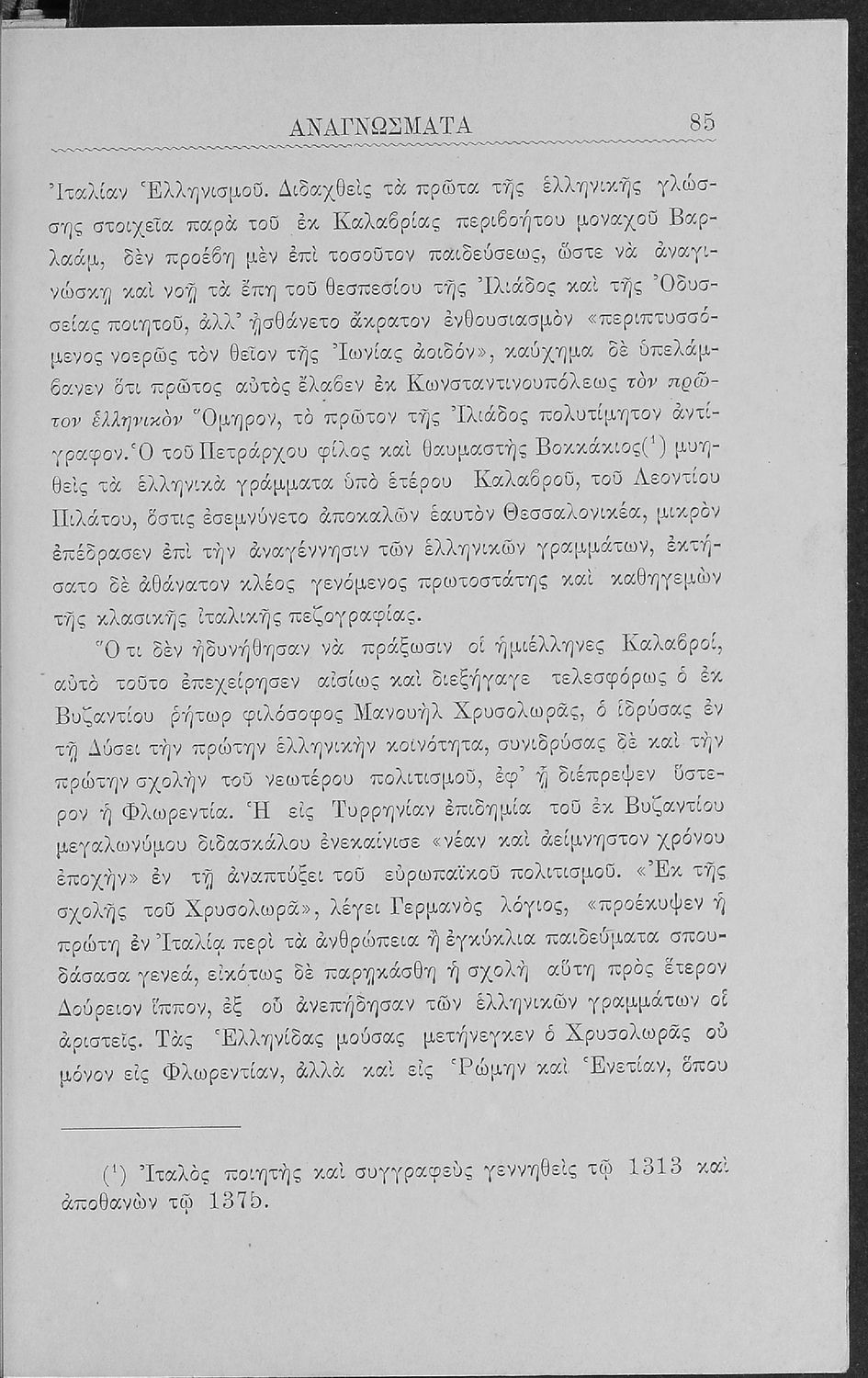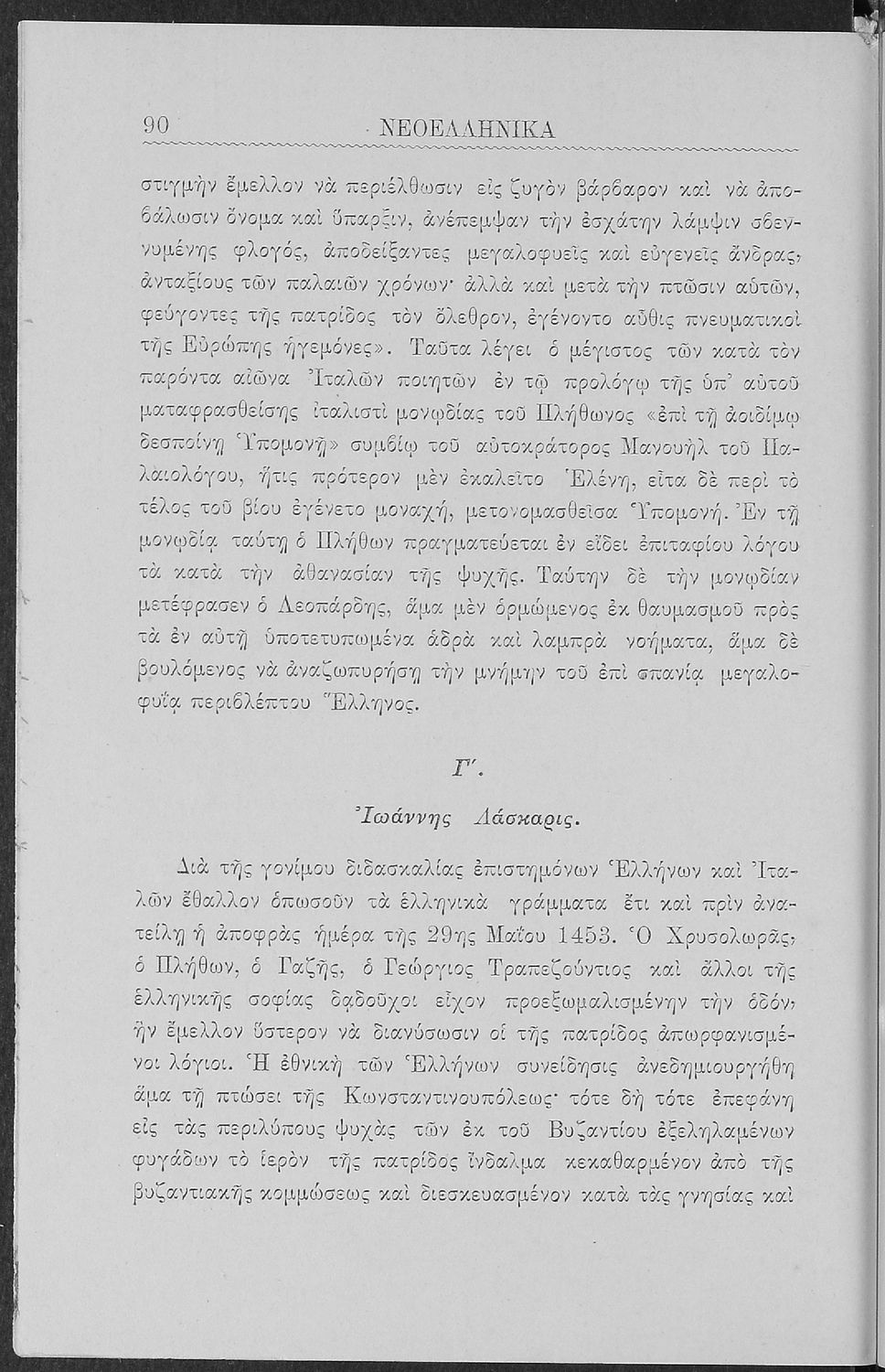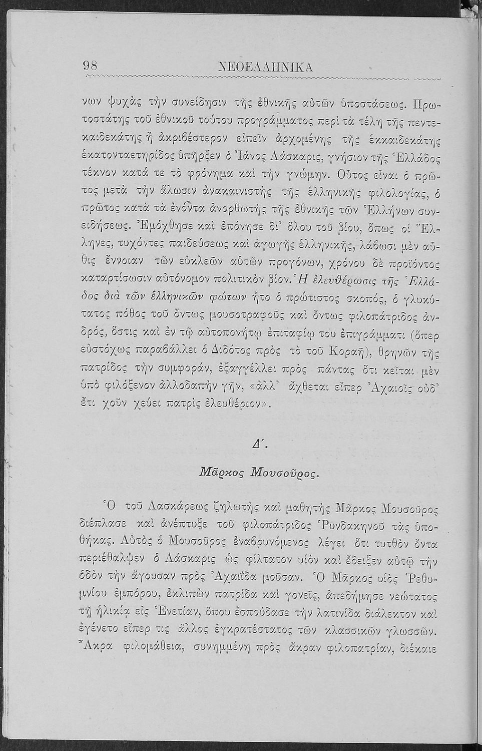 Σχολικό εγχειρίδιο Νέων Ελληνικών του 1889. Περιέχει πεζά και ποιήματα Ελλήνων λογοτεχνών εμπνευσμένα από την καθημερινή και ιστορική ζωή του τόπου. Έχει την έγκριση του Υπουργείου Δημόσιας Εκπαίδευσης.