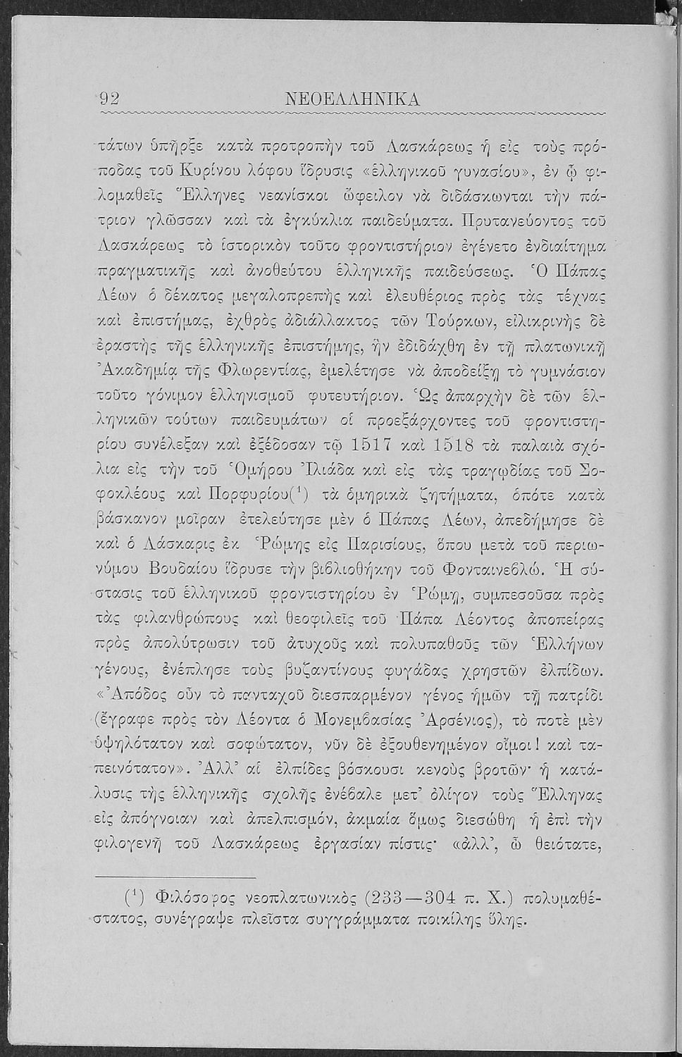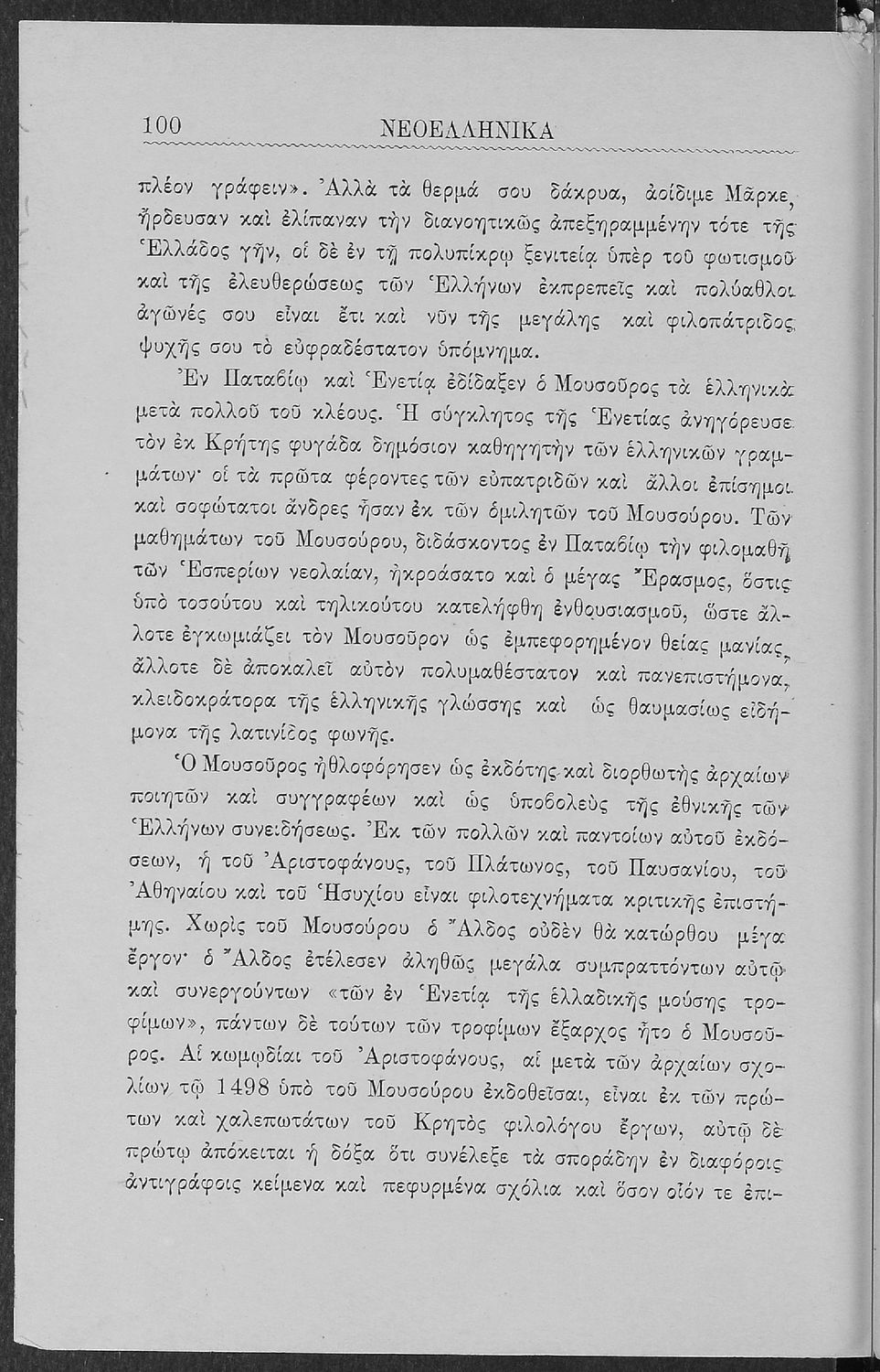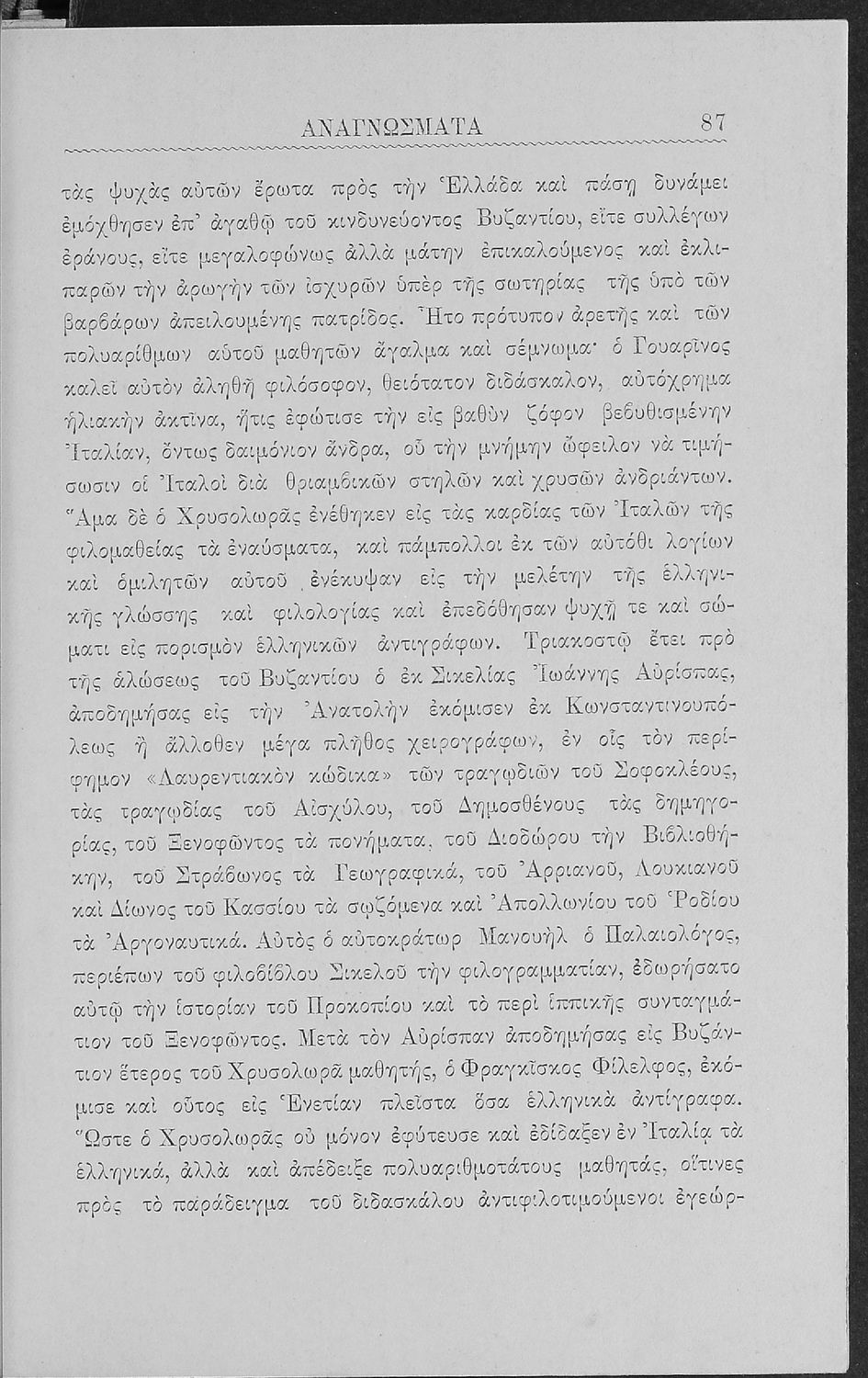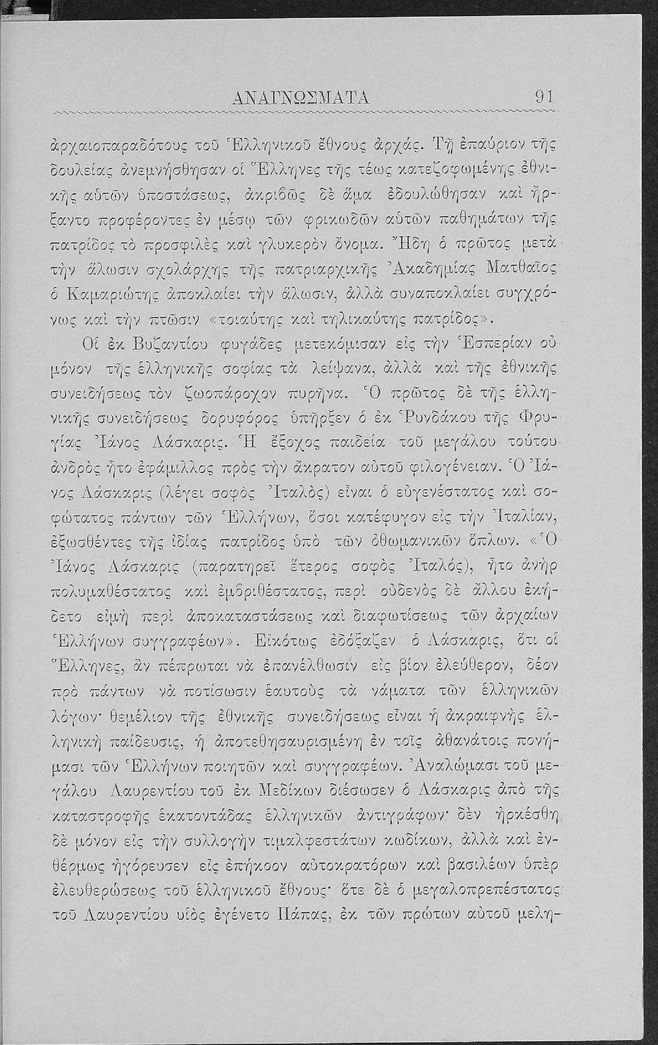 Παρουσίαση περιεχομένου: Σχολικό εγχειρίδιο Νέων Ελληνικών για όλες τις τάξεις του Γυμνασίου με πεζά και ποιήματα Ελλήνων λογοτεχνών και ποιητών. Η θεματολογία του από την αρχαιότητα και την ιστορική ζωή του τόπου. Το βιβλίο είχε εγκριθεί για μια τετραετία από το 1909-1913.
