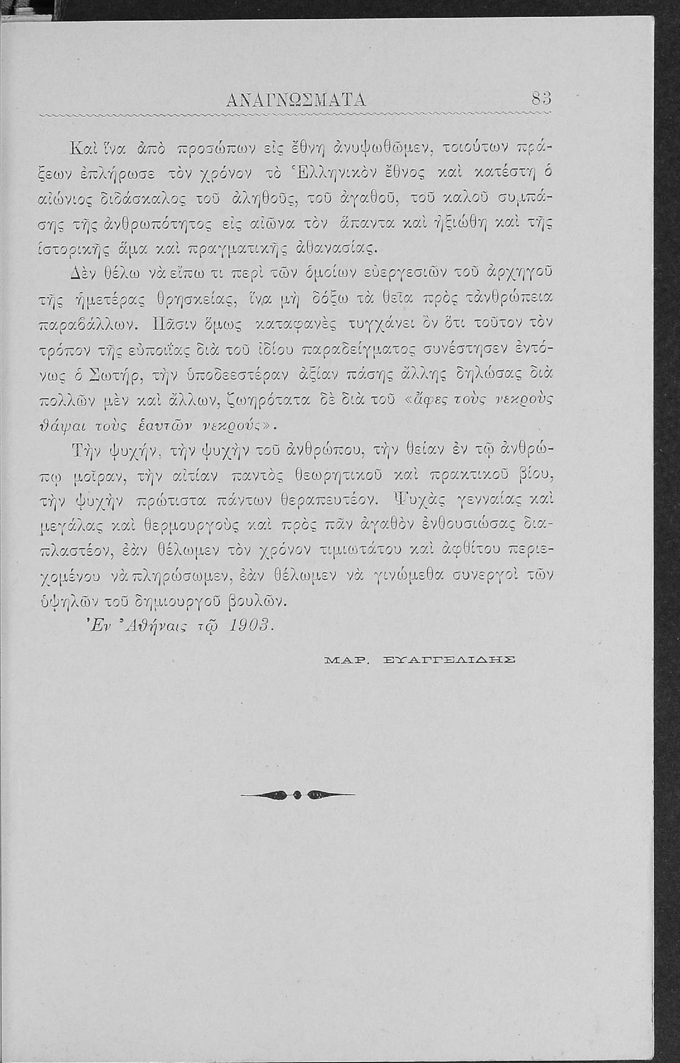 Σχολικό εγχειρίδιο Νέων Ελληνικών για όλες τις τάξεις του Γυμνασίου με πεζά και ποιήματα Ελλήνων λογοτεχνών και ποιητών. Η θεματολογία του από την αρχαιότητα και την ιστορική ζωή του τόπου. Το βιβλίο είχε εγκριθεί για μια τετραετία από το 1909-1913.