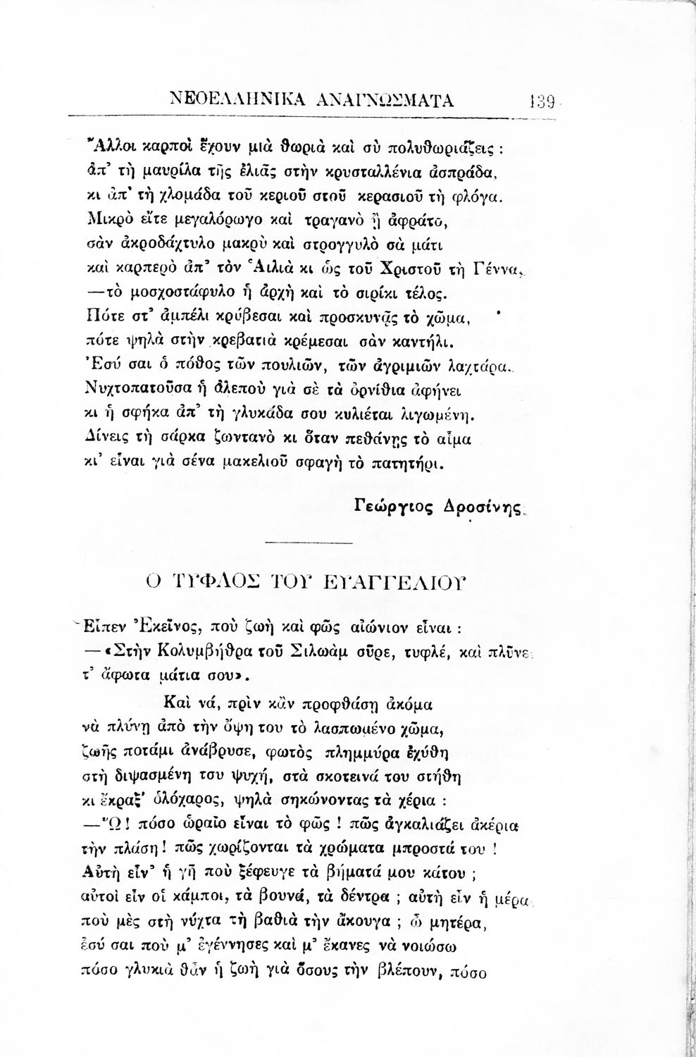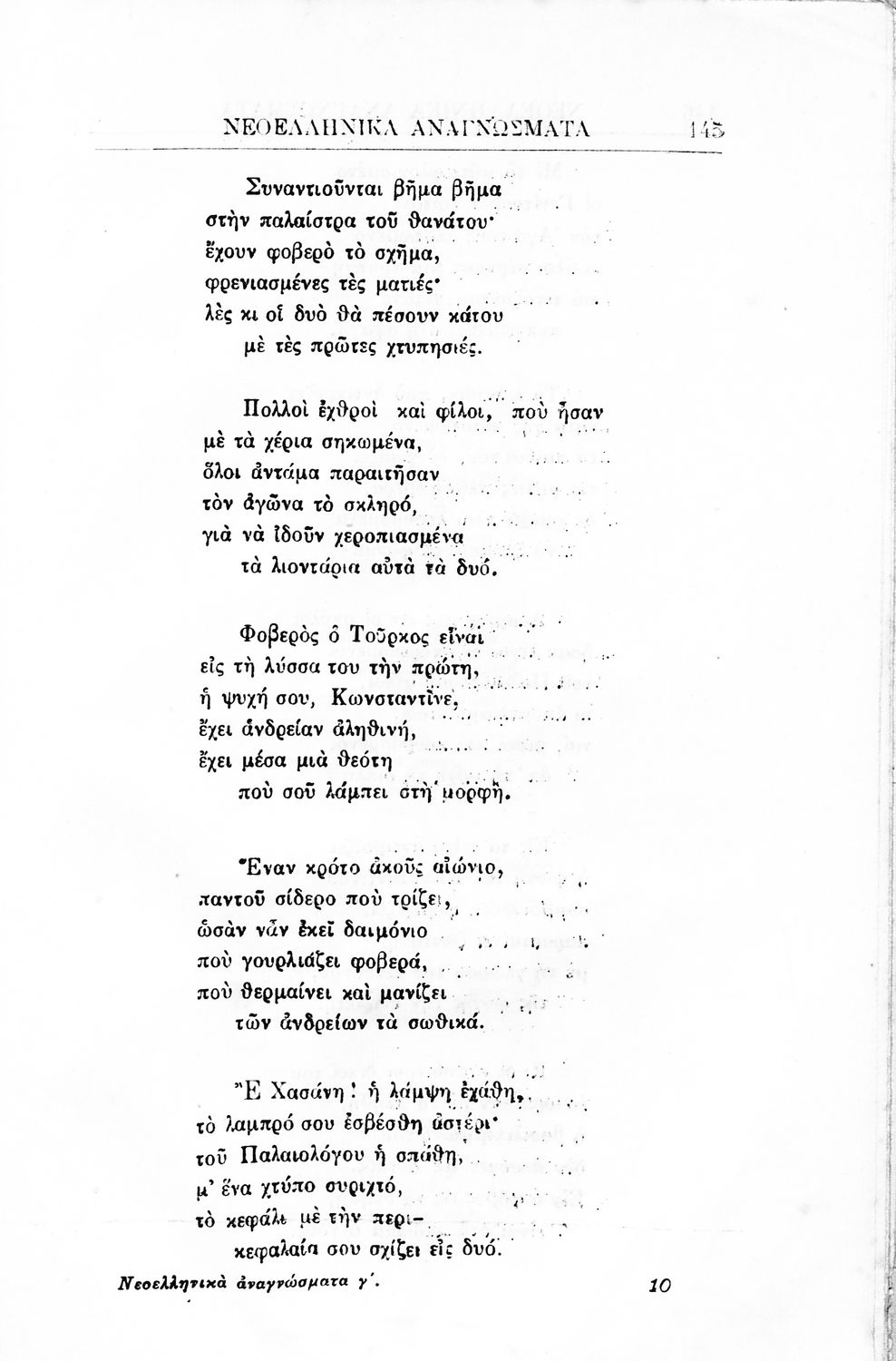 Σχολικό εγχειρίδιο Νέων Ελληνικών Γ' Ελληνικού και Α' Αστικού Σχολείου που περιλαμβάνει κείμενα Ελλήνων συγγραφέων εμπνευσμένα από την σύγχρονη ελληνική ιστορία, τη βυζαντινή ιστορία, την ελληνική φύση και τη ζωή στην ύπαιθρο, και τη θρησκευτική παράδοση. Περιέχει παράρτημα με τη βιογραφία των συγγραφέων και λεξιλόγιο.