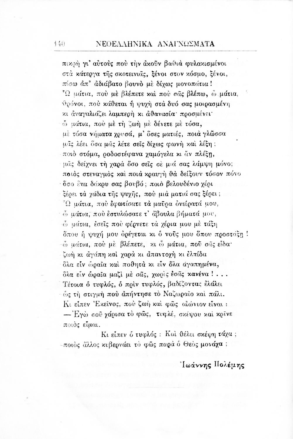 LDR 01815 2200217 4500 035 ## _a01-46079 040 ## _aΙνστιτούτο Εκπαιδευτικής Πολιτικής 041 ## _ael 100 ## _aΙωάννης Πολέμης 110 ## _a46079 245 0# _aΝεοελληνικά αναγνώσματα διά τους μαθητάς της Γ΄ τάξεως των Ελληνικών Σχολείων της αντιστοίχου τάξεως των λοιπών σχολείων της Μέσης Εκπαιδεύσεως και της Α΄ τάξεως των Αστικών Σχολείων των θηλέων 250 ## _a2η Έκδοση 260 ## _aΑθήνα _bΙωάννης Ν. Σιδέρης _c1921 300 ## _a159 _bΦωτογραφίες και σκίτσα (ασπρόμαυρα) _c23 520 ## _aΣχολικό εγχειρίδιο Νέων Ελληνικών Γ' Ελληνικού και Α' Αστικού Σχολείου που περιλαμβάνει κείμενα Ελλήνων συγγραφέων εμπνευσμένα από την σύγχρονη ελληνική ιστορία, τη βυζαντινή ιστορία, την ελληνική φύση και τη ζωή στην ύπαιθρο, και τη θρησκευτική παράδοση. Περιέχει παράρτημα με τη βιογραφία των συγγραφέων και λεξιλόγιο. 521 ## _aΓ' Ελληνικού Σχολείου / Α' Αστικού Σχολείου 522 ## _aΕλλάδα 546 ## _aΚαθαρεύουσα / Δημοτική 563 ## _aΜαλακό Εξώφυλλο 583 ## _a15726/20-5-1919 _c1919 650 #4 _aΒαλαωρίτης _aΒιζυηνός _aΔροσίνης _aΖαμπέλιος _aΚαρκαβίτσας _aΠαλαμάς _aΣολωμός