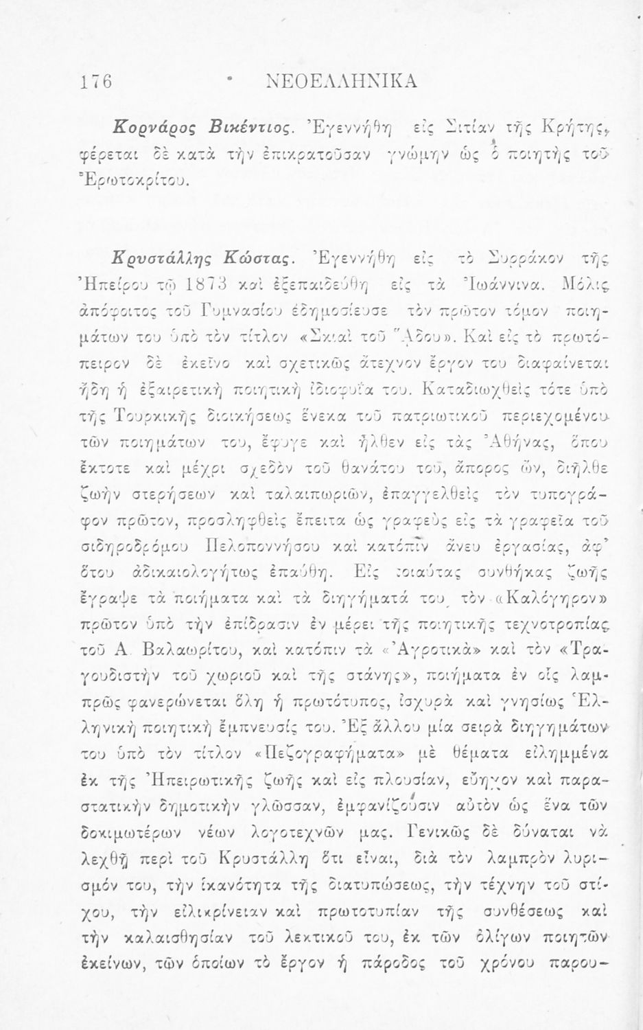 Σχολικό εγχειρίδιο Νέων Ελληνικών Β' Γυμνασίου που περιλαμβάνει κείμενα Ελλήνων συγγραφέων και δημοτικά τραγούδια με θέματα από την ελληνική φύση, την καθημερινή ζωή των ανθρώπων, τη θρησκευτική παράδοση και την σύγχρονη ελληνική ιστορία. Περιέχει και παράρτημα με βιογραφίες των συγγραφέων και λεξιλόγιο.
