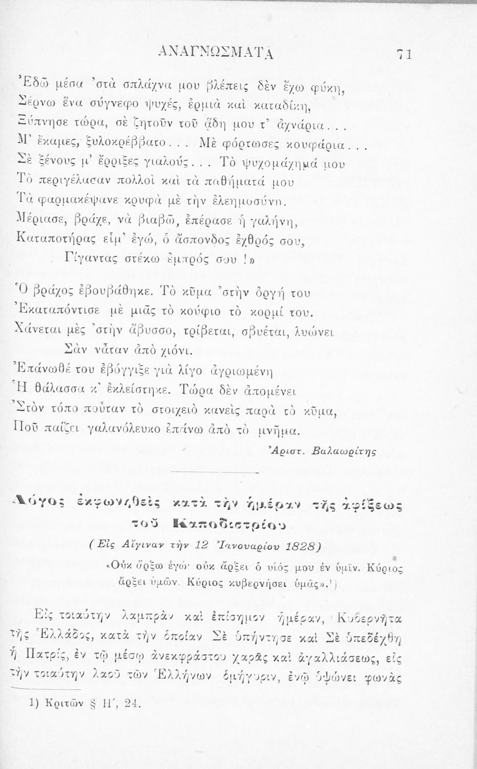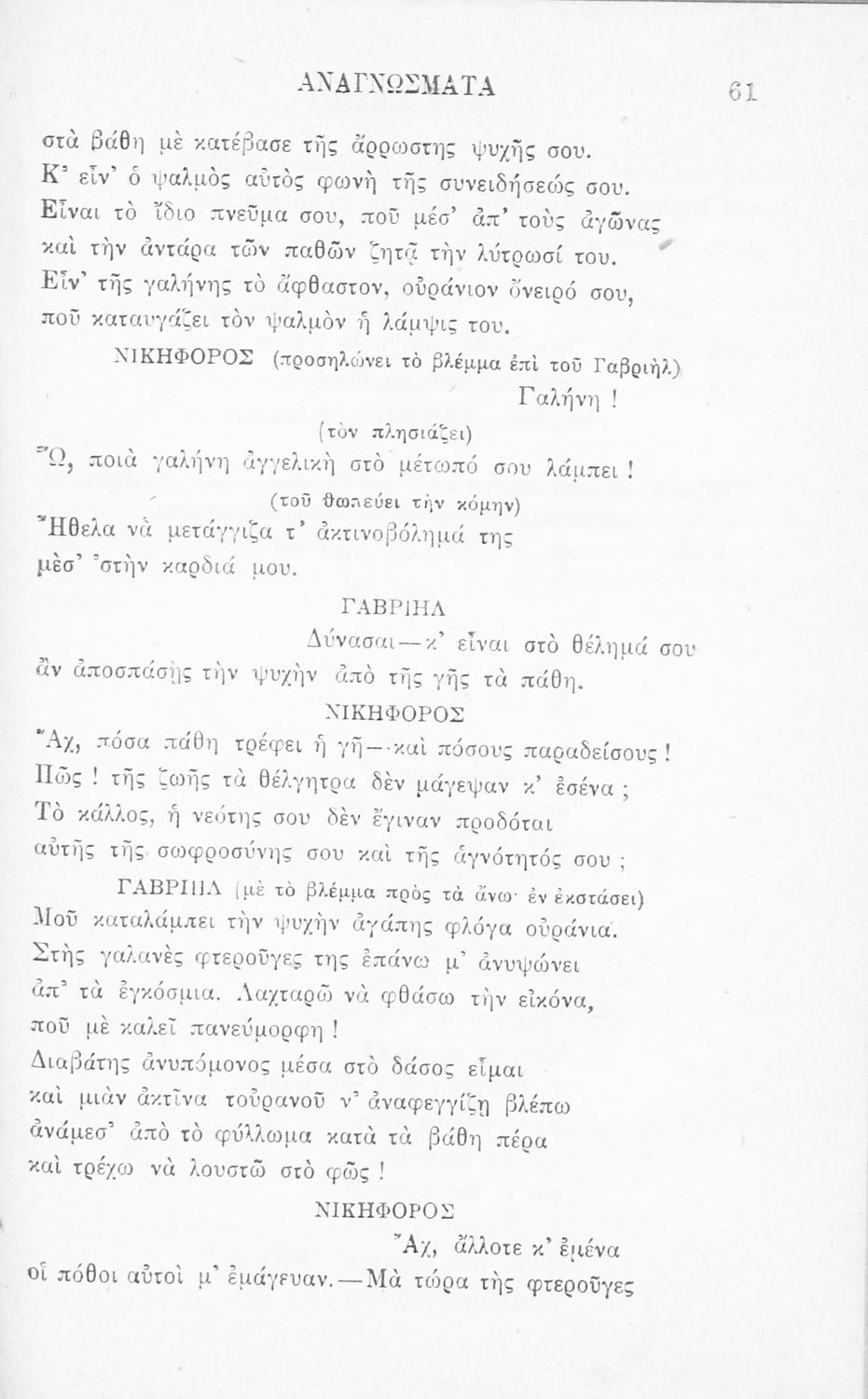 Σχολικό εγχειρίδιο Νέων Ελληνικών Β' Γυμνασίου που περιλαμβάνει κείμενα Ελλήνων συγγραφέων και δημοτικά τραγούδια με θέματα από την ελληνική φύση, την καθημερινή ζωή των ανθρώπων, τη θρησκευτική παράδοση και την σύγχρονη ελληνική ιστορία. Περιέχει και παράρτημα με βιογραφίες των συγγραφέων και λεξιλόγιο.