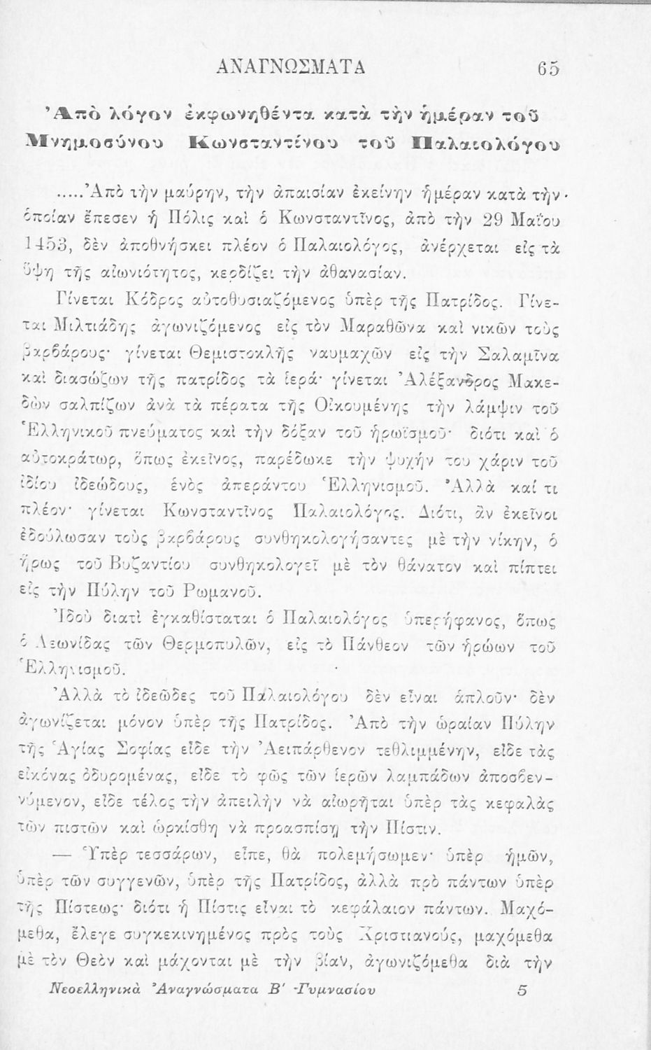 Βαθμίδα εκπαίδευσης: Δευτεροβάθμια Τάξη: Β' Γυμνασίου Μάθημα: Νέα Ελληνικά Γλώσσα: Καθαρεύουσα / Δημοτική Παρουσίαση περιεχομένου: Σχολικό εγχειρίδιο Νέων Ελληνικών Β' Γυμνασίου που περιλαμβάνει κείμενα Ελλήνων συγγραφέων και δημοτικά τραγούδια με θέματα από την ελληνική φύση, την καθημερινή ζωή των ανθρώπων, τη θρησκευτική παράδοση και την σύγχρονη ελληνική ιστορία. Περιέχει και παράρτημα με βιογραφίες των συγγραφέων και λεξιλόγιο. |