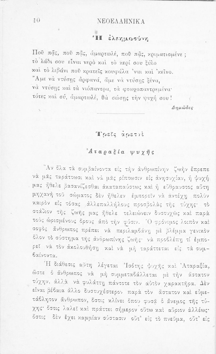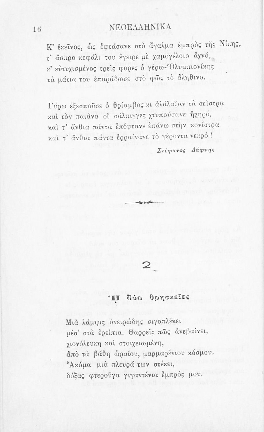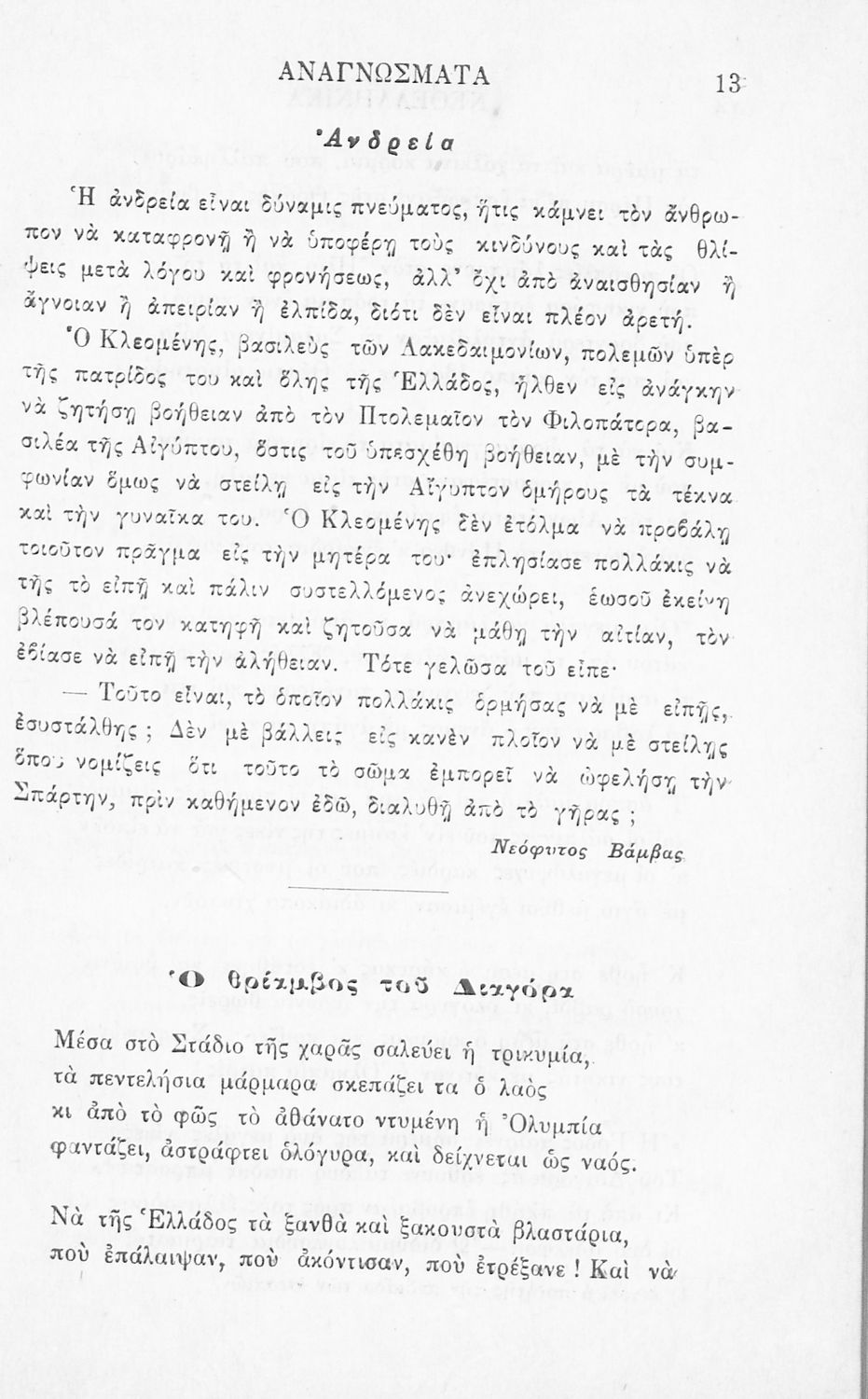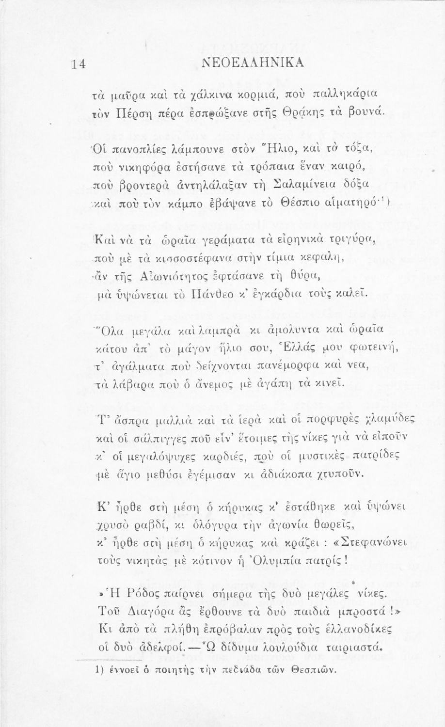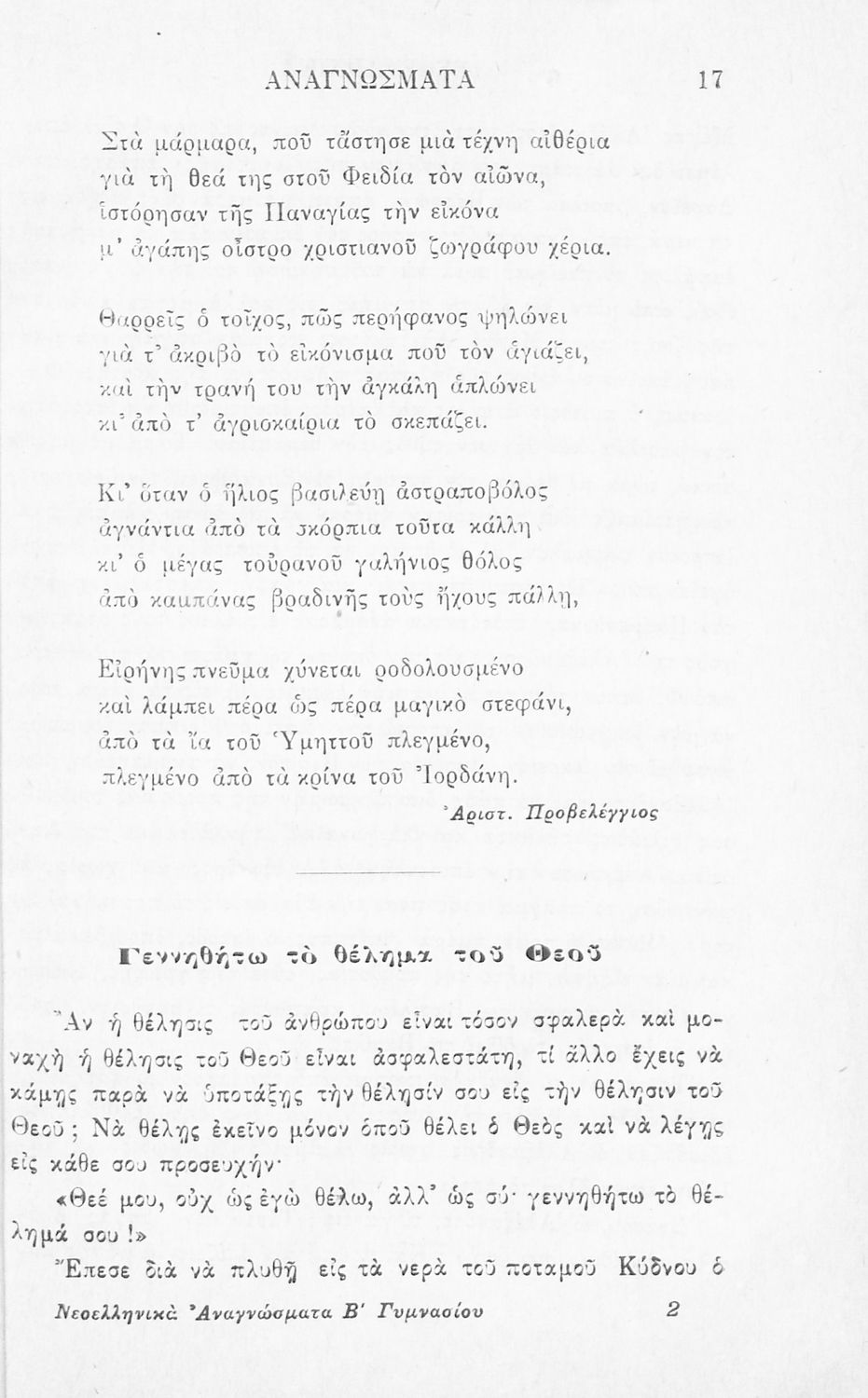Σχολικό εγχειρίδιο Νέων Ελληνικών Β' Γυμνασίου που περιλαμβάνει κείμενα Ελλήνων συγγραφέων και δημοτικά τραγούδια με θέματα από την ελληνική φύση, την καθημερινή ζωή των ανθρώπων, τη θρησκευτική παράδοση και την σύγχρονη ελληνική ιστορία. Περιέχει και παράρτημα με βιογραφίες των συγγραφέων και λεξιλόγιο.