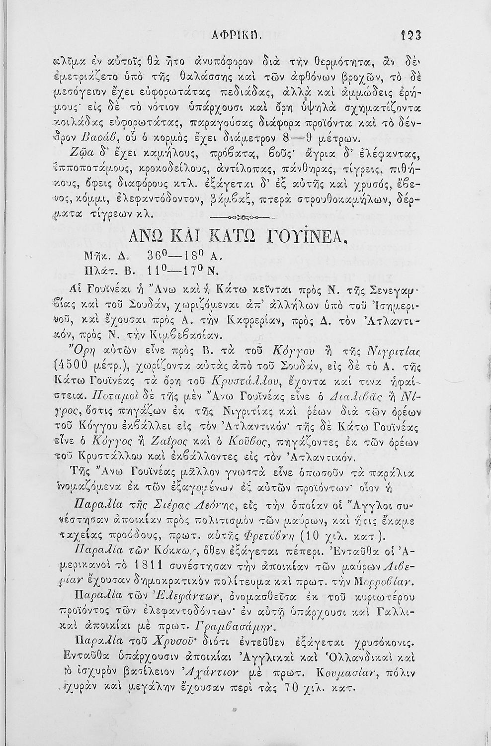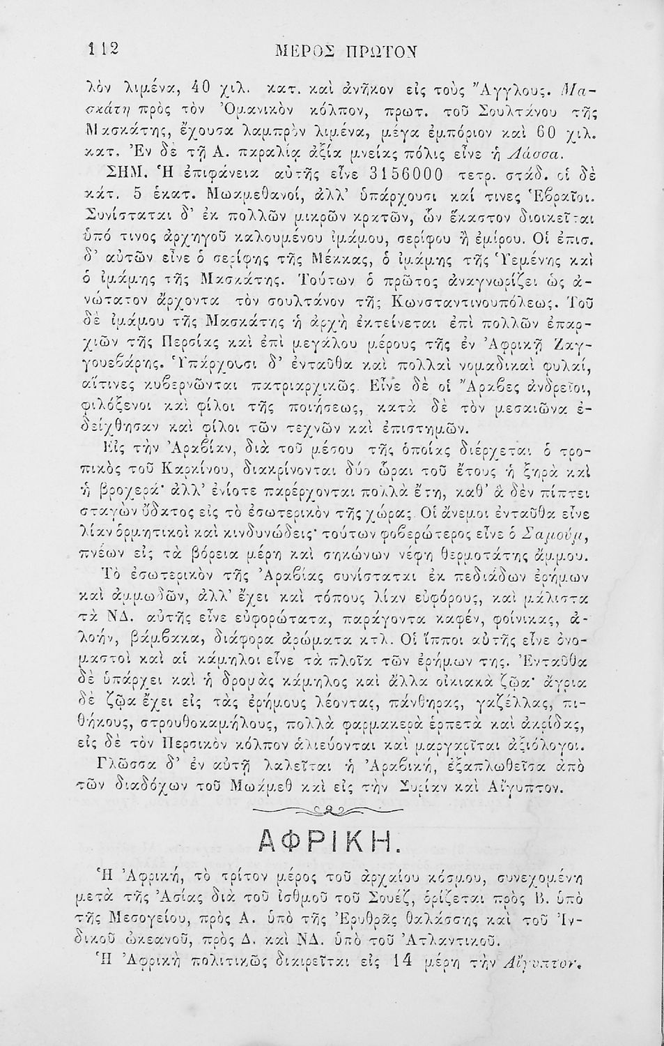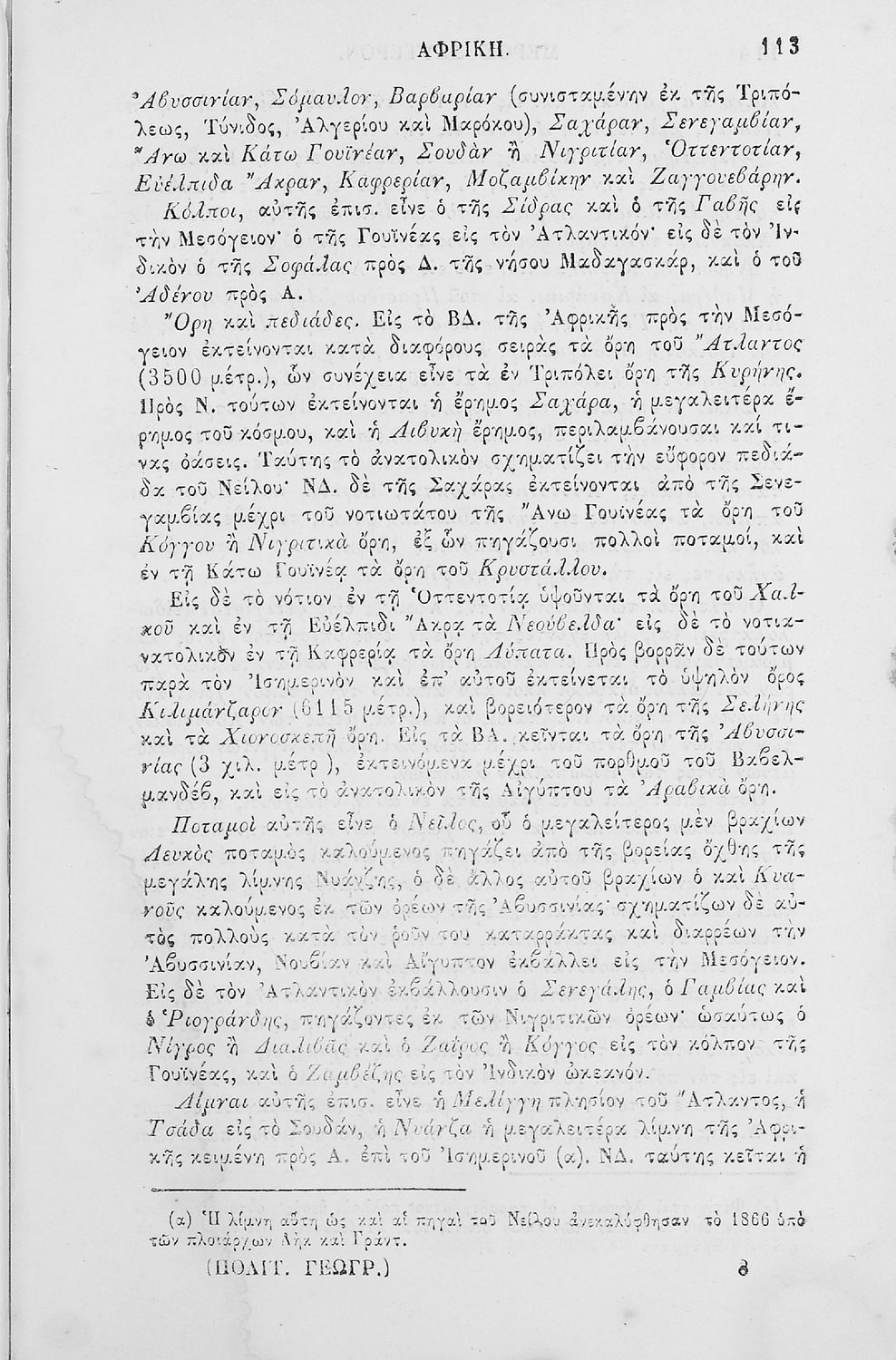 Σχολικό εγχειρίδιο Γεωγραφίας για τη Δευτεροβάθμια Εκπαίδευση. Παρουσιάζει στοιχεία πολιτικής και φυσικής γεωγραφίας των ηπείρων. Στην εισαγωγή περιέχονται προκαταρτικές και γενικές γνώσεις ενώ στο δεύτερο μέρος έχει στοιχεία Μαθηματικής Γεωγραφίας. Ο συγγραφέας ήταν διδάκτορας φιλοσοφίας και καθηγητής.