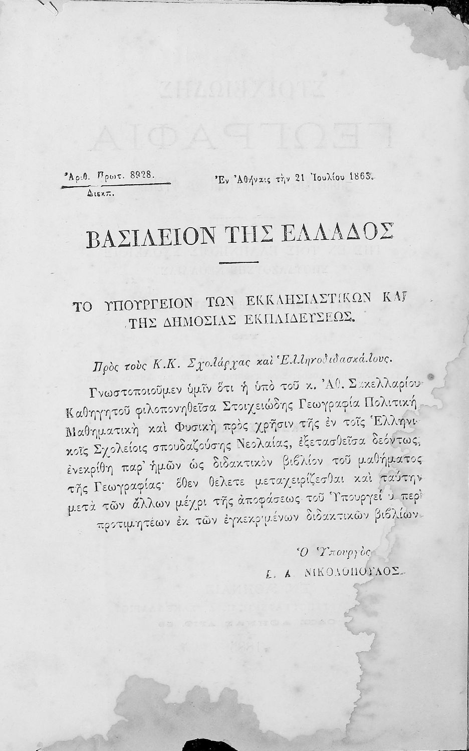 Υπουργική απόφαση / Σύμβαση: 8928/21-7-1863