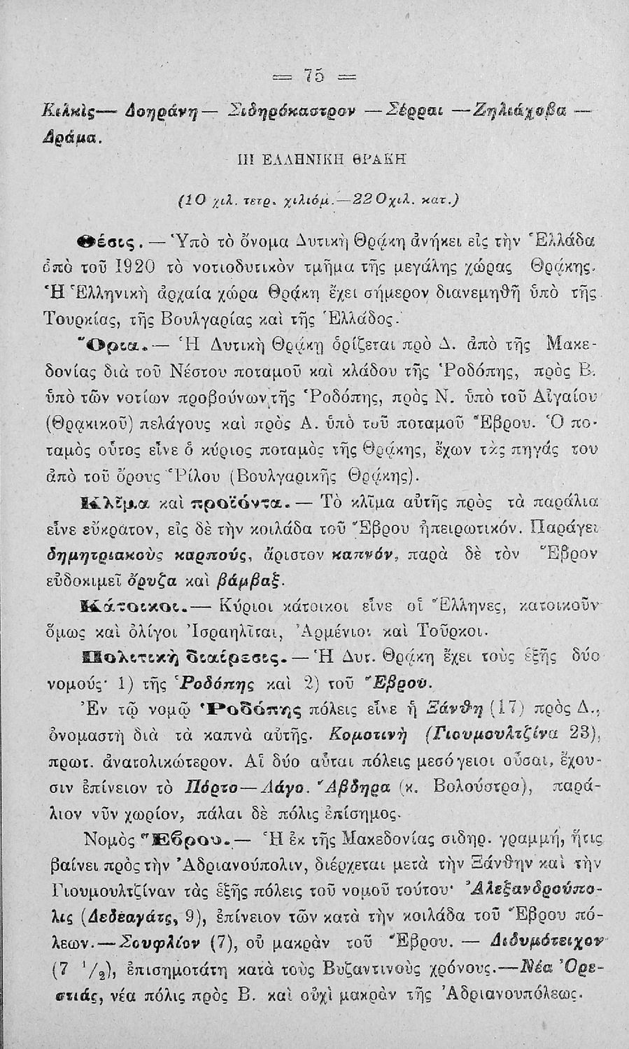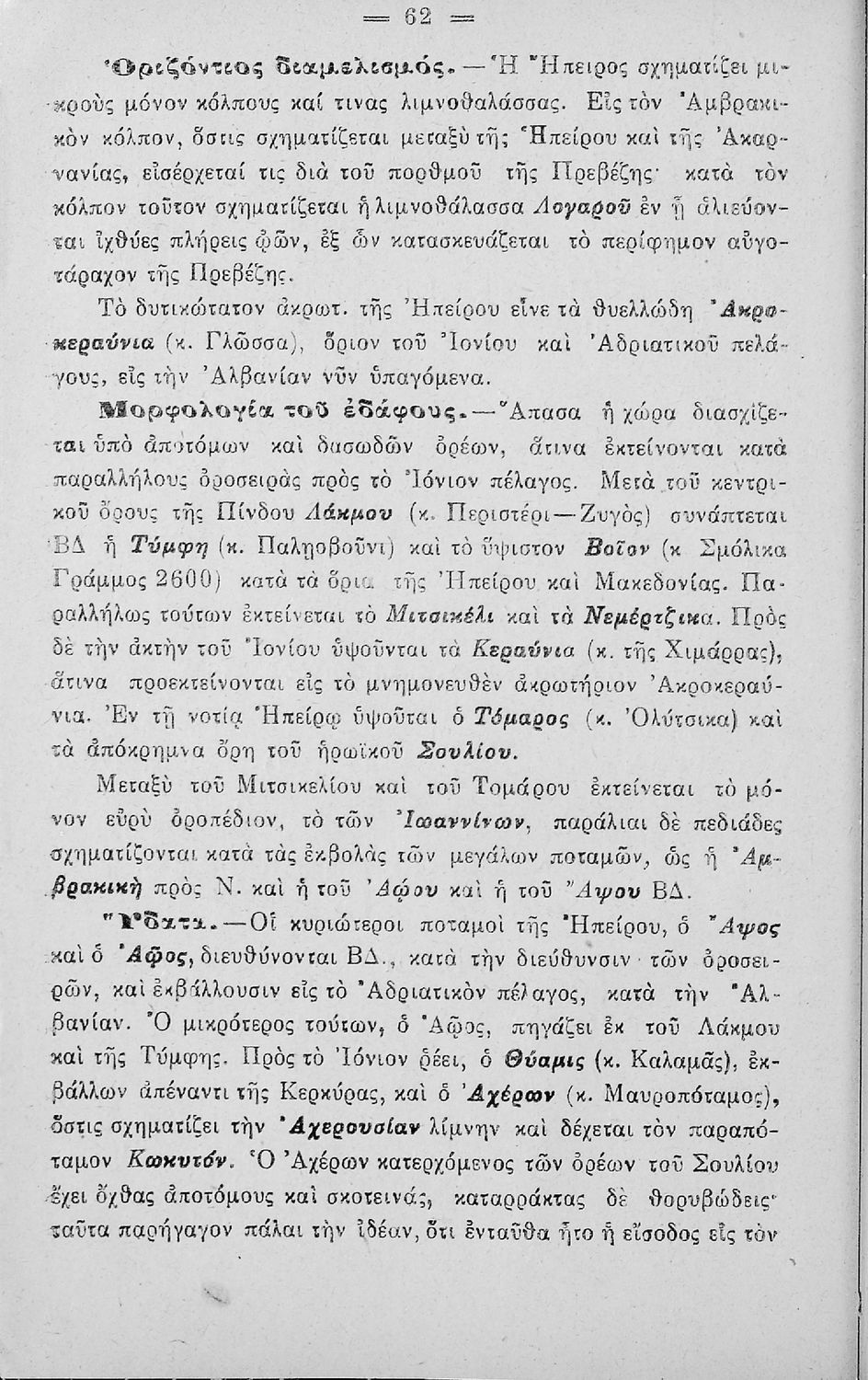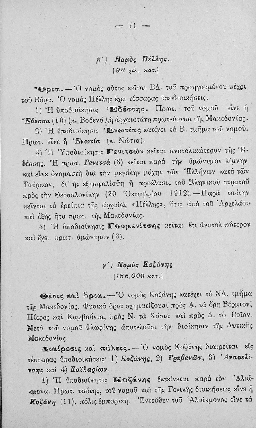 Σχολικό εγχειρίδιο Γεωγραφίας Γ΄ Ελληνικού Σχολείου που αποτελεί μια γενική επισκόπηση της Ελλάδας ανά διαμέρισμα και νομό. Περιέχει και ειδικό κεφάλαιο για τις "λοιπές ελληνικές χώρες" στις οποίες περιλαμβάνονται τα Δωδεκάνησα, η Τουρκική Θράκη, η Ανατολική Ρωμυλία, η Σερβική και Βουλγαρική Μακεδονία, η Μικρά Ασία, η Συρία, η Παλαιστίνη, και η Κύπρος.