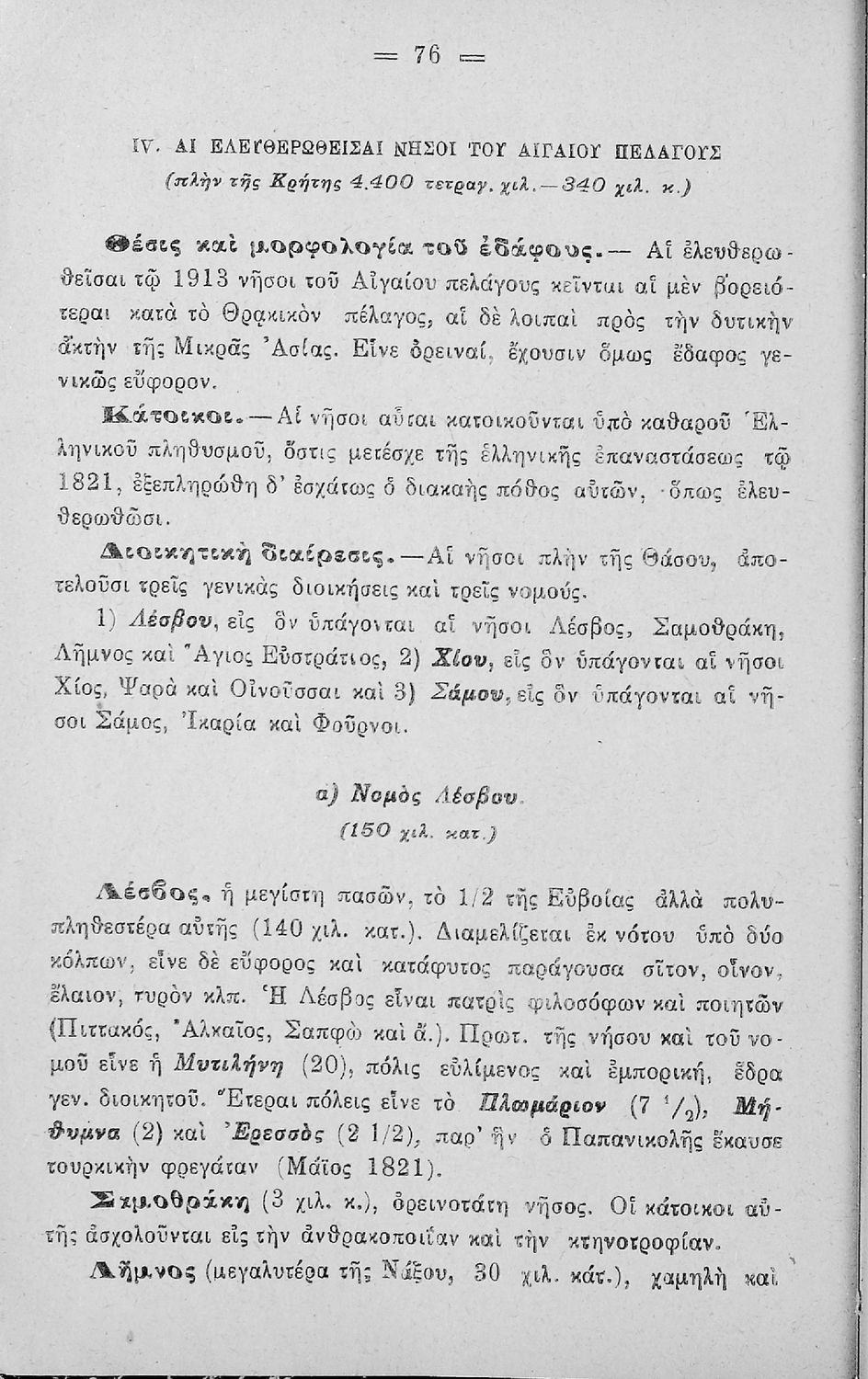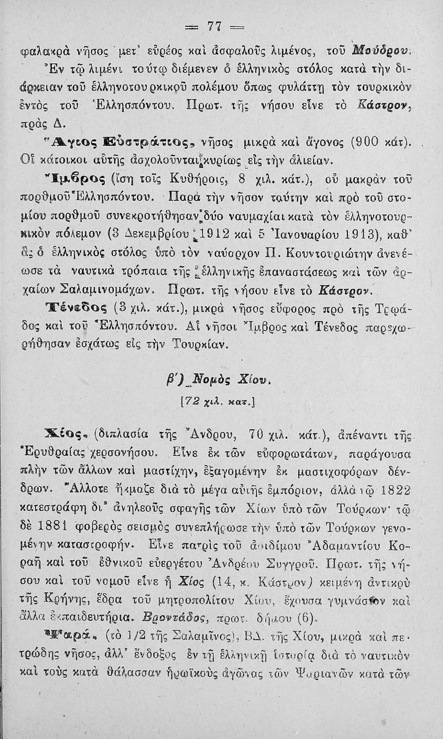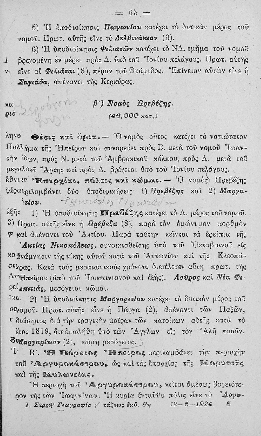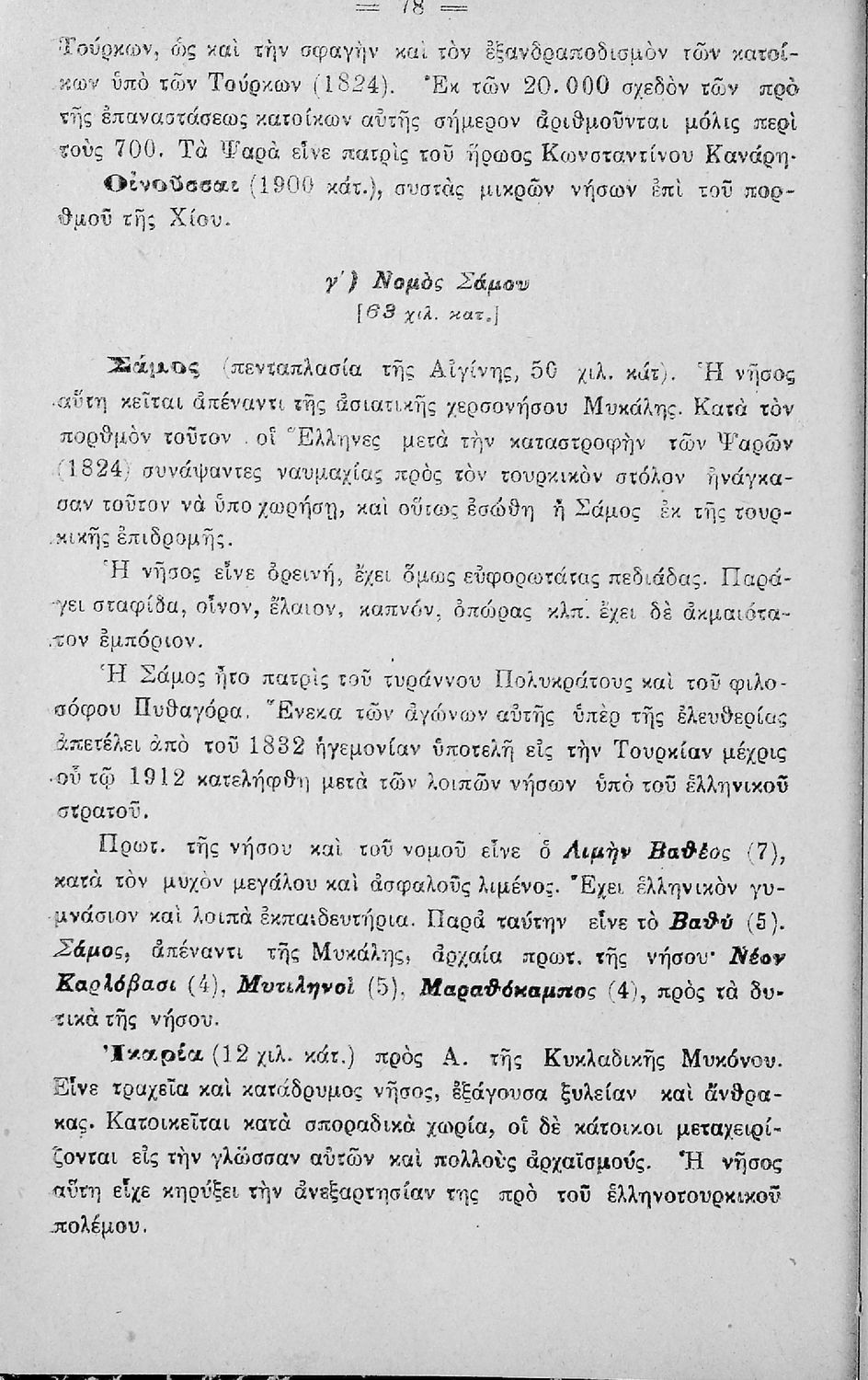 Σχολικό εγχειρίδιο Γεωγραφίας Γ΄ Ελληνικού Σχολείου που αποτελεί μια γενική επισκόπηση της Ελλάδας ανά διαμέρισμα και νομό. Περιέχει και ειδικό κεφάλαιο για τις "λοιπές ελληνικές χώρες" στις οποίες περιλαμβάνονται τα Δωδεκάνησα, η Τουρκική Θράκη, η Ανατολική Ρωμυλία, η Σερβική και Βουλγαρική Μακεδονία, η Μικρά Ασία, η Συρία, η Παλαιστίνη, και η Κύπρος.
