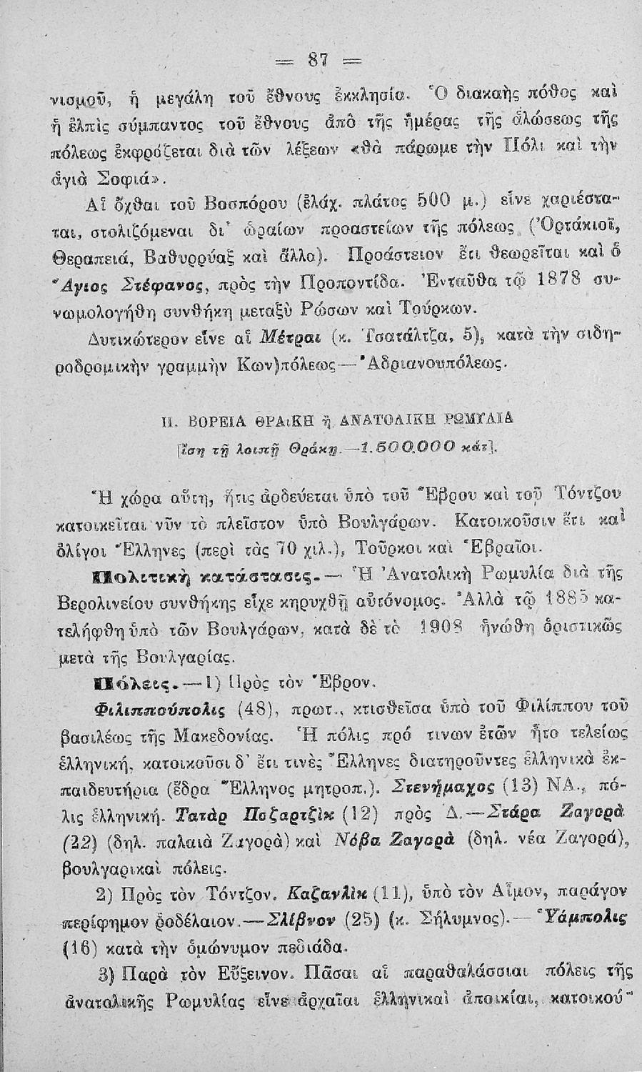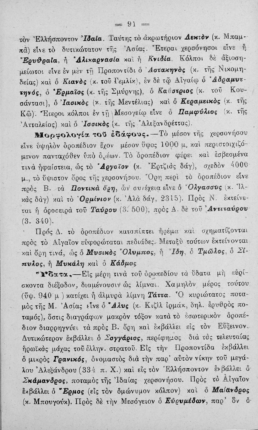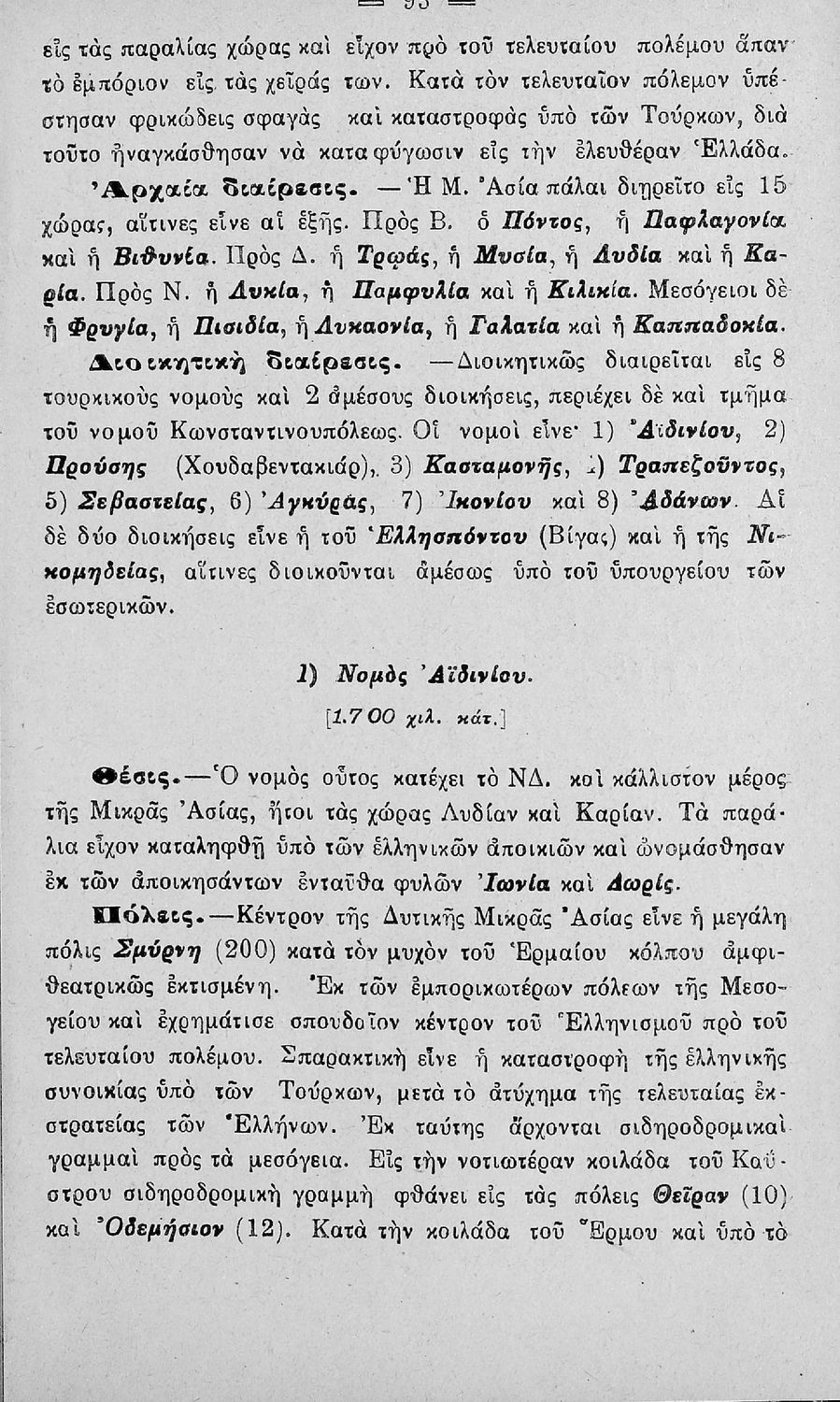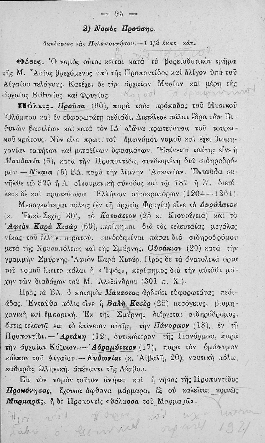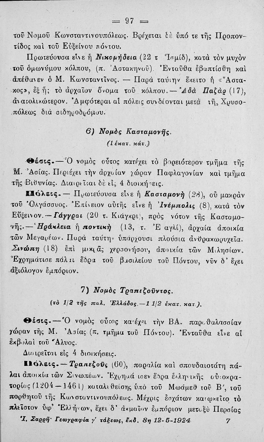 Σχολικό εγχειρίδιο Γεωγραφίας Γ΄ Ελληνικού Σχολείου που αποτελεί μια γενική επισκόπηση της Ελλάδας ανά διαμέρισμα και νομό. Περιέχει και ειδικό κεφάλαιο για τις "λοιπές ελληνικές χώρες" στις οποίες περιλαμβάνονται τα Δωδεκάνησα, η Τουρκική Θράκη, η Ανατολική Ρωμυλία, η Σερβική και Βουλγαρική Μακεδονία, η Μικρά Ασία, η Συρία, η Παλαιστίνη, και η Κύπρος.