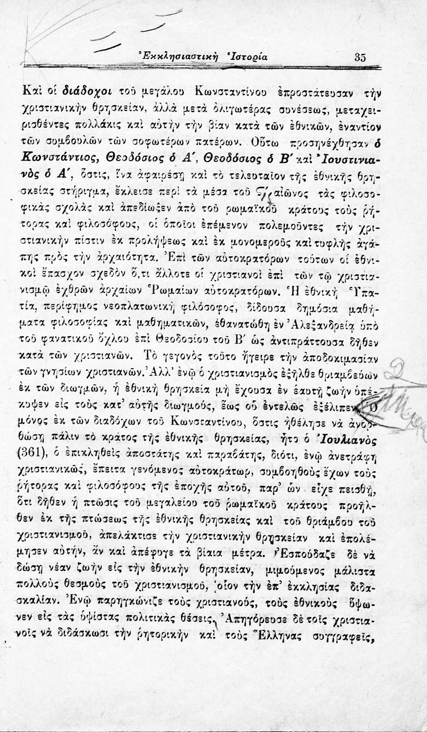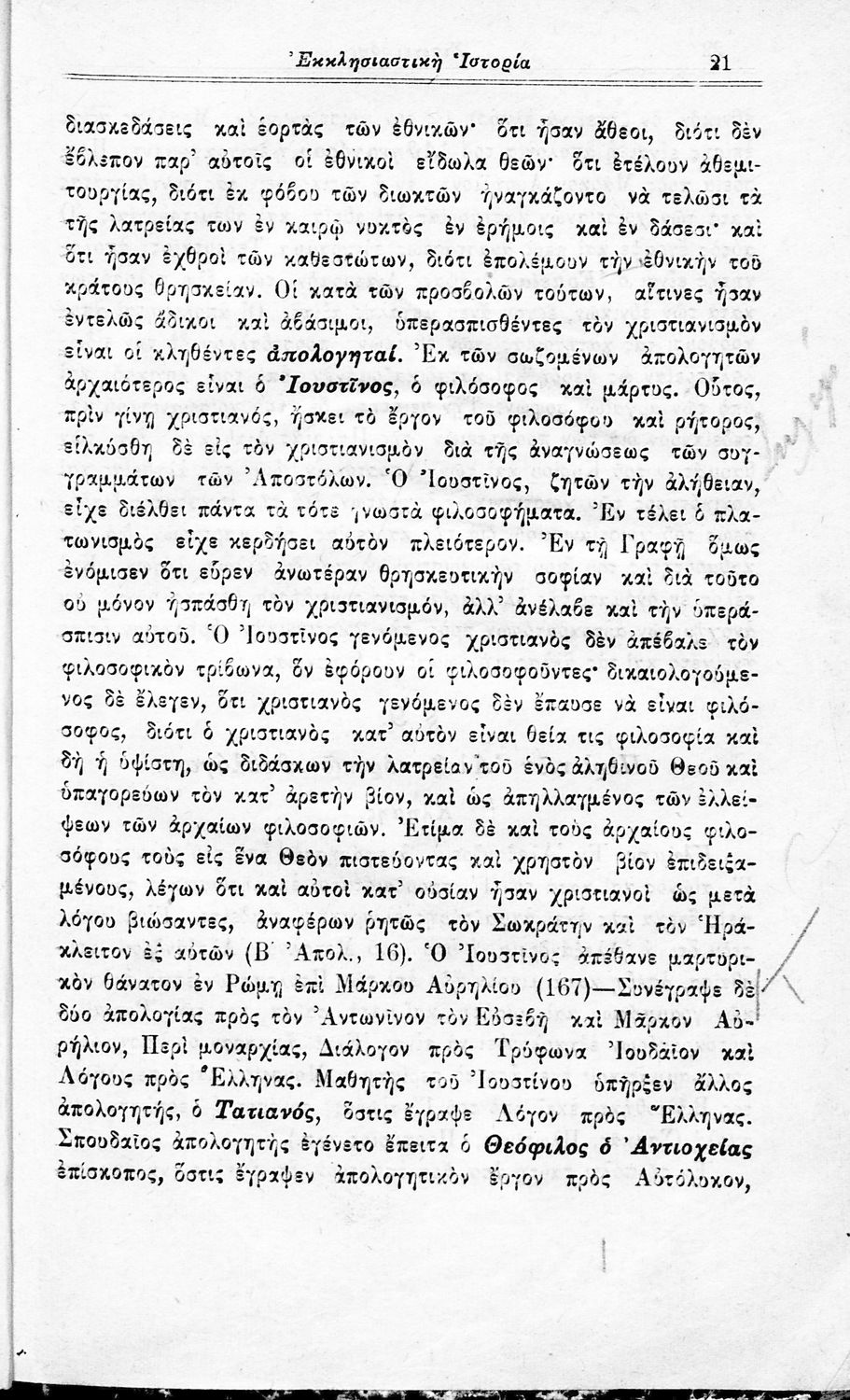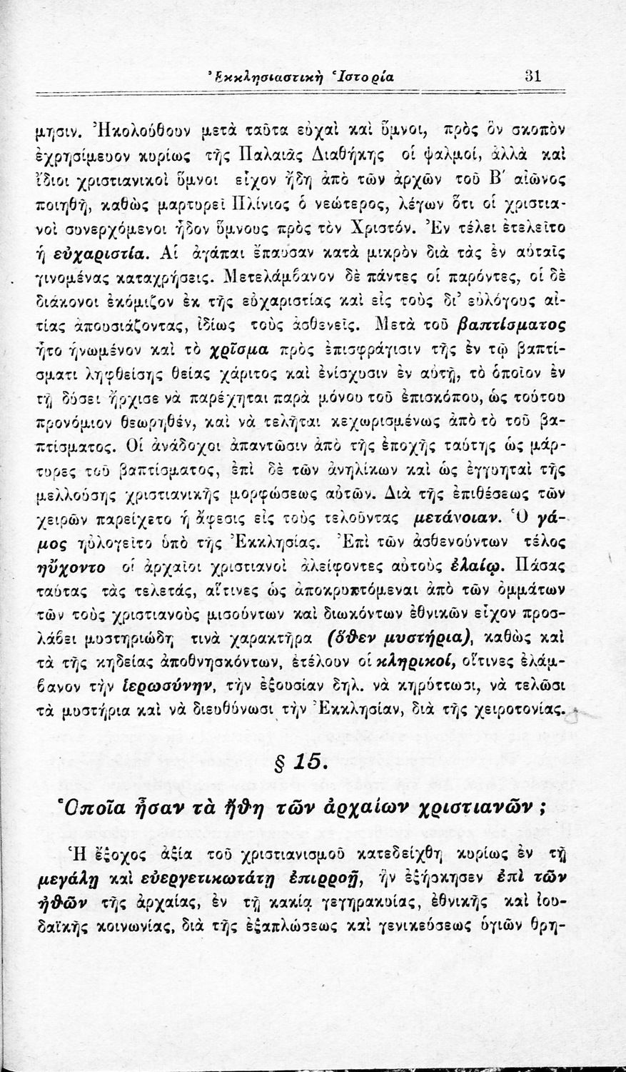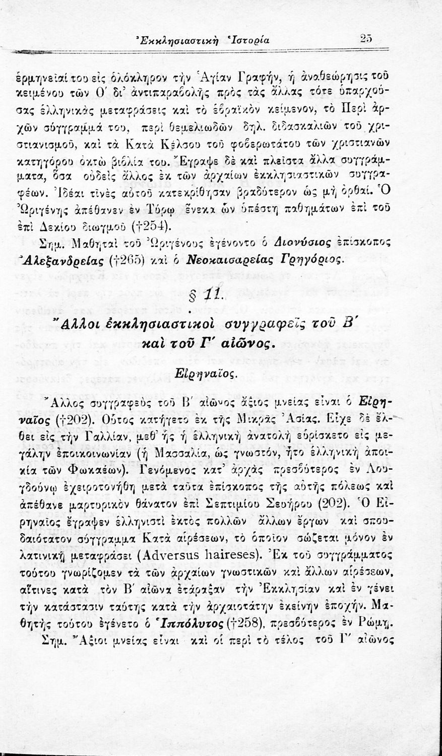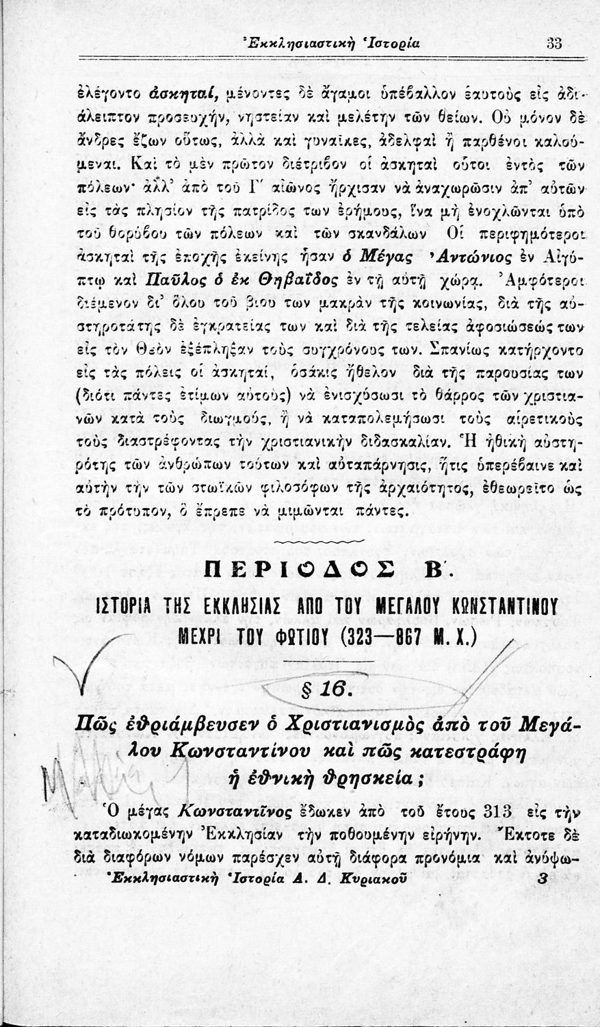 Παρουσίαση περιεχομένου: Σχολικό εγχειρίδιο Θρησκευτικών. Περιέχει την ιστορία της Εκκλησίας από την ίδρυσή της μέχρι την δημιουργία της Εκκλησίας της Ελλάδας. Ο συγγραφέας ήταν καθηγητής της Θεολογίας στο Εθνικό Πανεπιστήμιο.