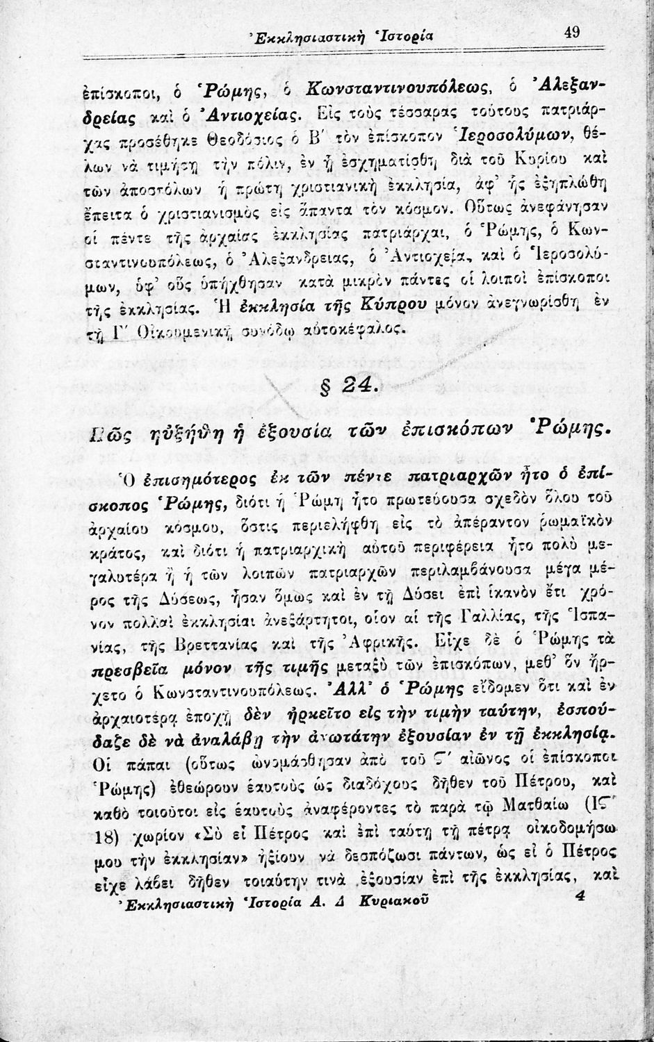 Σχολικό εγχειρίδιο Θρησκευτικών. Περιέχει την ιστορία της Εκκλησίας από την ίδρυσή της μέχρι την δημιουργία της Εκκλησίας της Ελλάδας. Ο συγγραφέας ήταν καθηγητής της Θεολογίας στο Εθνικό Πανεπιστήμιο.