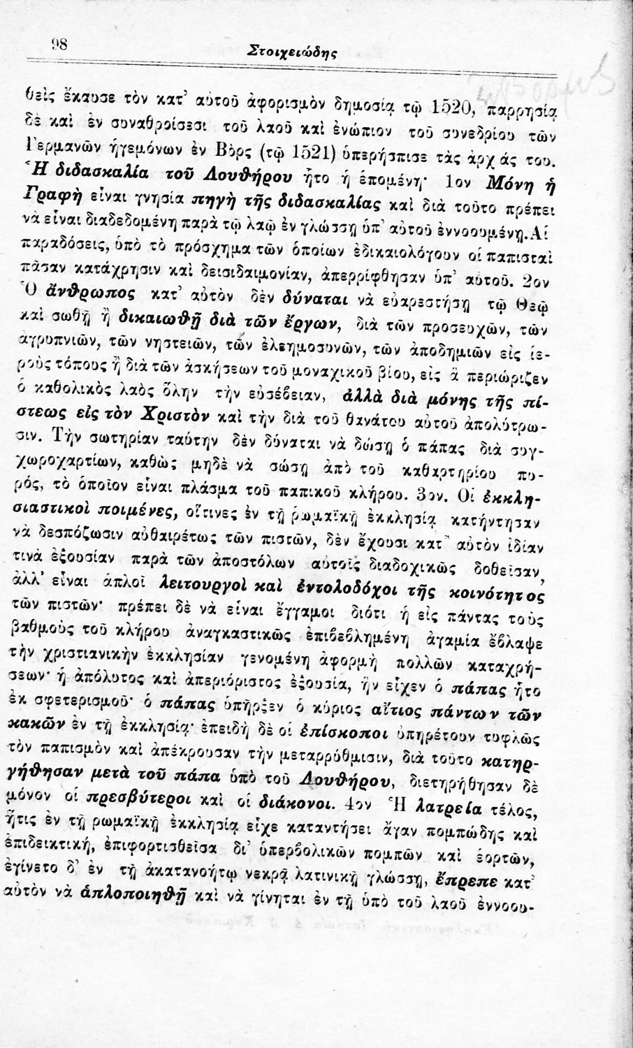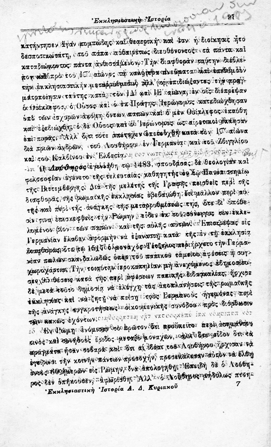 Βαθμίδα εκπαίδευσης: Δευτεροβάθμια Μάθημα: Θρησκευτικά Γλώσσα: Καθαρεύουσα Παρουσίαση περιεχομένου: Σχολικό εγχειρίδιο Θρησκευτικών. Περιέχει την ιστορία της Εκκλησίας από την ίδρυσή της μέχρι την δημιουργία της Εκκλησίας της Ελλάδας. Ο συγγραφέας ήταν καθηγητής της Θεολογίας στο Εθνικό Πανεπιστήμιο. |