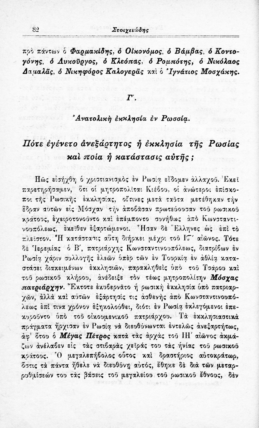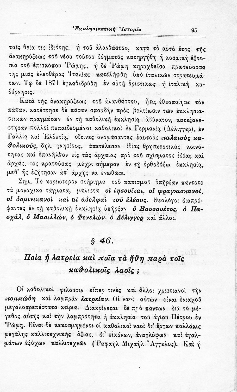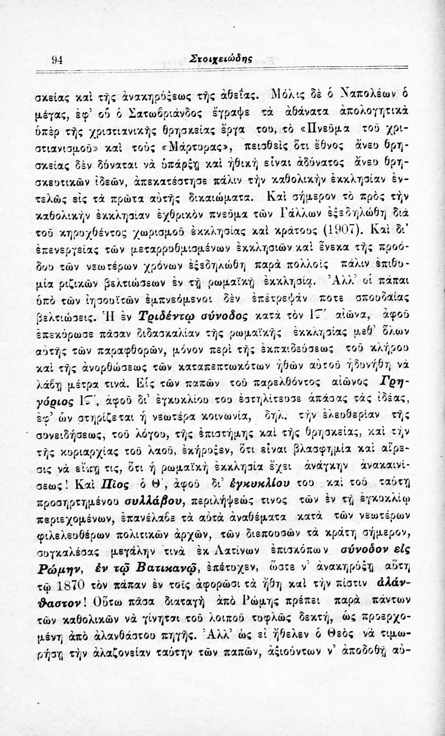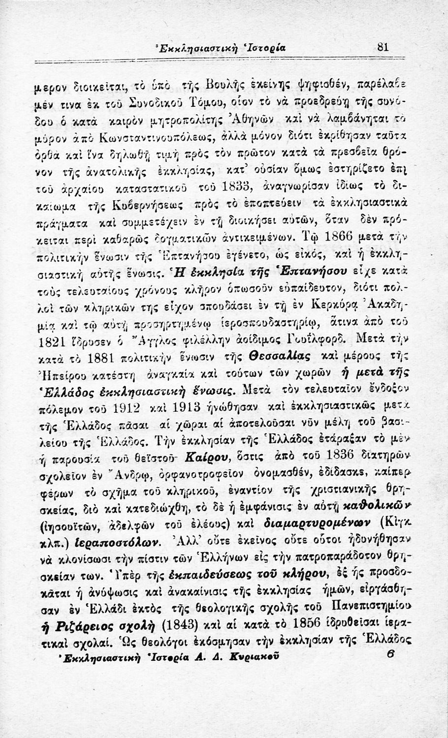 Σχολικό εγχειρίδιο Θρησκευτικών. Περιέχει την ιστορία της Εκκλησίας από την ίδρυσή της μέχρι την δημιουργία της Εκκλησίας της Ελλάδας. Ο συγγραφέας ήταν καθηγητής της Θεολογίας στο Εθνικό Πανεπιστήμιο.