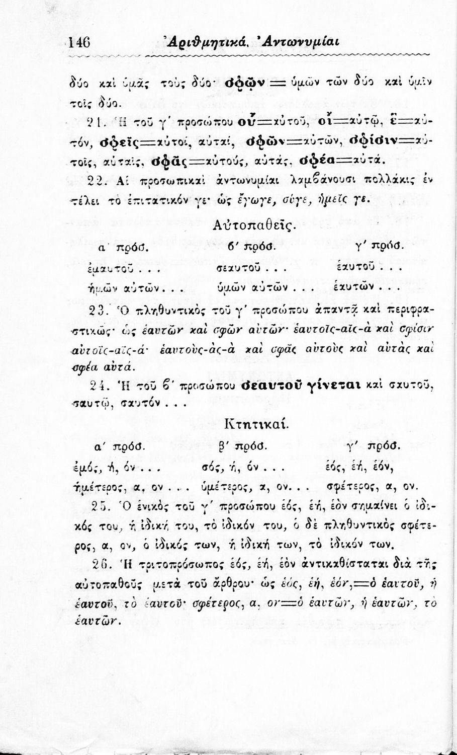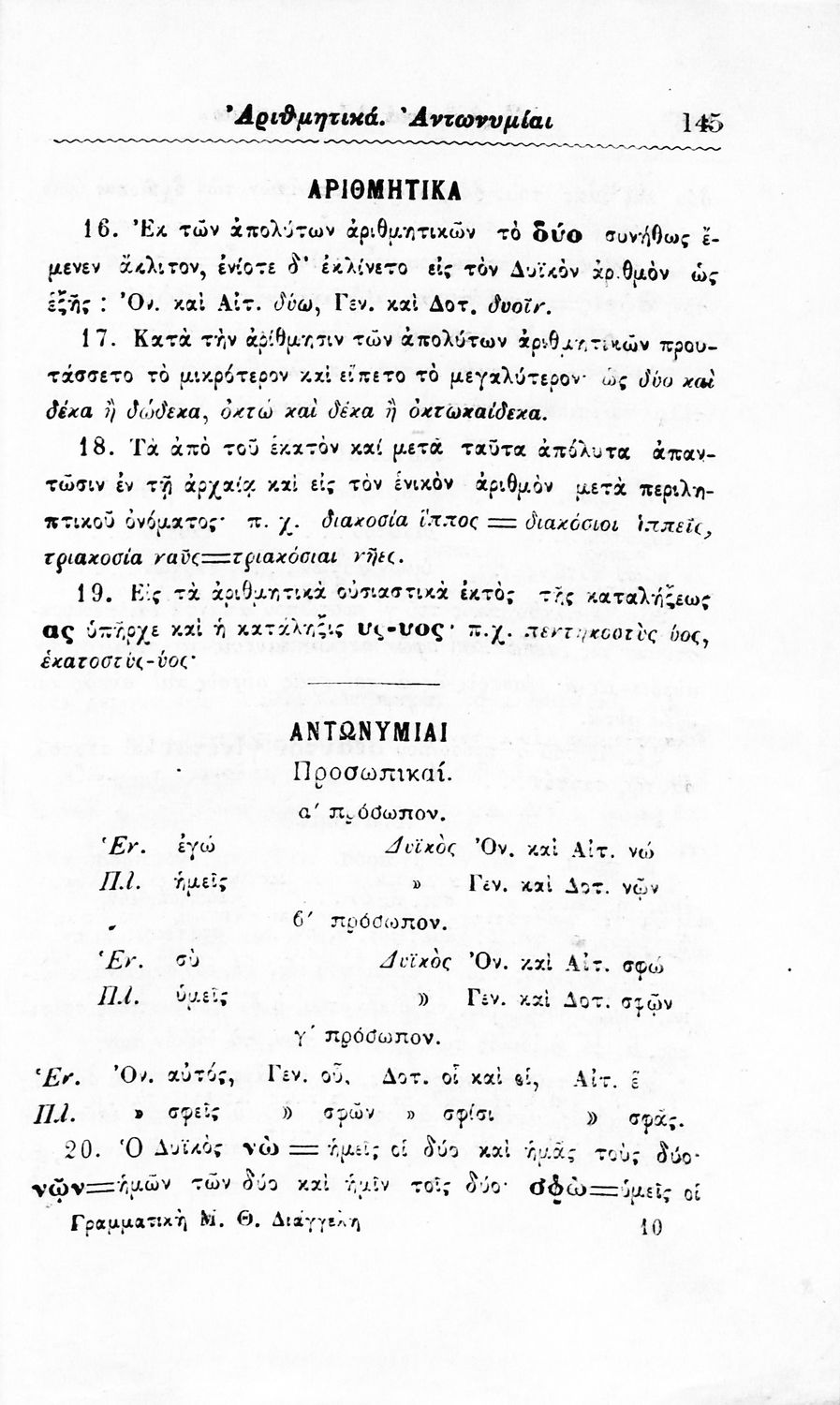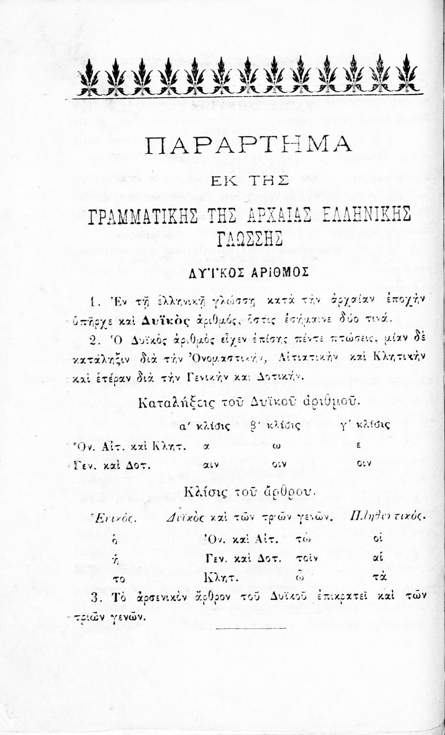 Σχολικό εγχειρίδιο Γλώσσας Δημοτικού που περιλαμβάνει τη γραμματική της νέας ελληνικής και είναι χωρισμένο σε φθογγολογικό, τυπικό και ετυμολογικό μέρος.