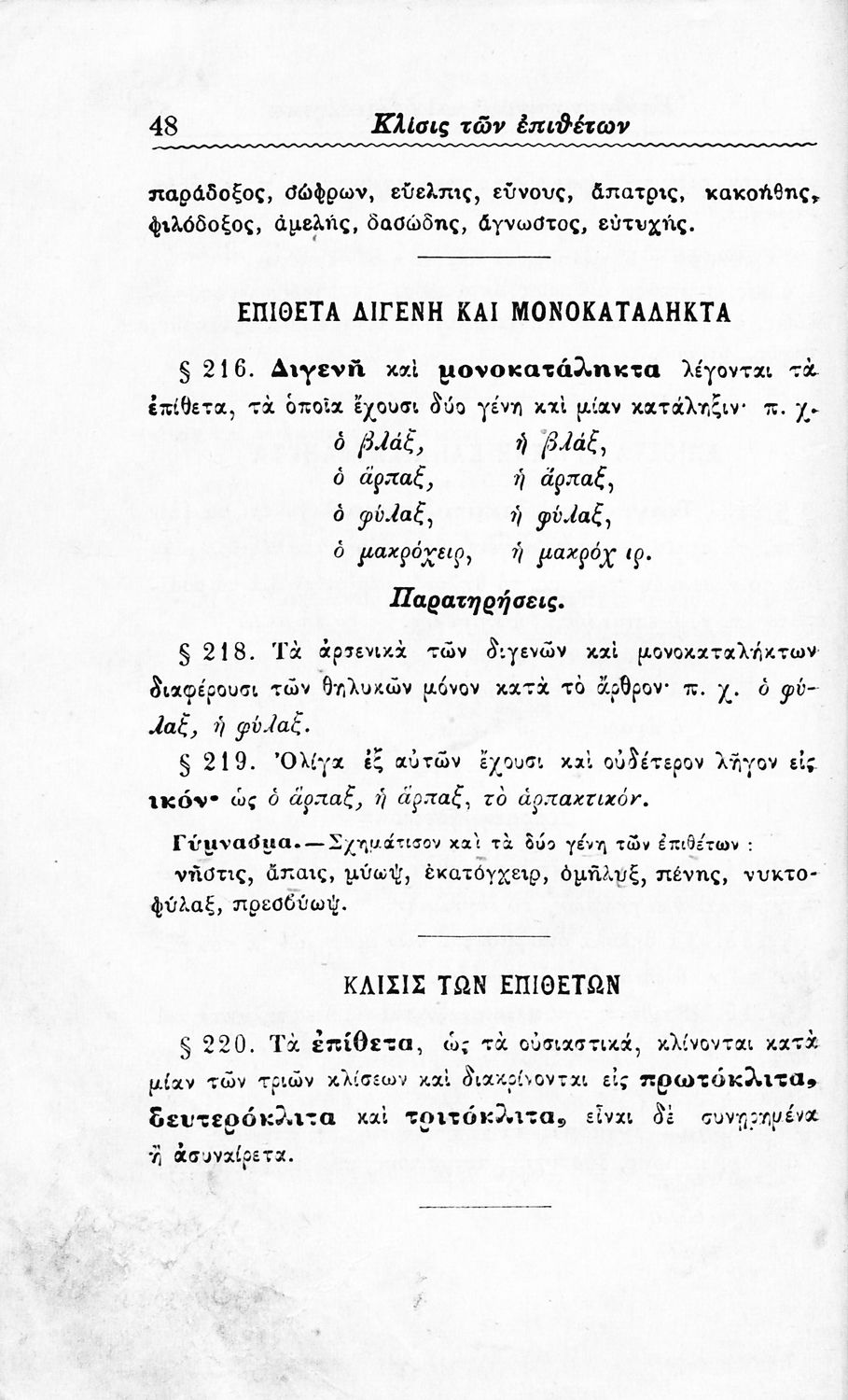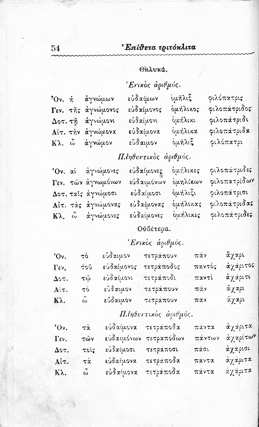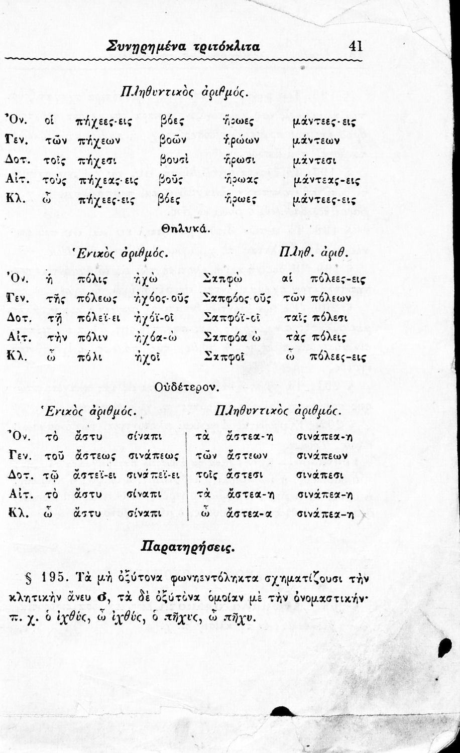 Σχολικό εγχειρίδιο Αρχαίων Ελληνικών Δημοτικού που περιλαμβάνει τους κανόνες γραμματικής και είναι χωρισμένο σε φθογγολογικό, τυπικό και ετυμολογικό μέρος.