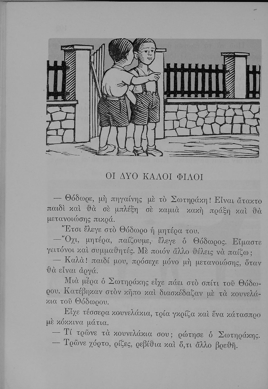 Αναγνωστικό Γ΄ Δημοτικού που περιλαμβάνει ποιήματα και πεζά εμπνευσμένα από την ελληνική φύση, τις ασχολίες των κατοίκων, την σύγχρονη ελληνική ιστορία, την ελληνική μυθολογία και τις θρησκευτικές γιορτές.