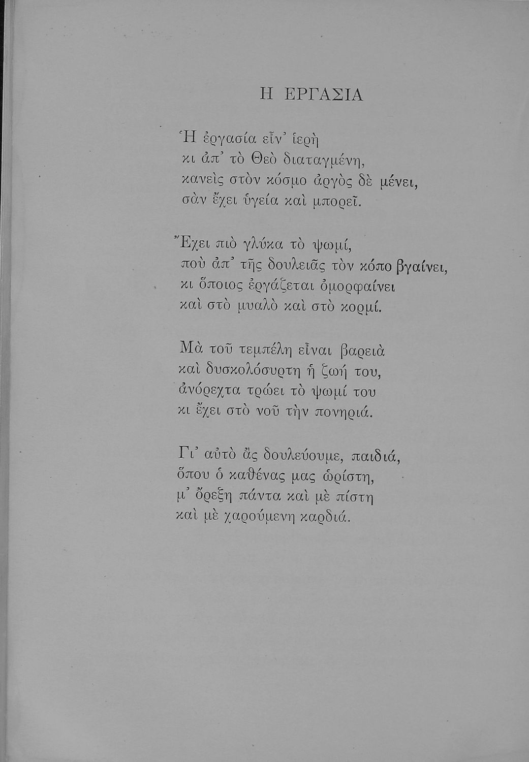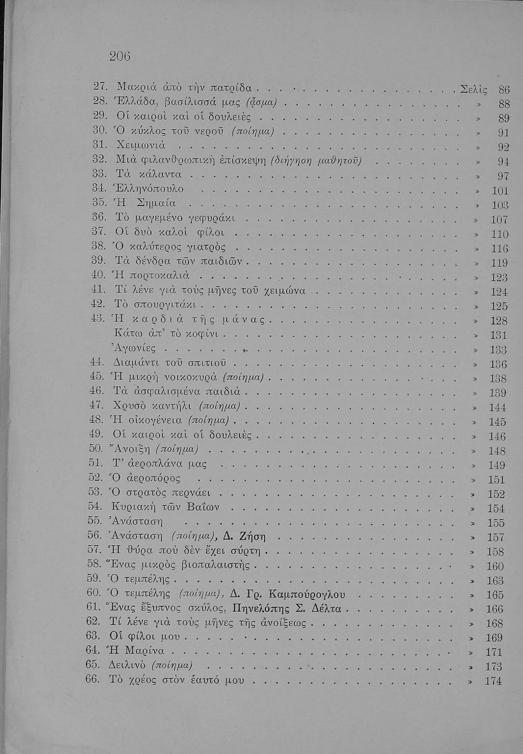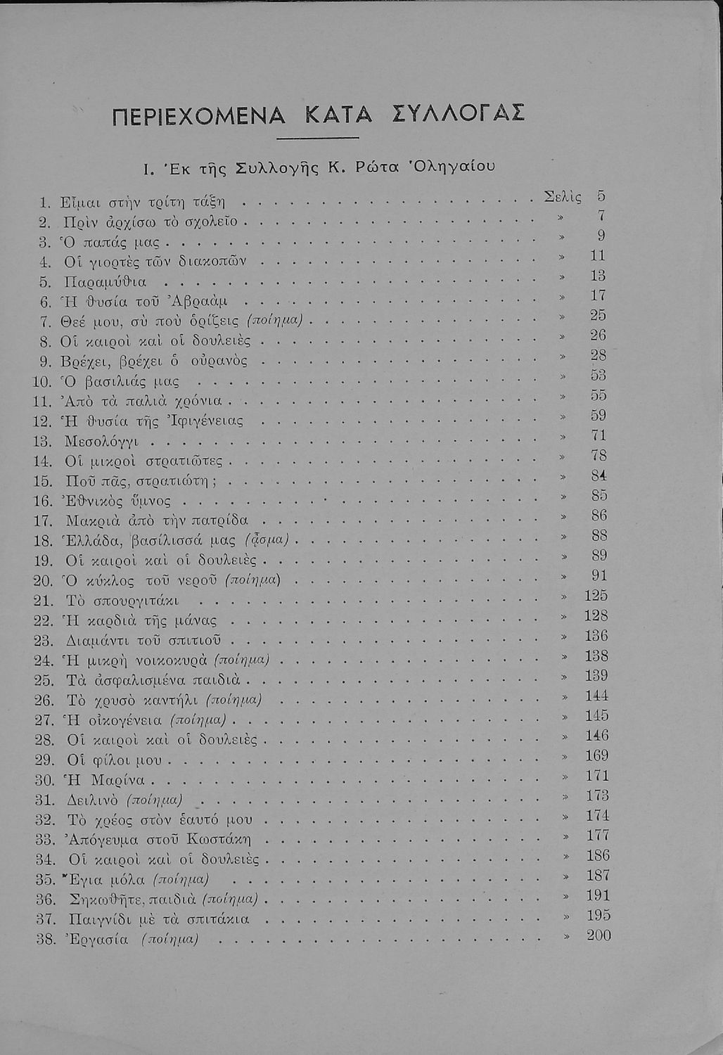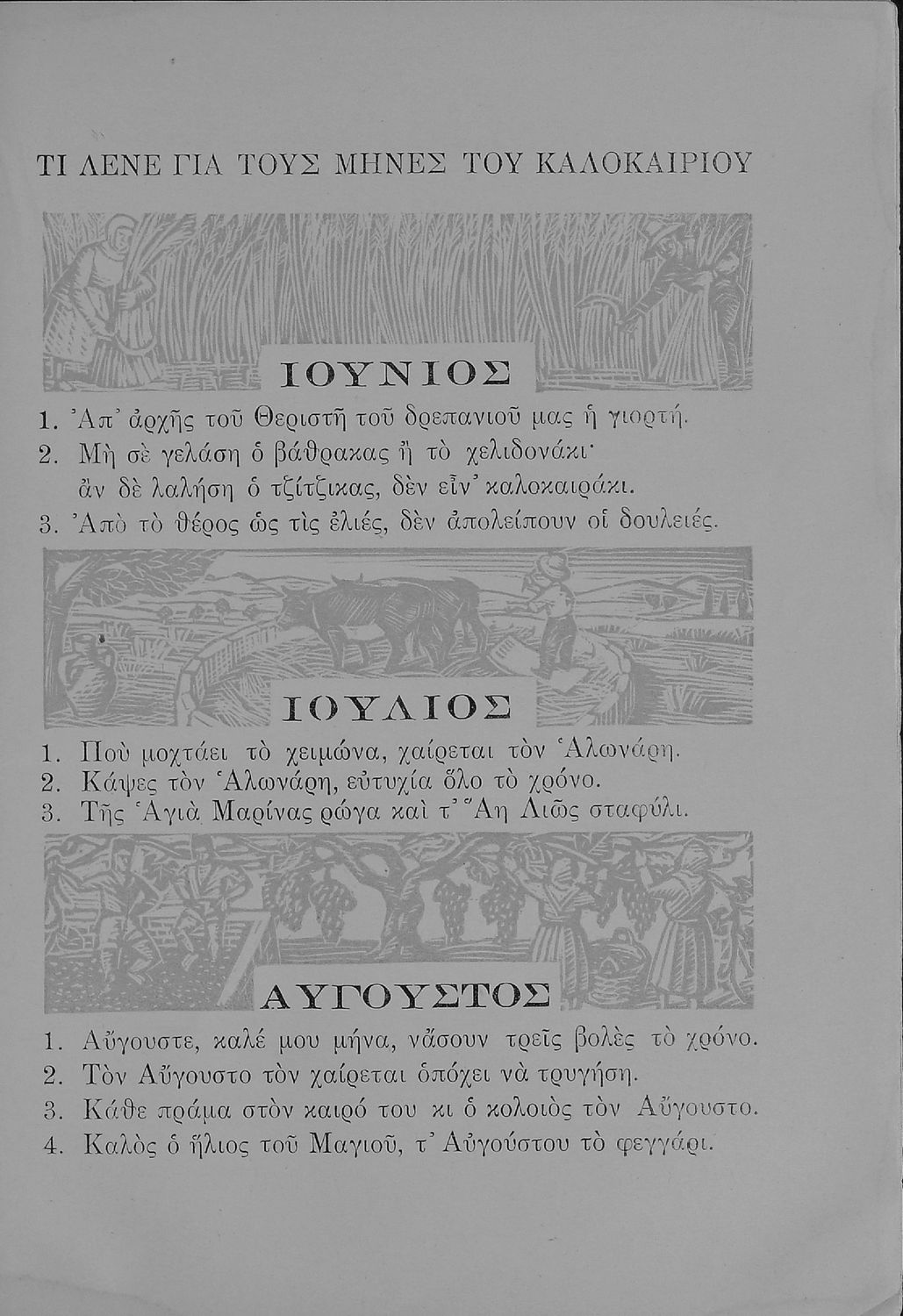 Αναγνωστικό Γ΄ Δημοτικού που περιλαμβάνει ποιήματα και πεζά εμπνευσμένα από την ελληνική φύση, τις ασχολίες των κατοίκων, την σύγχρονη ελληνική ιστορία, την ελληνική μυθολογία και τις θρησκευτικές γιορτές.