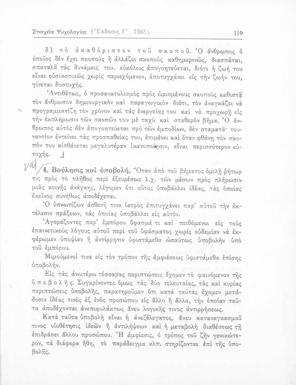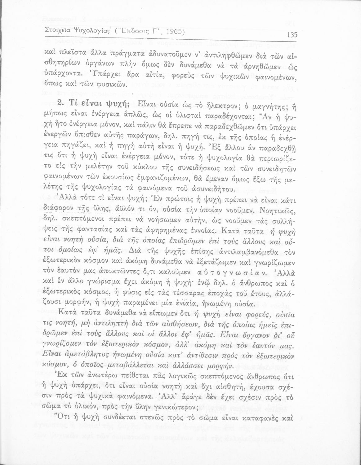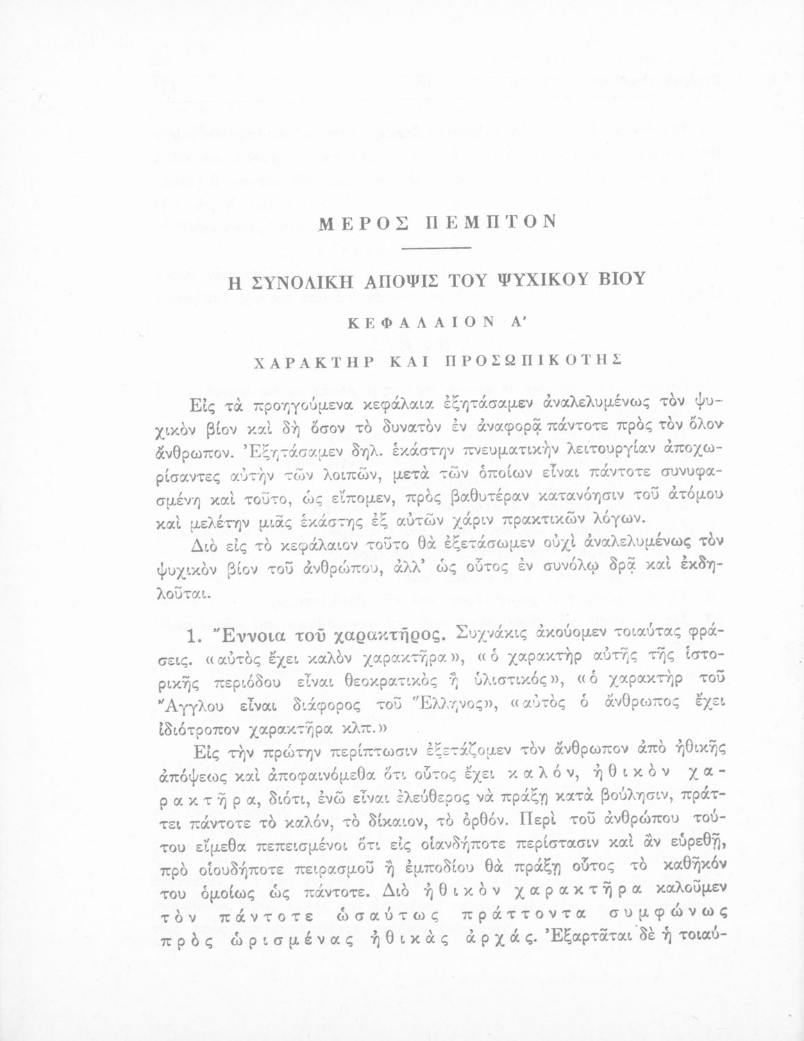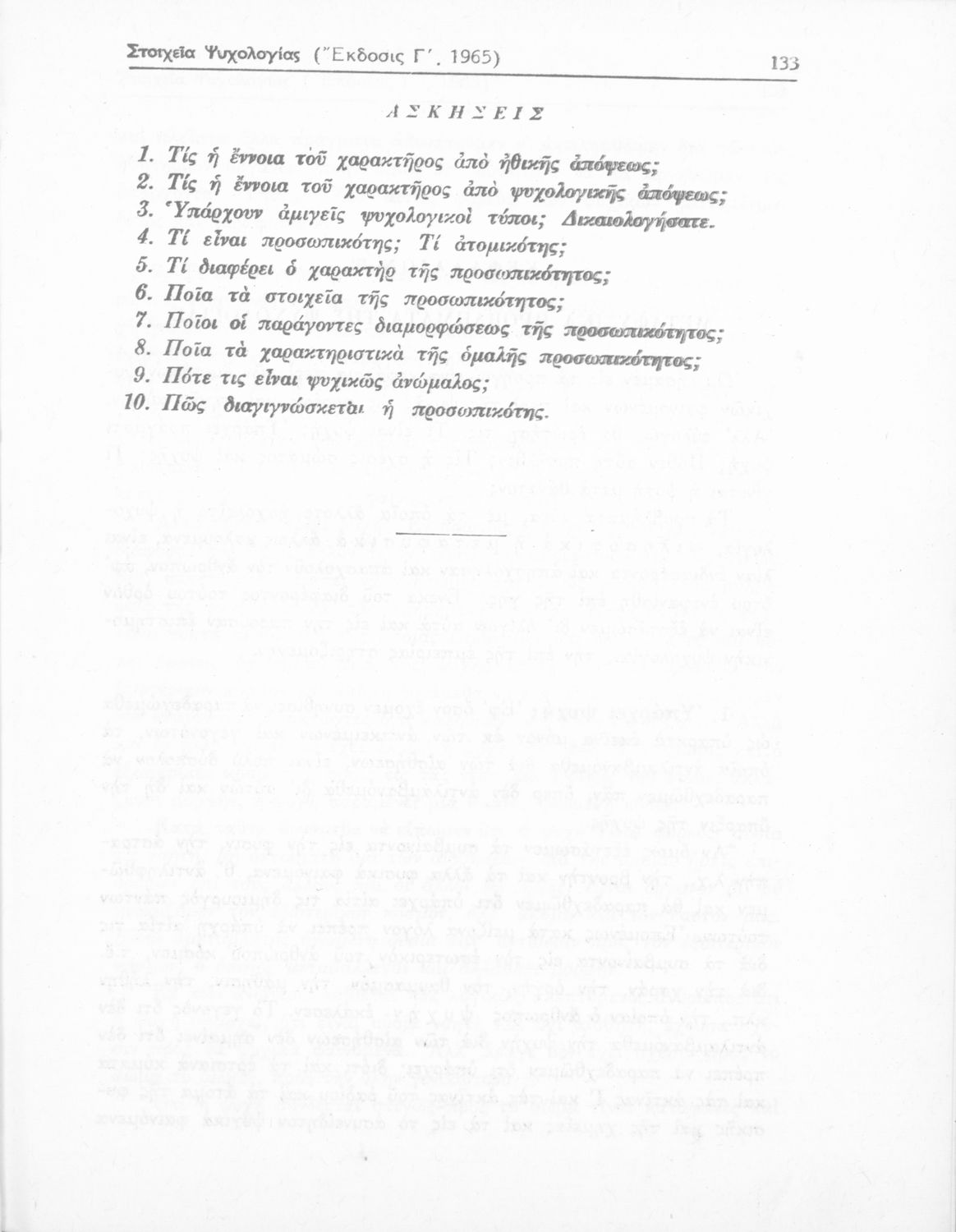 Σχολικό εγχειρίδιο Ψυχολογίας για την Ε΄ Γυμνασίου που περιλαμβάνει θεωρία και ασκήσεις και εξετάζει τον ψυχικό βίο από νοητική, συναισθηματική και βουλητική άποψη. Φέρει το σύμβολο της δικτατορίας.