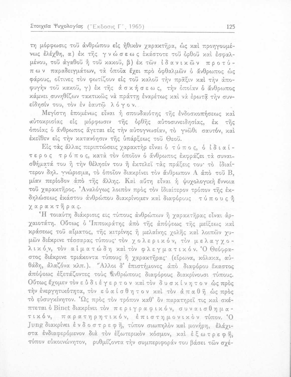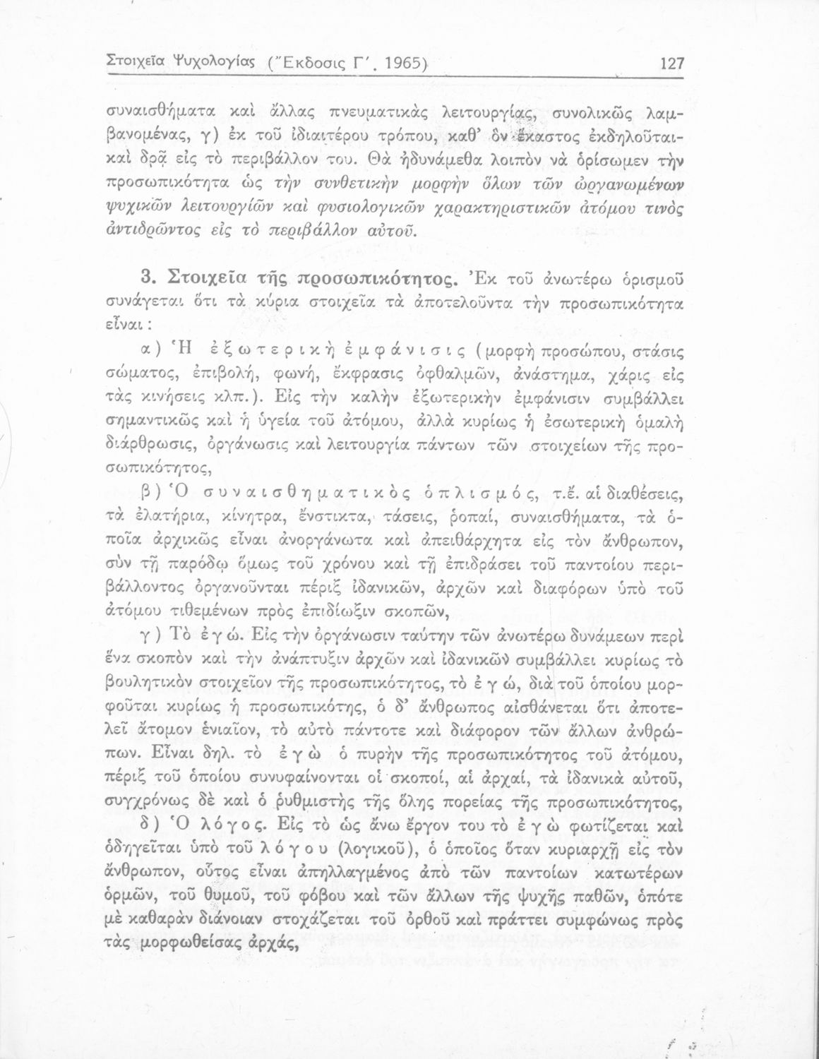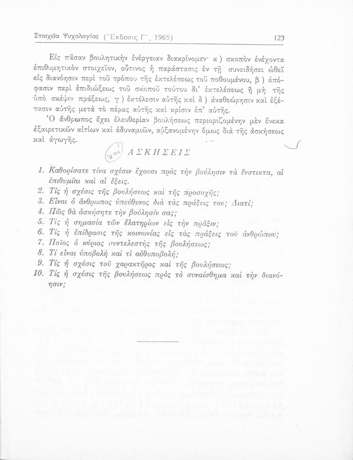 Σχολικό εγχειρίδιο Ψυχολογίας για την Ε΄ Γυμνασίου που περιλαμβάνει θεωρία και ασκήσεις και εξετάζει τον ψυχικό βίο από νοητική, συναισθηματική και βουλητική άποψη.