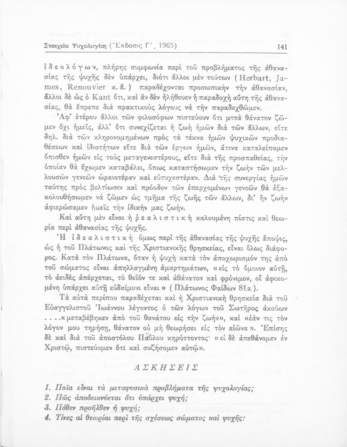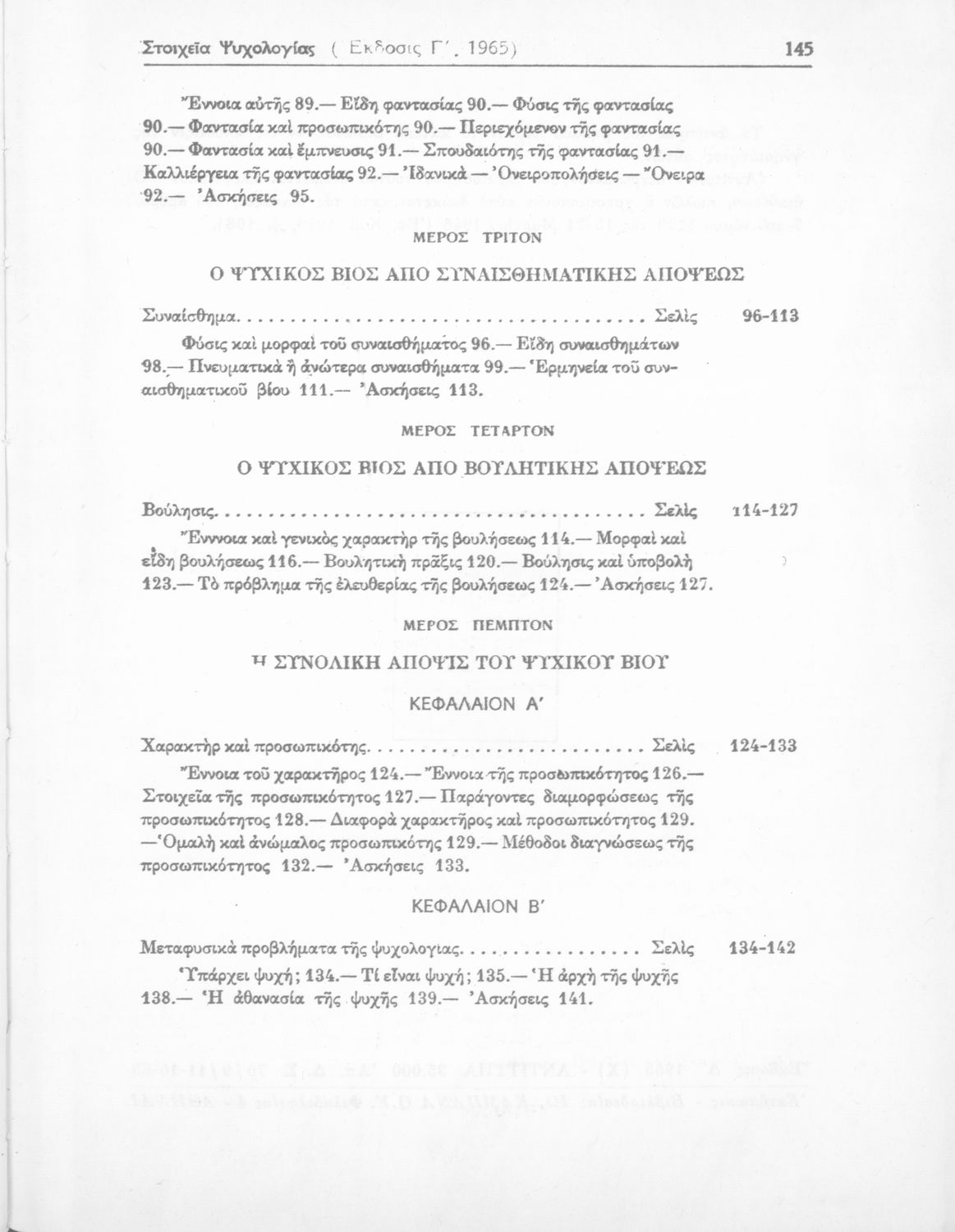 Σχολικό εγχειρίδιο Ψυχολογίας για την Ε΄ Γυμνασίου που περιλαμβάνει θεωρία και ασκήσεις και εξετάζει τον ψυχικό βίο από νοητική, συναισθηματική και βουλητική άποψη.