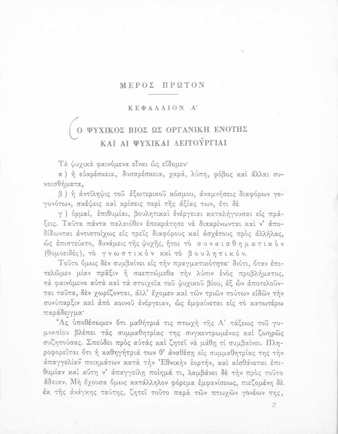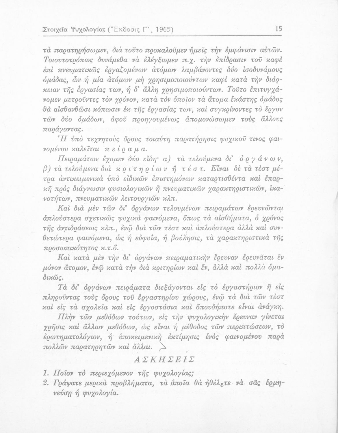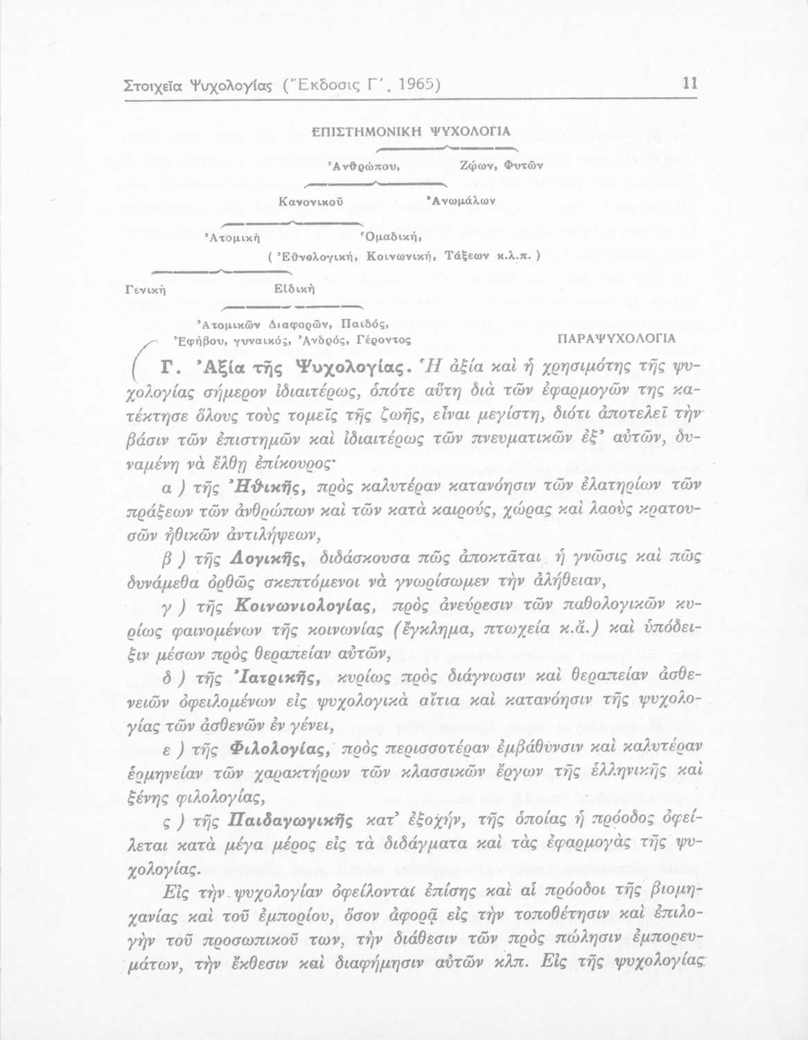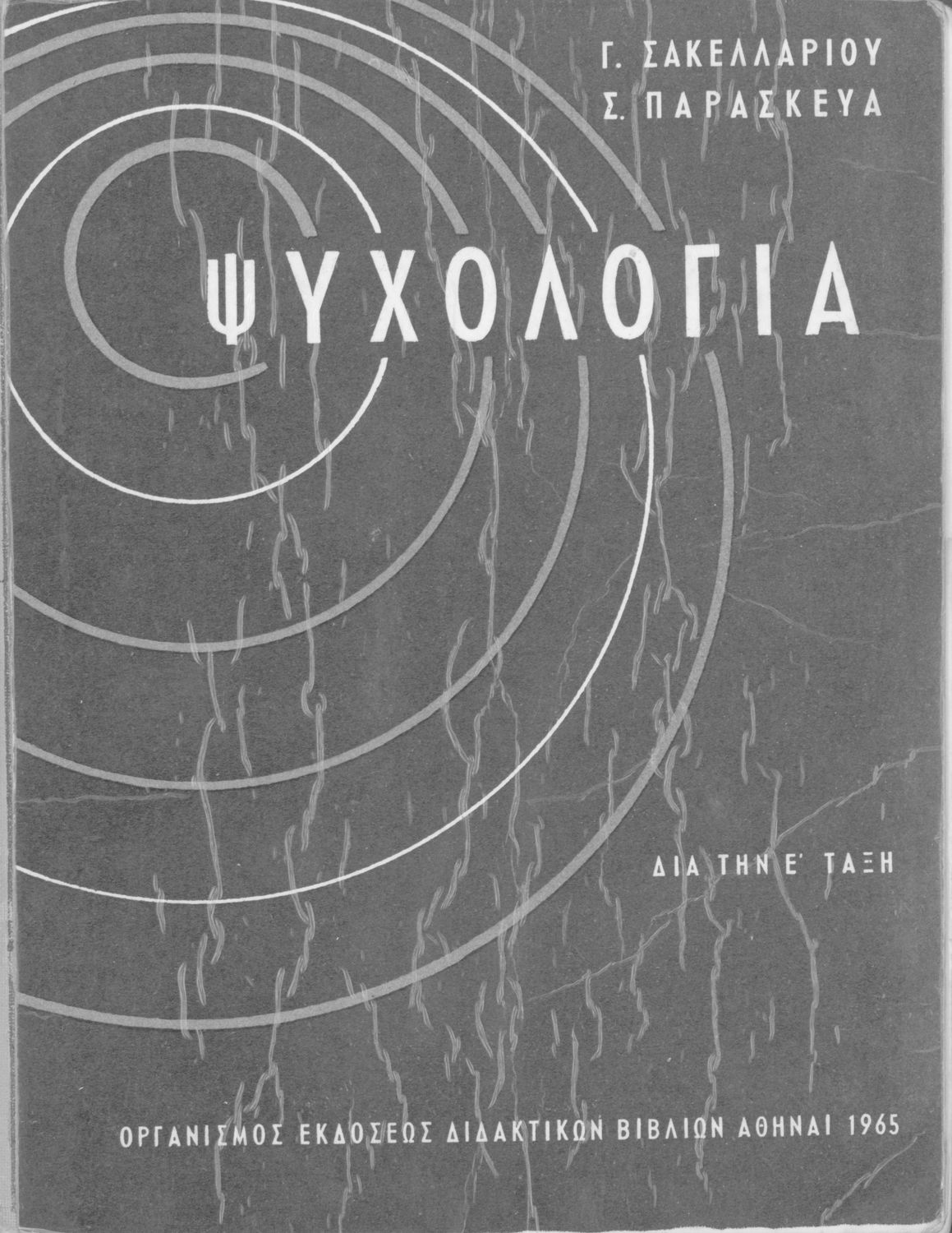 Σχολικό εγχειρίδιο Ψυχολογίας για την Ε΄ Γυμνασίου που περιλαμβάνει θεωρία και ασκήσεις και εξετάζει τον ψυχικό βίο από νοητική, συναισθηματική και βουλητική άποψη. Φέρει το σύμβολο της δικτατορίας.