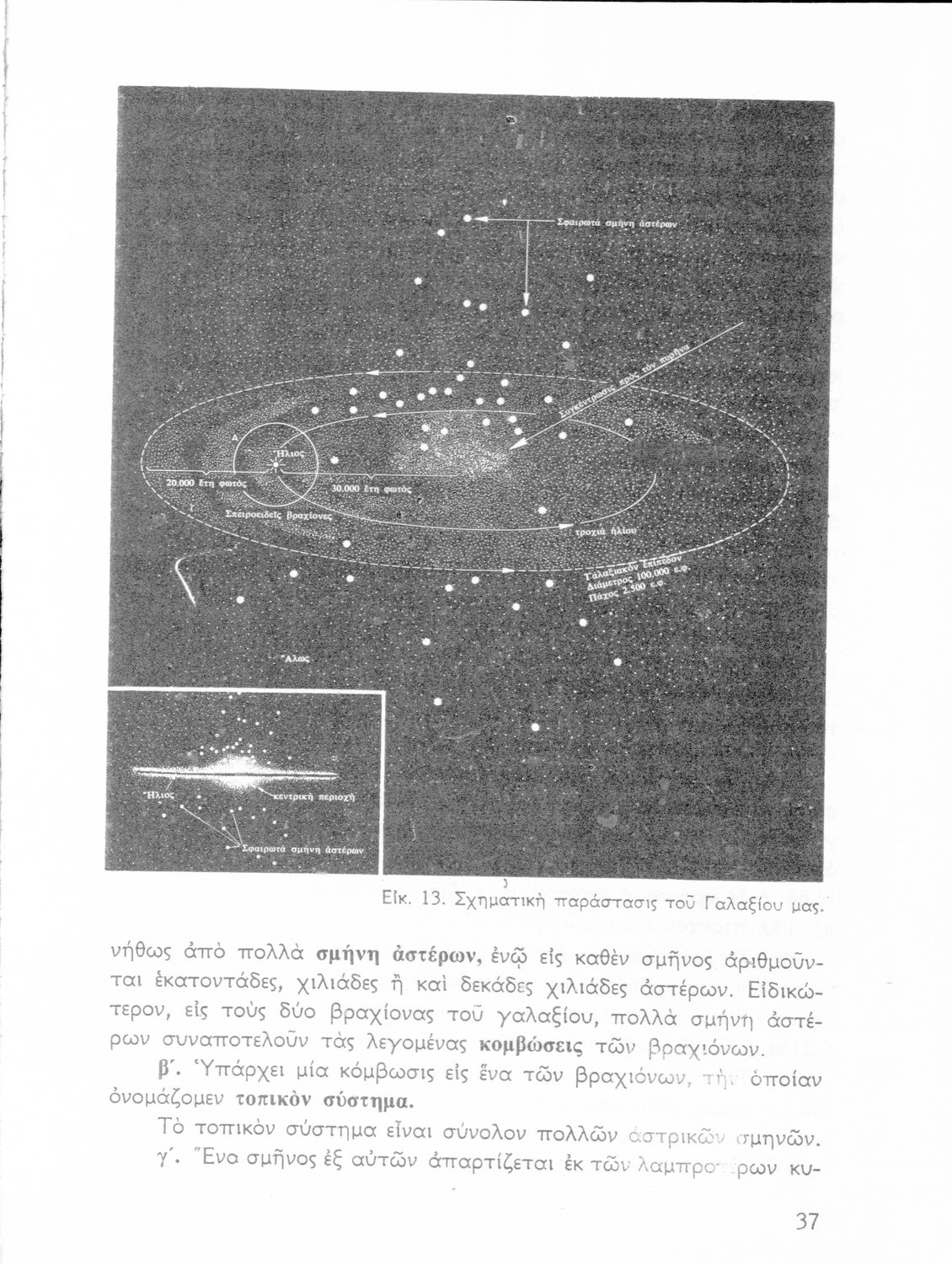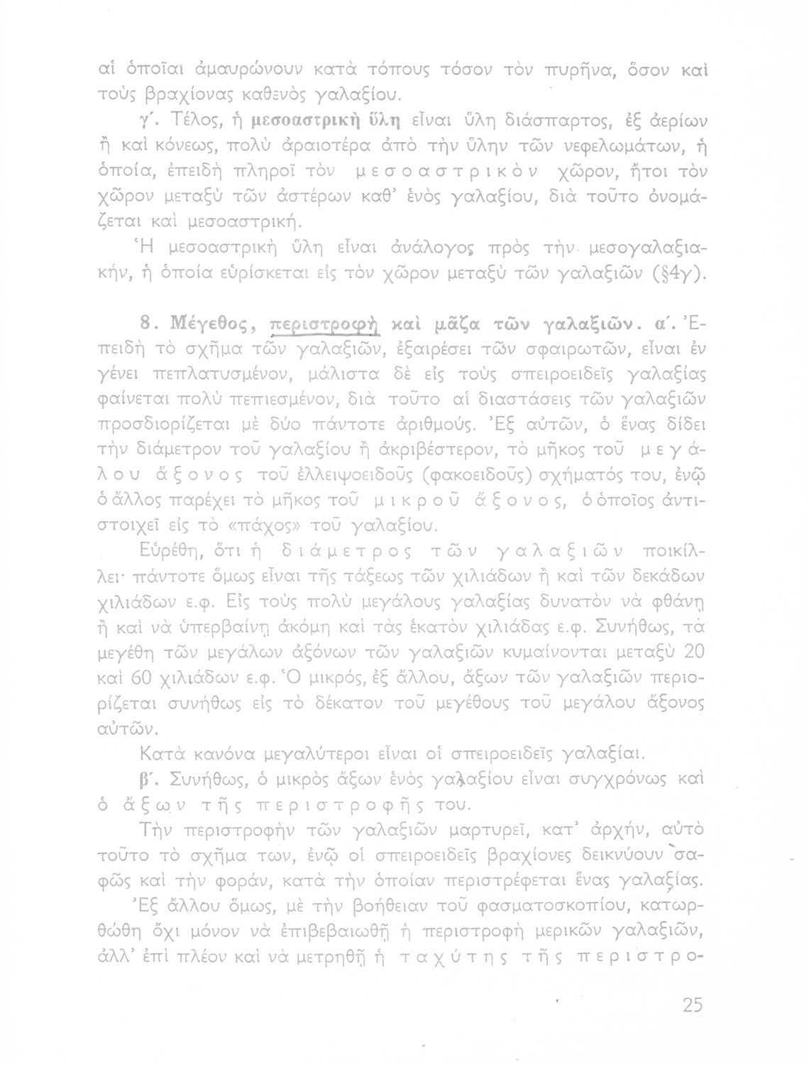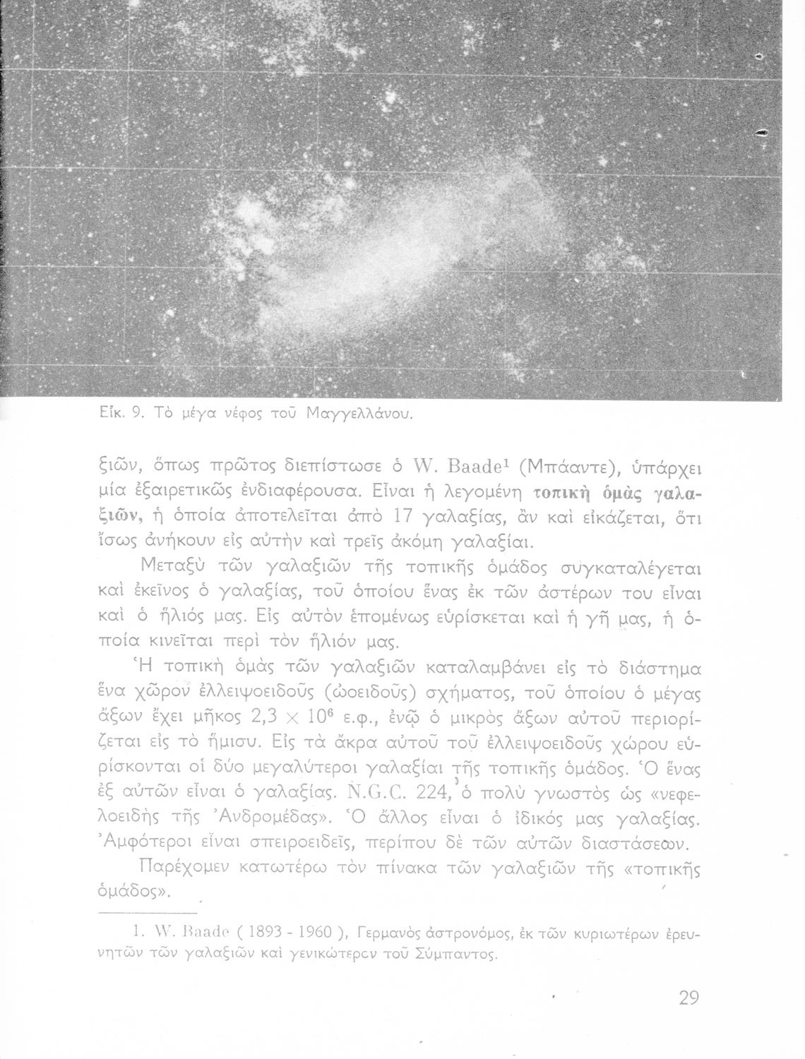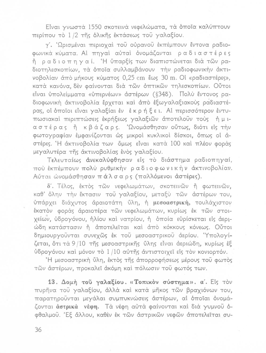 Σχολικό εγχειρίδιο Κοσμογραφίας ΣΤ΄ Γυμνασίου που πραγματεύεται τη μορφή, σύσταση, μέγεθος και κίνηση των γαλαξιών και των πλανητών. Περιέχει στοιχεία αστροναυτικής και πίνακα με 88 αστερισμούς, τα διεθνή ονόματα και τα σύμβολά τους. Φέρει το σύμβολο της δικτατορίας.