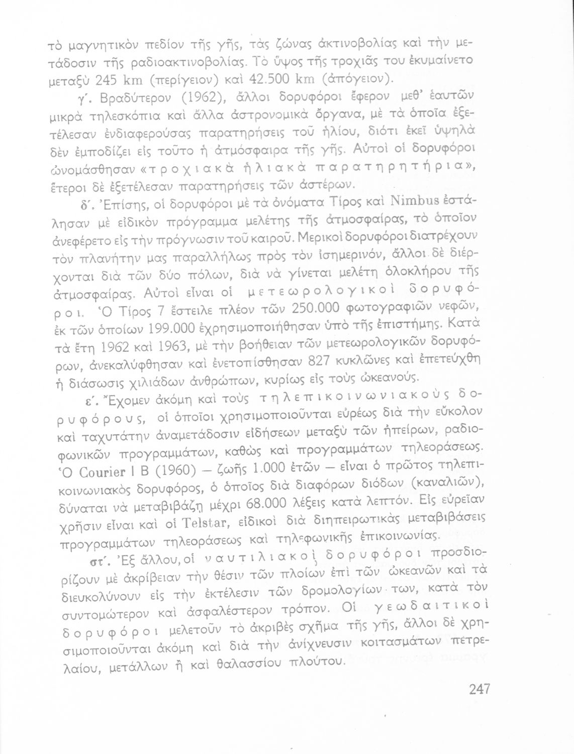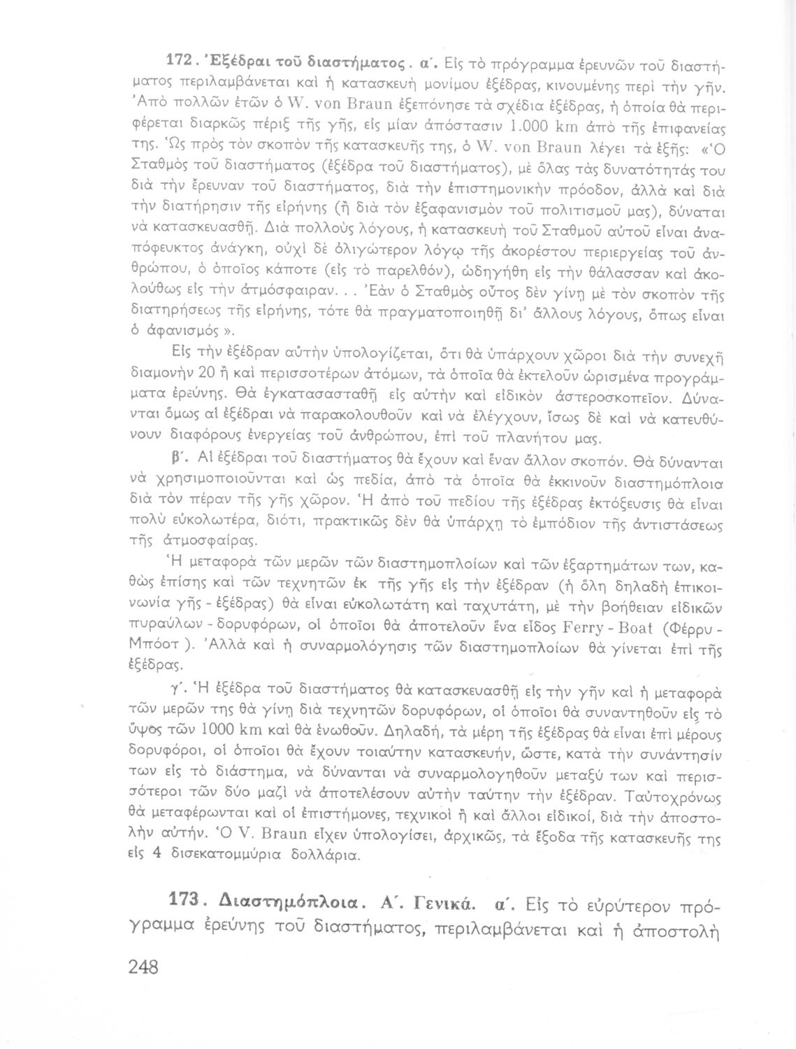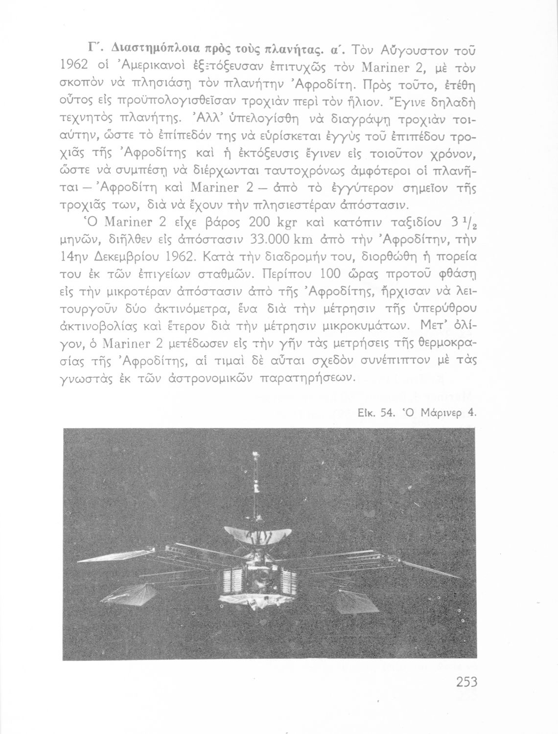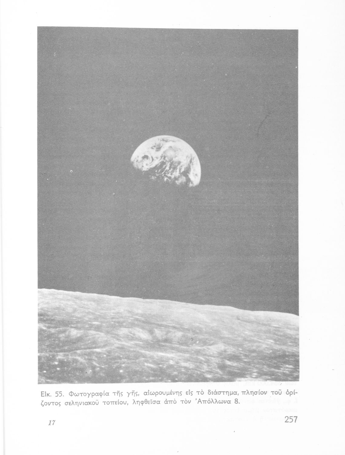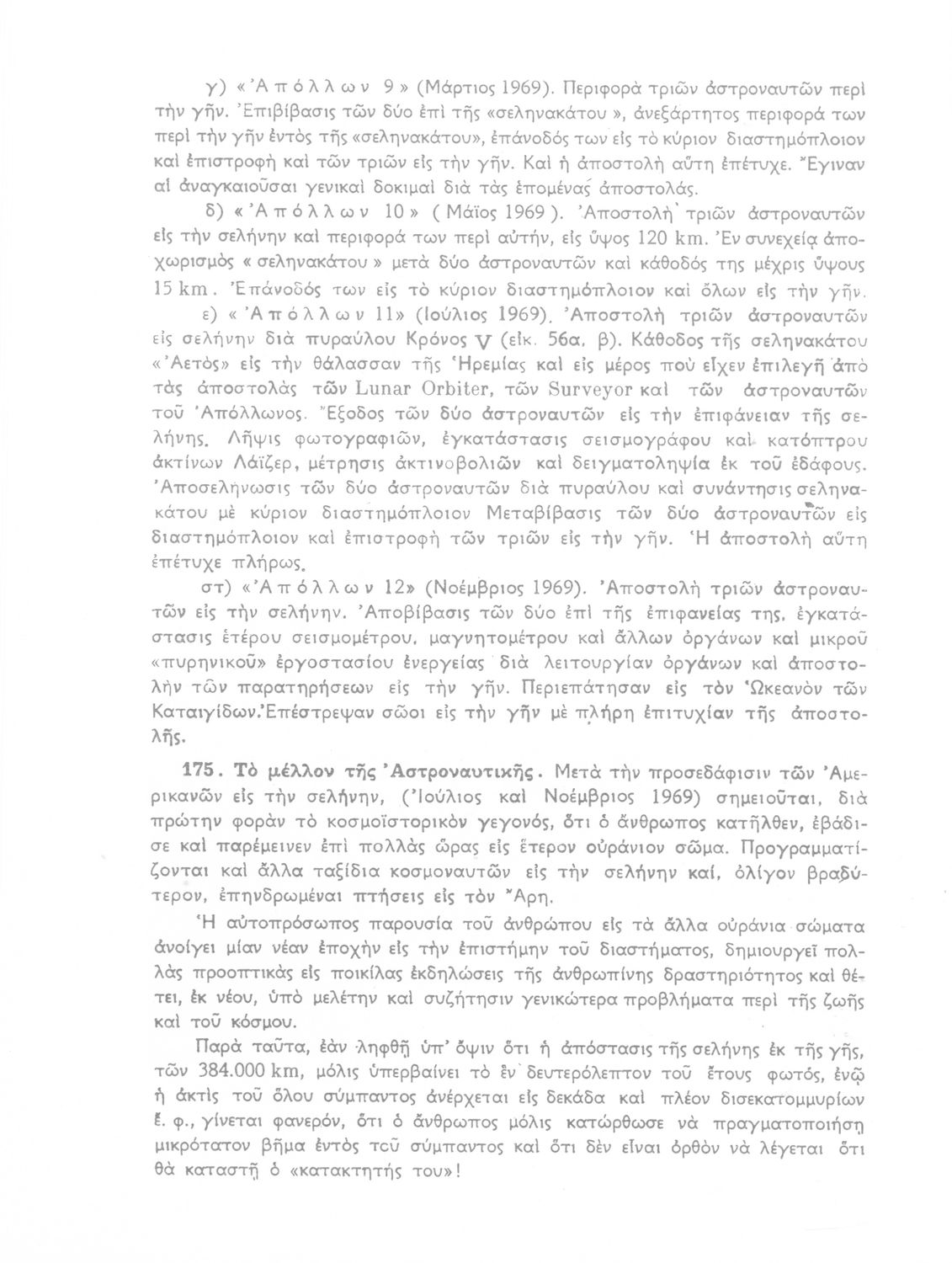 Σχολικό εγχειρίδιο Κοσμογραφίας ΣΤ΄ Γυμνασίου που πραγματεύεται τη μορφή, σύσταση, μέγεθος και κίνηση των γαλαξιών και των πλανητών. Περιέχει στοιχεία αστροναυτικής και πίνακα με 88 αστερισμούς, τα διεθνή ονόματα και τα σύμβολά τους. Φέρει το σύμβολο της δικτατορίας.