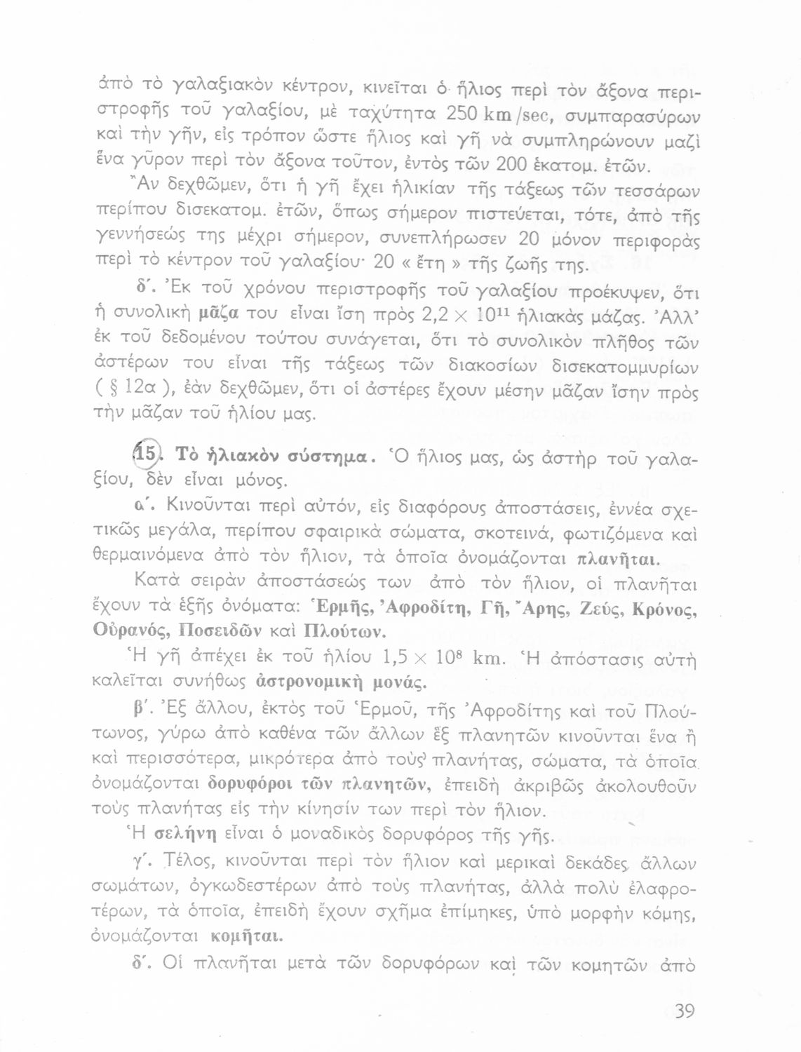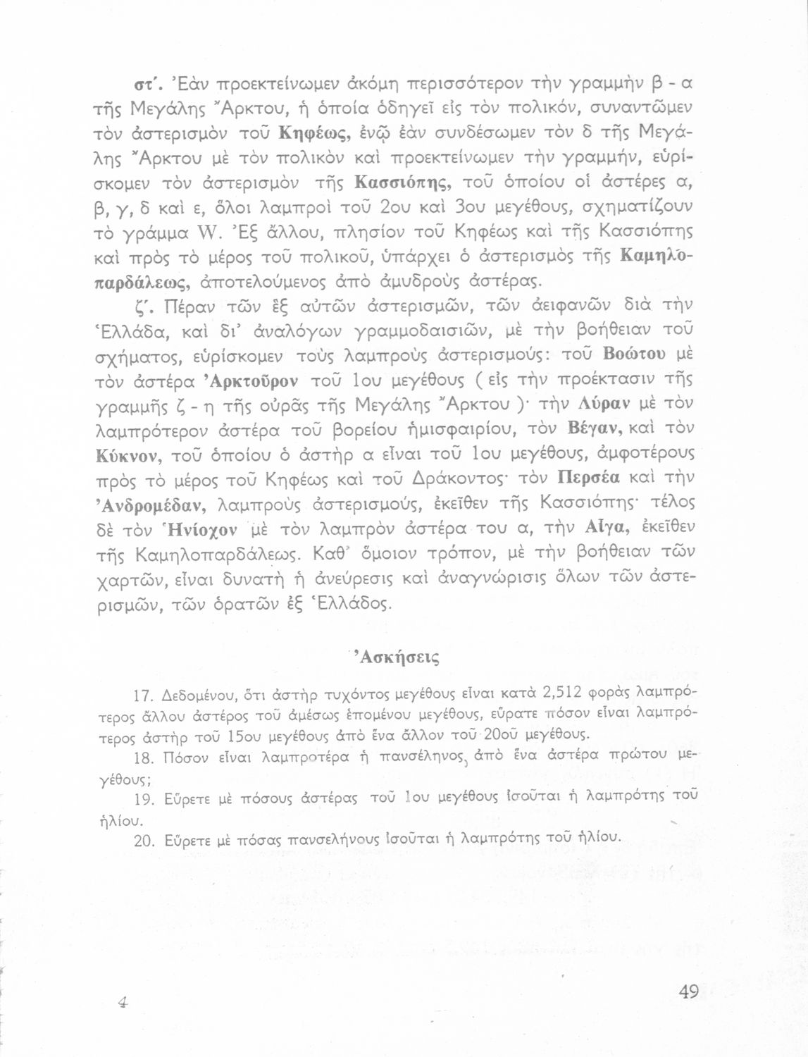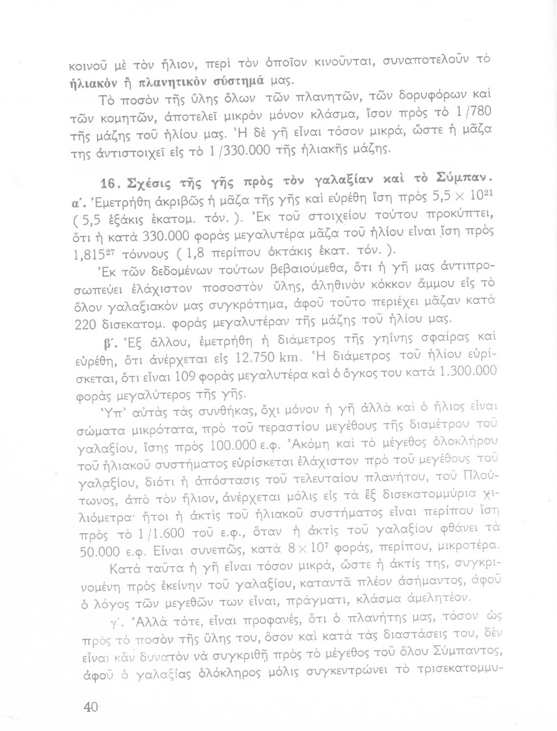 Σχολικό εγχειρίδιο Κοσμογραφίας ΣΤ΄ Γυμνασίου που πραγματεύεται τη μορφή, σύσταση, μέγεθος και κίνηση των γαλαξιών και των πλανητών. Περιέχει στοιχεία αστροναυτικής και πίνακα με 88 αστερισμούς, τα διεθνή ονόματα και τα σύμβολά τους. Φέρει το σύμβολο της δικτατορίας.